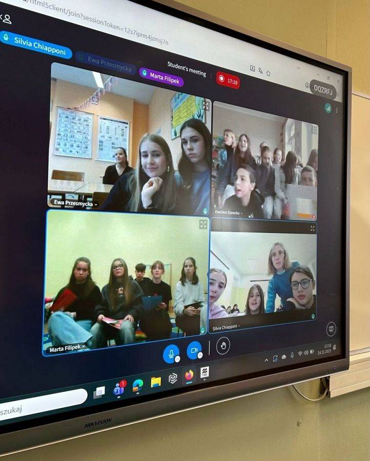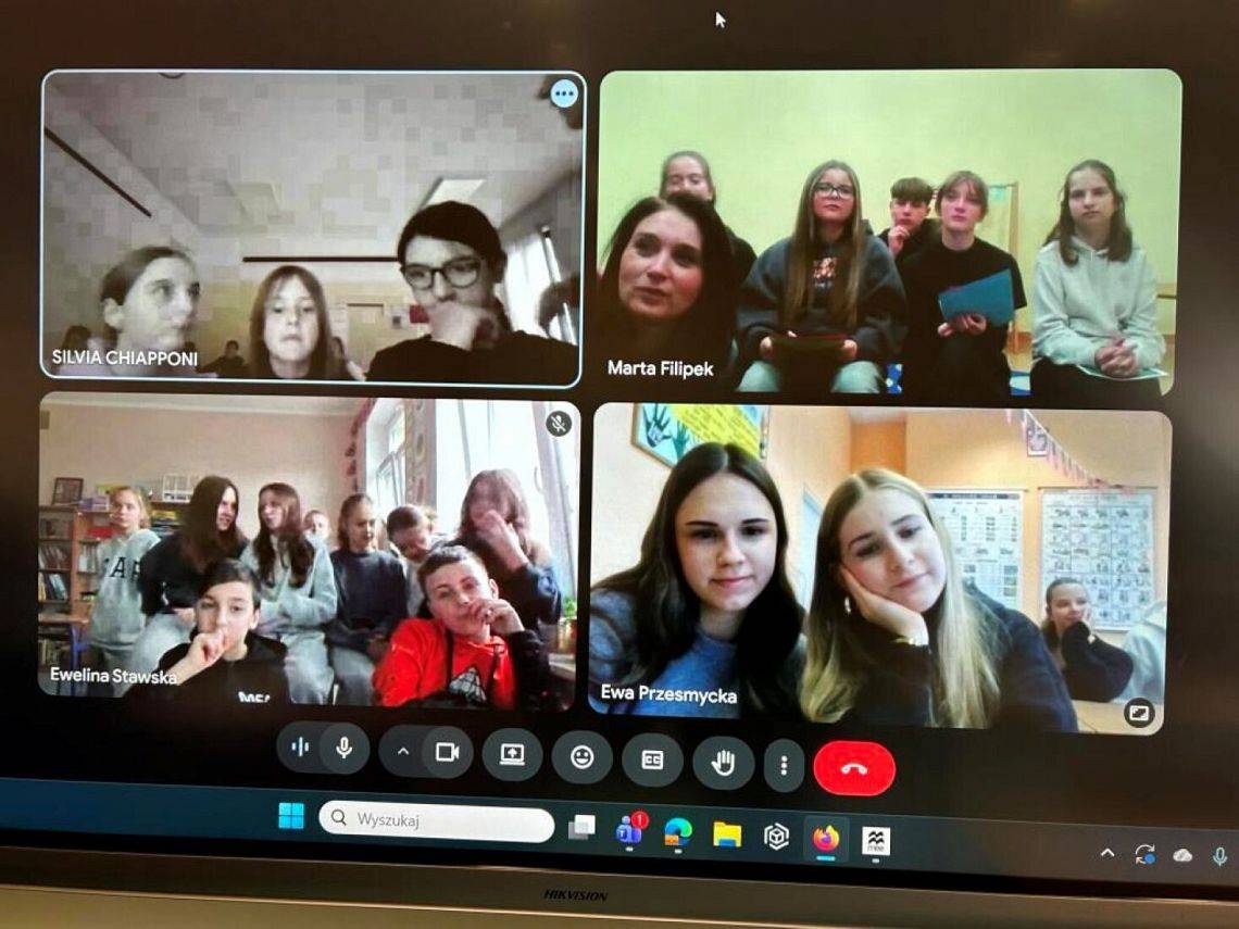 24 listopada spotkaliśmy się online z uczniami i ich opiekunami ze szkół partnerskich z Bedziemyśla, Konprachcic i Catanzaro we Włoszech. Na spotkaniu zaprezentowaliśmy nasze dotychczasowe działania i mieliśmy okazję poznać się, porozmawiać i poćwiczyć umiejętności językowe, bo całe spotkanie odbyło się w języku angielskim. To dopiero początek naszej współpracy, która z pewnością przyniesie wiele ciekawych działań i inspirujących doświadczeń.