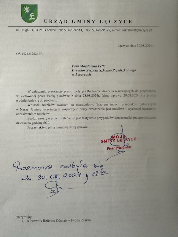 UWAGA RODZICE DZIECI PRZEDSZKOLA W ŁĘCZYCACH