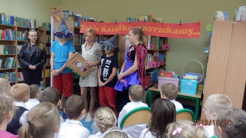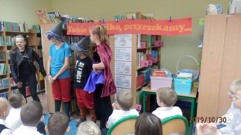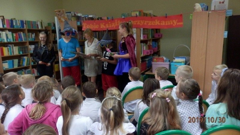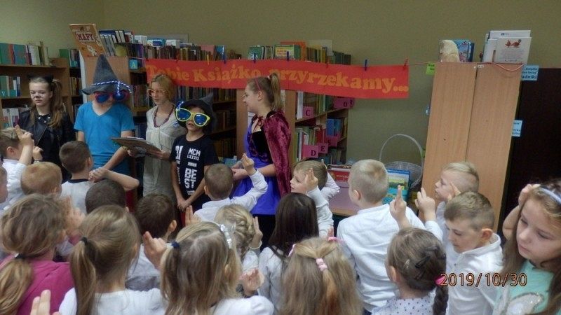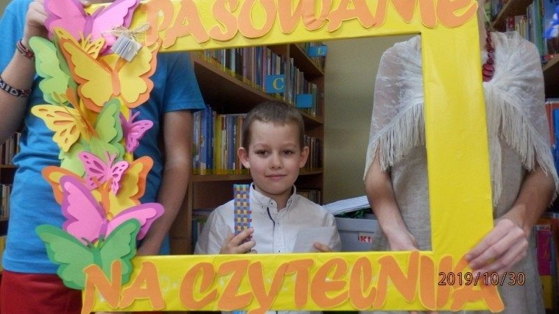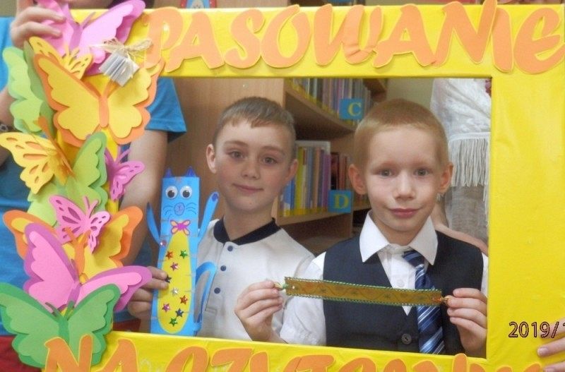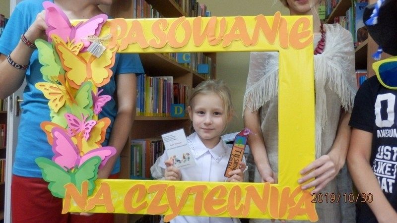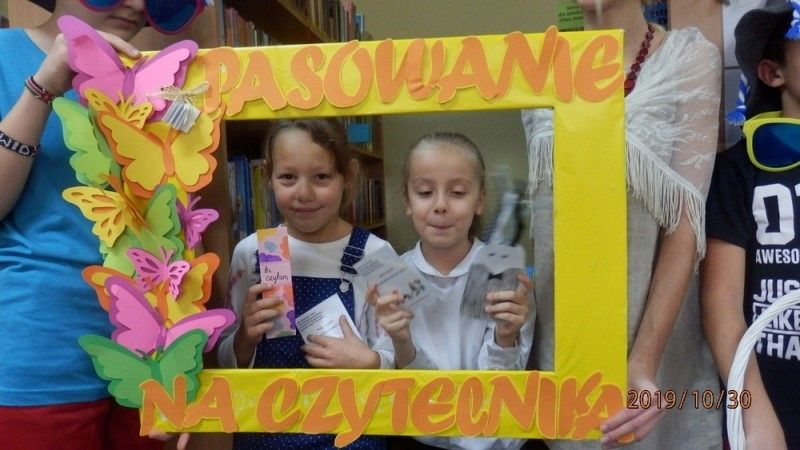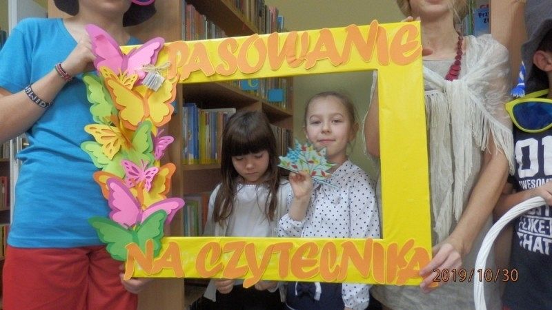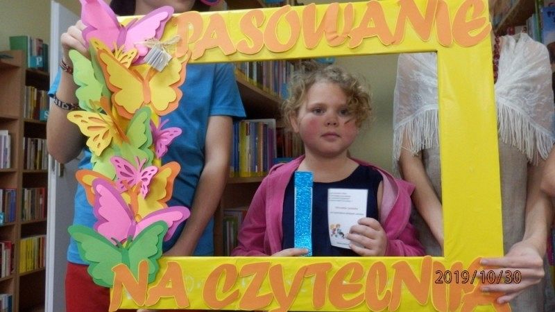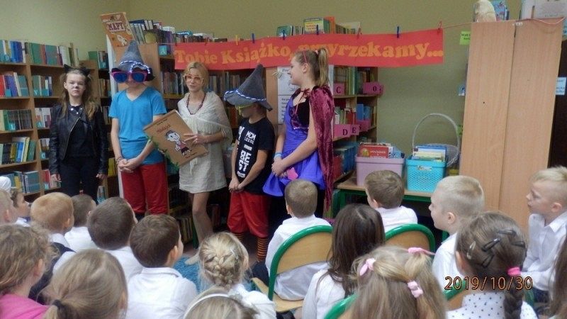Tekst przytoczonej przysięgi uczniowie klas pierwszych wypowiedzieli podczas uroczystego pasowania na czytelników, które odbyło się 30 października. W obecności wice dyrektor – p. Anny Kotłowskiej, pań wychowawczyń oraz zaproszonych rodziców przyszli czytelnicy obejrzeli przedstawienie, przygotowane przez „aktorów” z klasy VIII b. Dowiedzieli się, jak należy dbać o książki i prawidłowo zachować się w bibliotece. Następnie złożyli uroczyste przyrzeczenie, że będą odpowiedzialnymi czytelnikami. Na zakończenie nowi czytelnicy otrzymali legitymacje i zakładki, z którymi pozowali do pamiątkowego zdjęcia, w specjalnie przygotowanej na tę chwilę „foto ramce”.