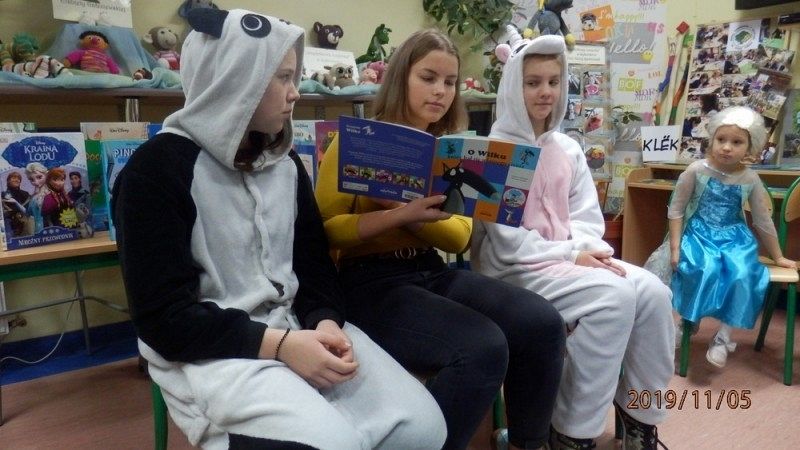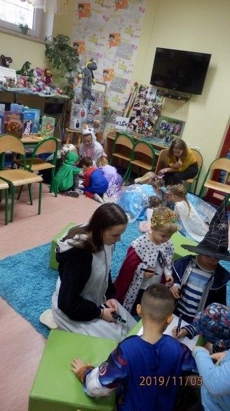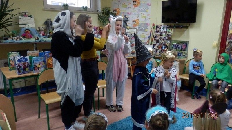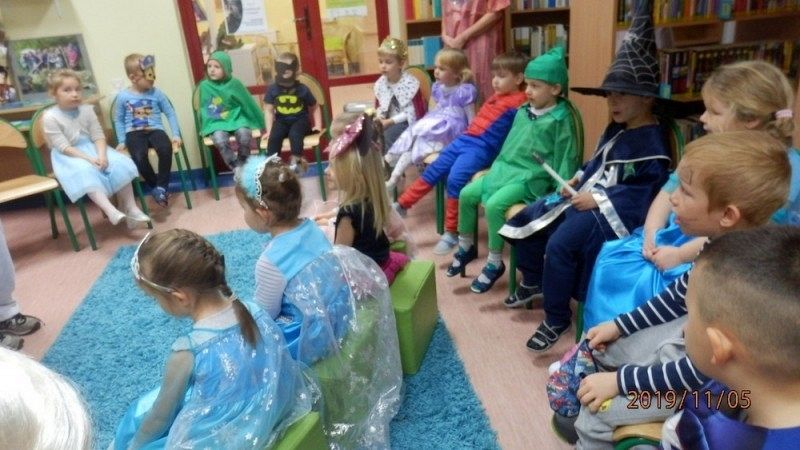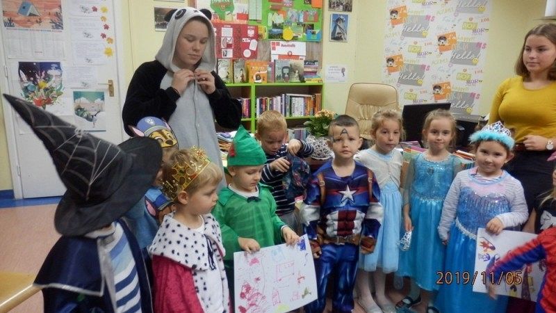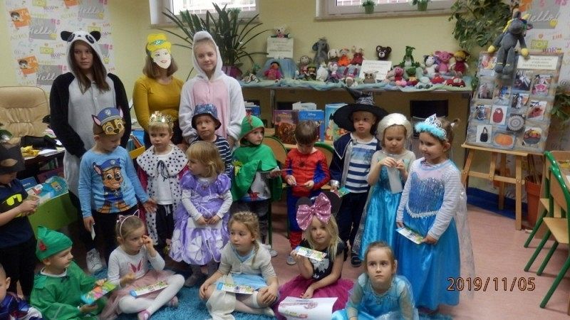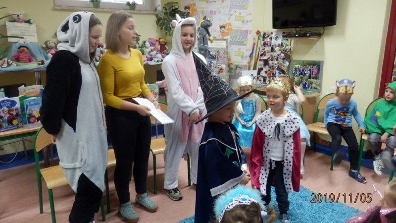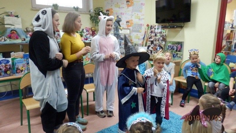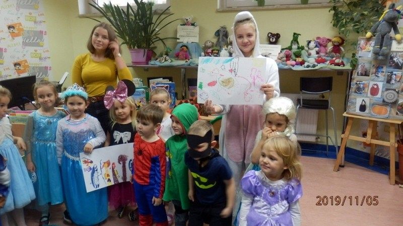 5 listopada w bibliotece szkolnej pojawiły się postacie bajkowe. To przedszkolaki z 0 D, w Międzynarodowym Dniu Postaci z Bajek postanowiły odwiedzić bibliotekę. Przebrane za swoich ulubionych bohaterów wysłuchały inscenizacji oraz książki o „Wilku, który bał się własnego cienia” w wykonaniu dziewczyn z kółka „PoczytajMy”. Następnie rozwiązywały zagadki oraz wzięły udział w zajęciach ruchowych. Na koniec dzieci namalowały swoje ulubione postacie bajkowe ( zgadnijcie jakie? ) …Prym wiedli Smok Wawelski, Zygzak Mc Queen i oczywiście Elza.