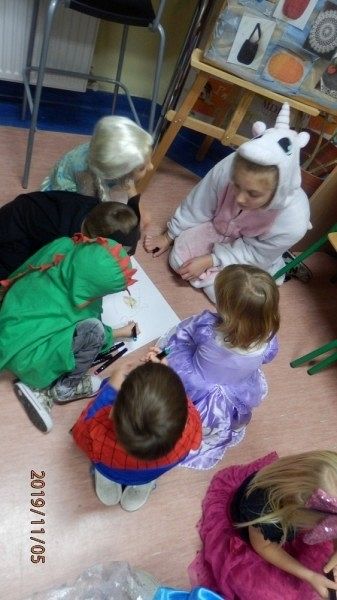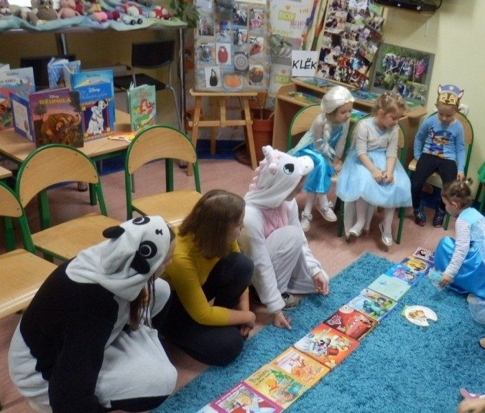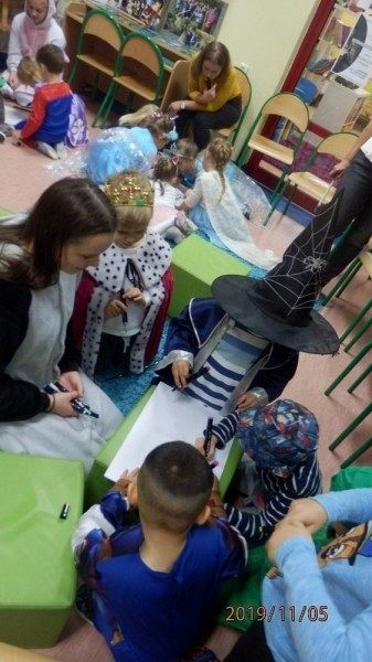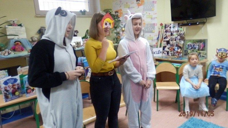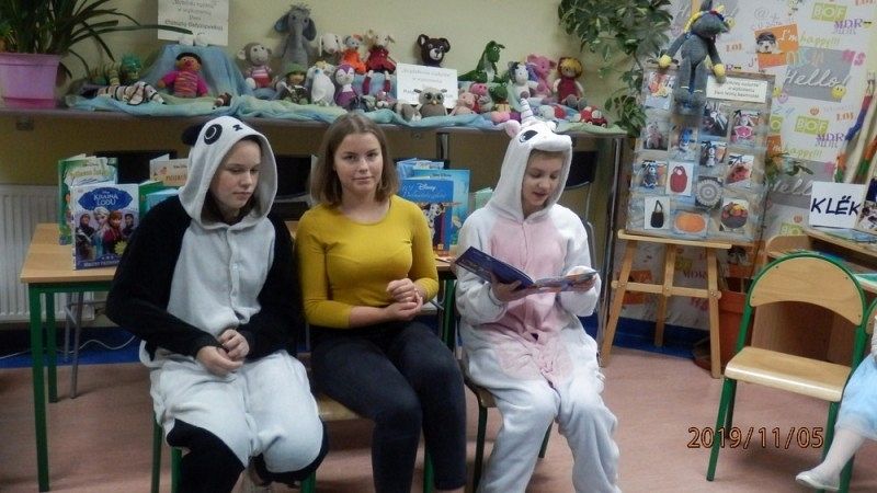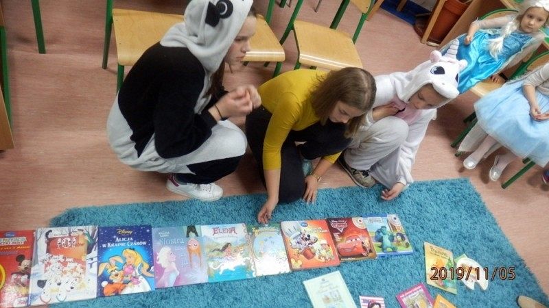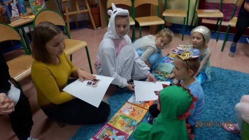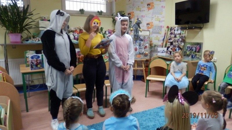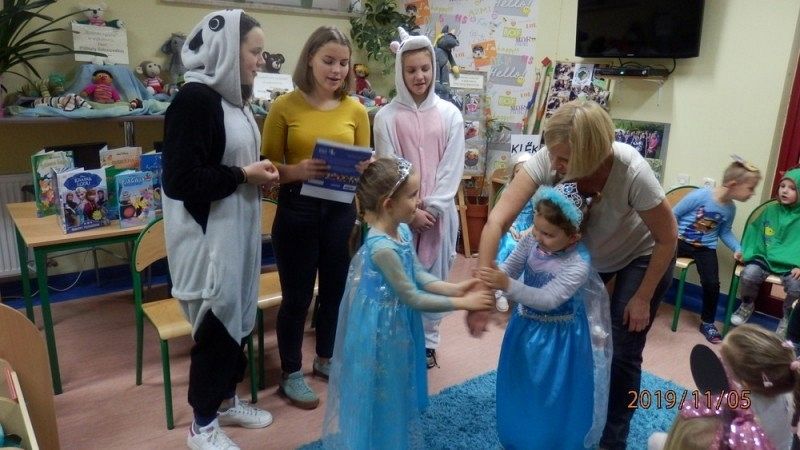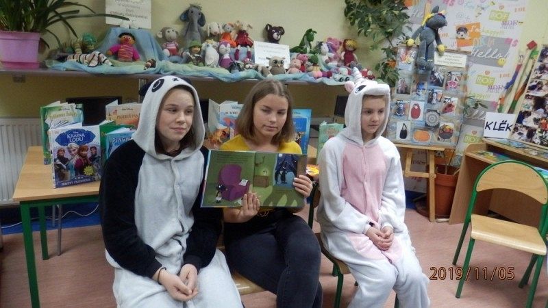 5 listopada w bibliotece szkolnej pojawiły się postacie bajkowe. To przedszkolaki z 0 D, w Międzynarodowym Dniu Postaci z Bajek postanowiły odwiedzić bibliotekę. Przebrane za swoich ulubionych bohaterów wysłuchały inscenizacji oraz książki o „Wilku, który bał się własnego cienia” w wykonaniu dziewczyn z kółka „PoczytajMy”. Następnie rozwiązywały zagadki oraz wzięły udział w zajęciach ruchowych. Na koniec dzieci namalowały swoje ulubione postacie bajkowe ( zgadnijcie jakie? ) …Prym wiedli Smok Wawelski, Zygzak Mc Queen i oczywiście Elza.