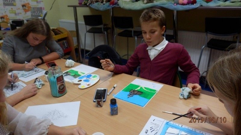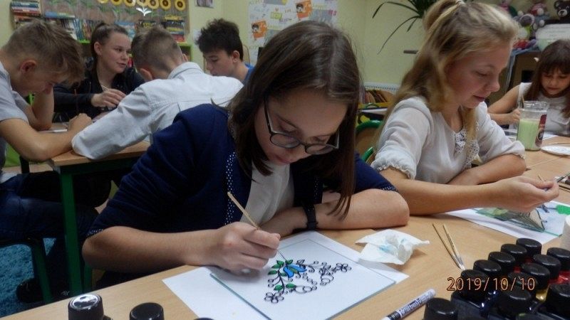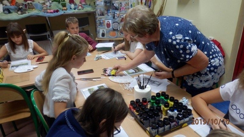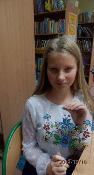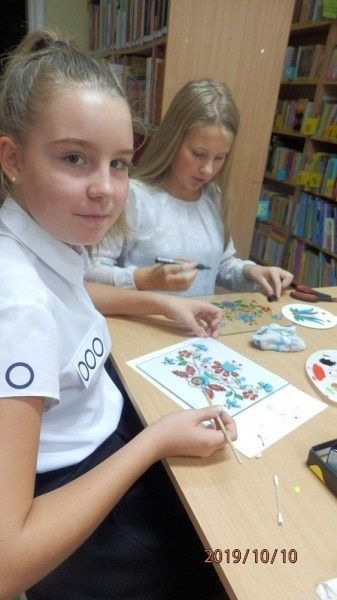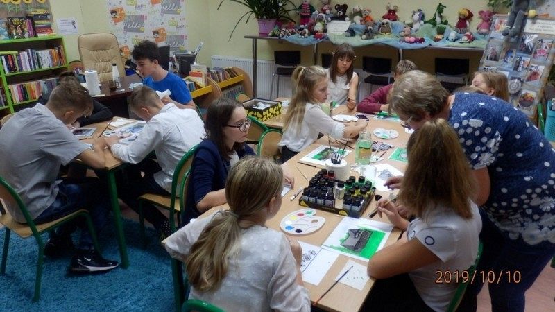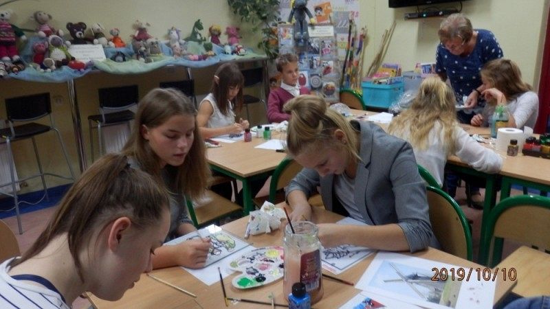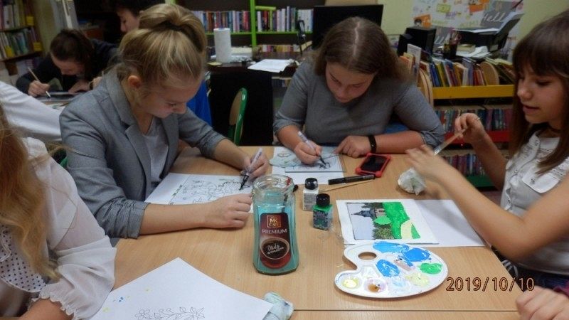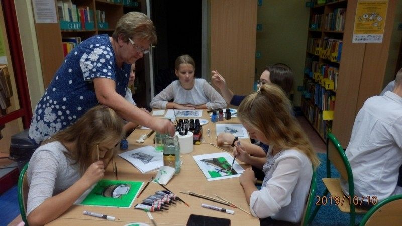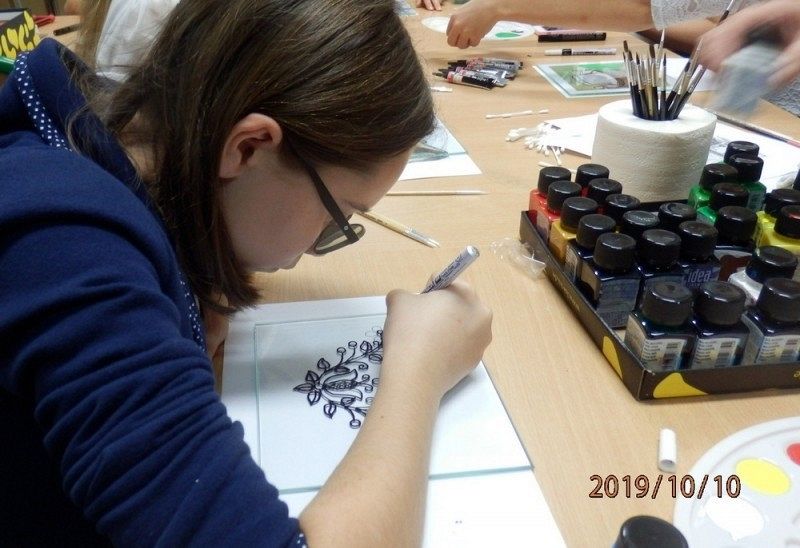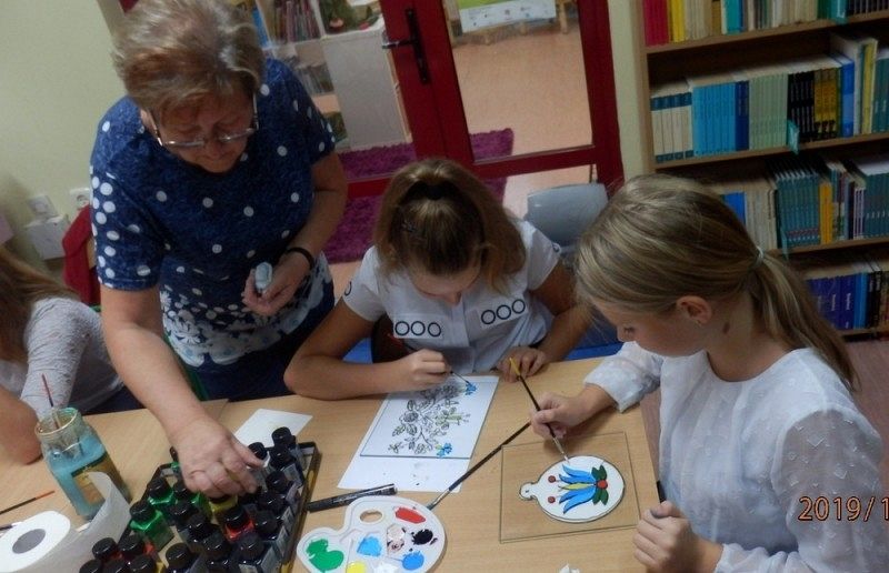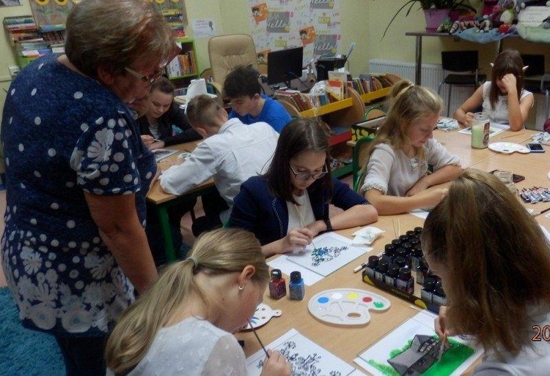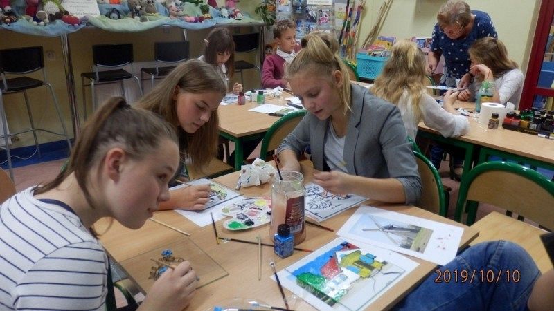 Tym razem, pod okiem pani Alicji Godzisz z Łęczyc ,młodzież malowała na szkle. Uczestnicy przenosili na szkło to, co zobaczyli podczas wycieczki do Wdzydz Kiszewskich: zabytkowe obiekty, wzory kaszubskie i życie na wsi kaszubskiej. Zajęcia warsztatowe upłynęły niezwykle szybko i bardzo pracowicie. A efekty końcowy przeszedł najśmielsze oczekiwania. Póki co, wykonane prace można podziwiać w bibliotece. Serdecznie zapraszam.