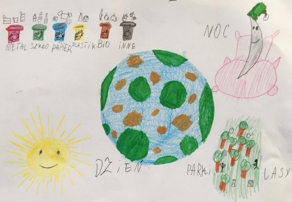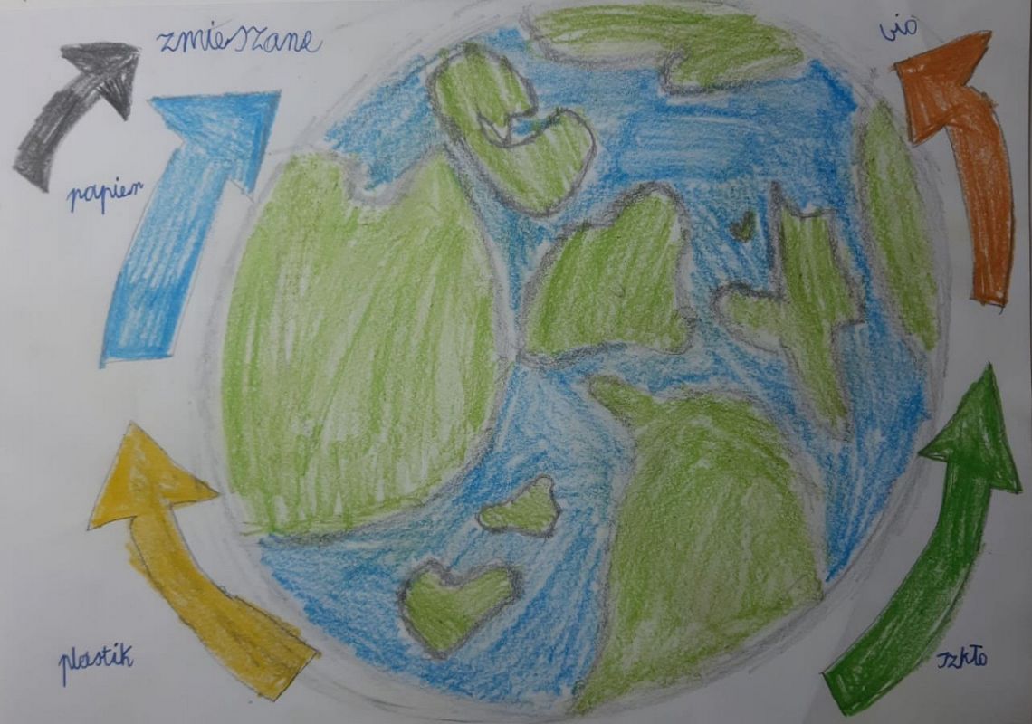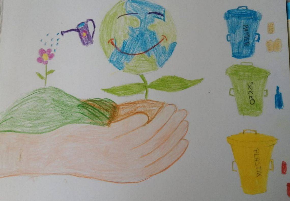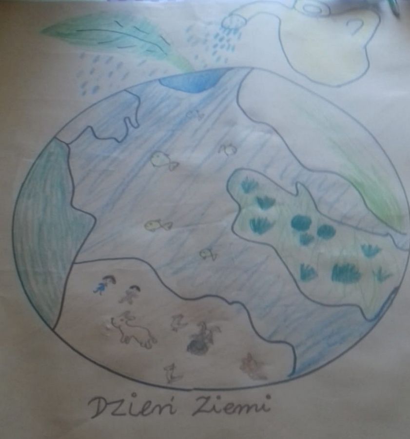 22 kwietnia obchodziliśmy Dzień Ziemi. Ziemia nas żywi oraz stanowi istotę naszej egzystencji. Z tego powodu musimy o nią dbać każdego dnia. Tegoroczne obchody ze względu na zdalne nauczanie przybrało inną formę. Dzieci w domowych zaciszach zapoznały się z tematyką ochrony przyrody, segregacji śmieci i recyklingu. Pomocne w nauce dbania o naszą planetę były materiały edukacyjne dostępne na portalach internetowych. Towarzyszyła nam piosenka „ Świat w naszych rękach”, do której uczniowie wykonali ilustrację. Uczniowie sprawnie poradzili sobie z zadaniem wykonania zręcznościowej zabawki – tzw. łapanki, z zużytej plastikowej butelki. Składam wyrazy podziękowania dla rodziców, których wkład w aktywność dzieci jest nieoceniony.