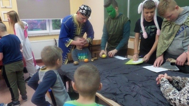 Według dawnych wierzeń noc świętego Andrzeja miała moc magiczną, pozwalającą zerknąć w przyszłość. Dzisiaj andrzejki są wspaniałą okazją do dobrej zabawy, a jednocześnie źródłem szacunku dla tradycji i obrzędów ludowych. Wróżby pobudzają wyobraźnię dziecięcą, pozwalają przenieść w świat marzeń i fantazji. Wróżby dla dzieci klas I - III przygotowali ich starsi koledzy z klas VII i VIII pod opieką wychowawców. Starszaki przebrani za wróżki i wróżbitów przepowiadali swoim młodszym koleżankom i kolegom, co ich czeka w przyszłości: szczęście, pieniądze, pech czy może jakaś inna niespodzianka.