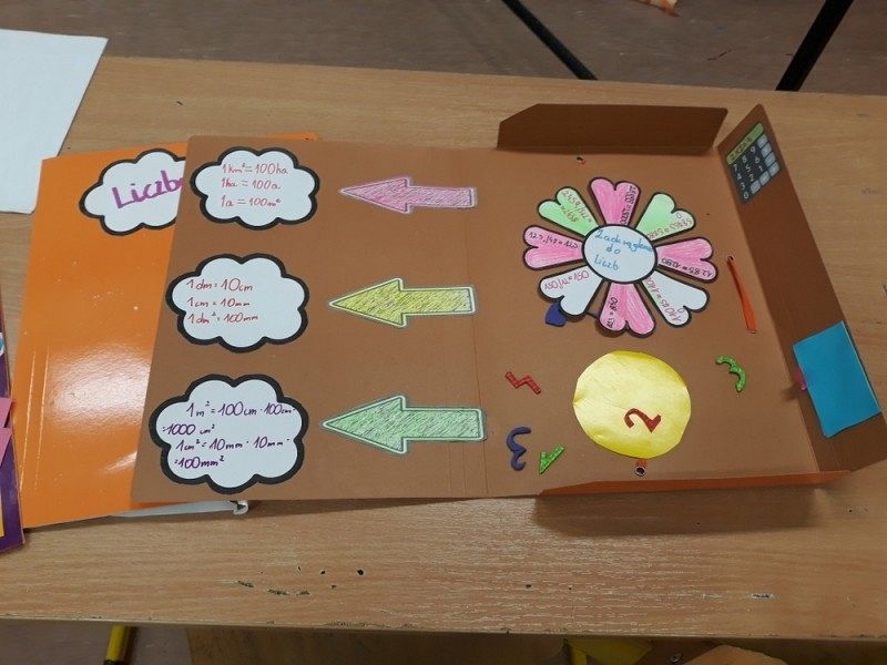 W grudniu uczniowie klasy VI c na zajęciach dodatkowych z matematyki tworzyli kreatywne teczki w celu podsumowania działu w celu podsumowania informacji z działu " Liczby na co dzień". Lapbook to atrakcyjna forma pracy dla uczniów, pozwalająca uporządkować informacje według własnego pomysłu i inwencji. W środku teczki można znaleźć rysunki, wykresy, zdjęcia, definicje.