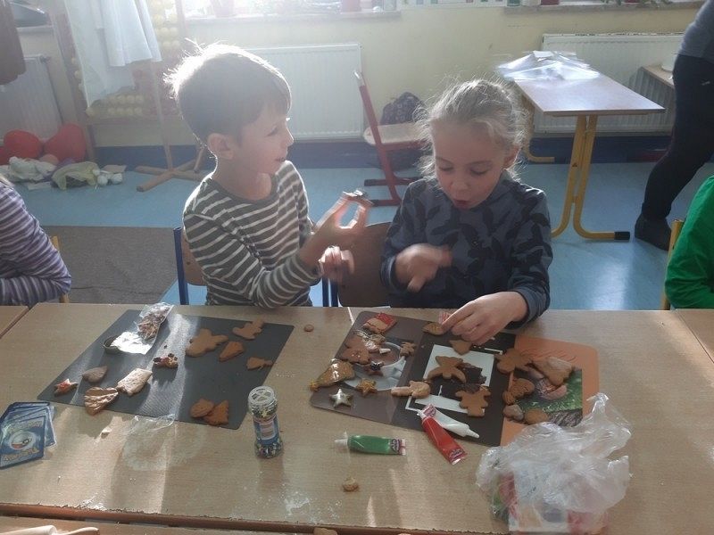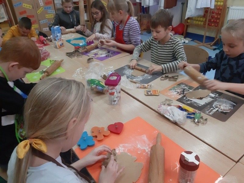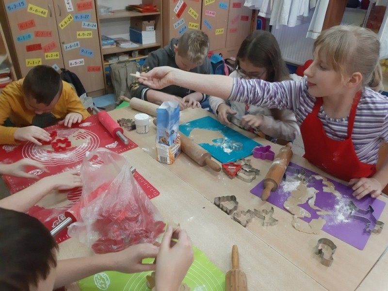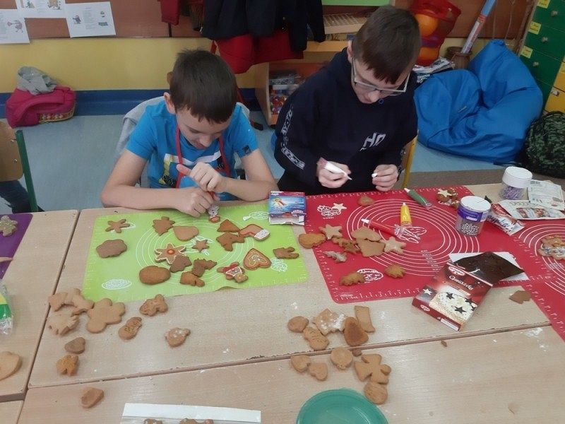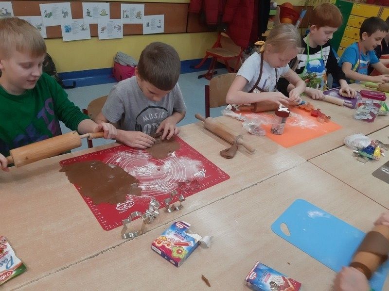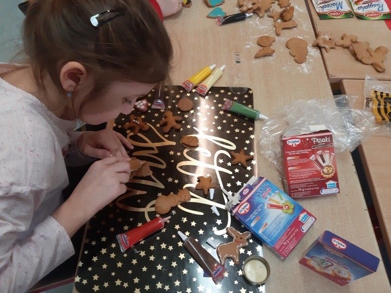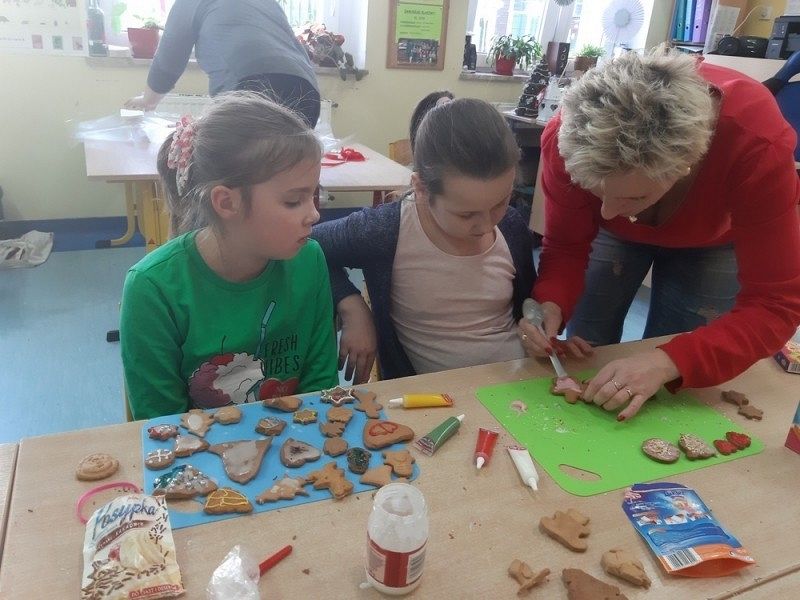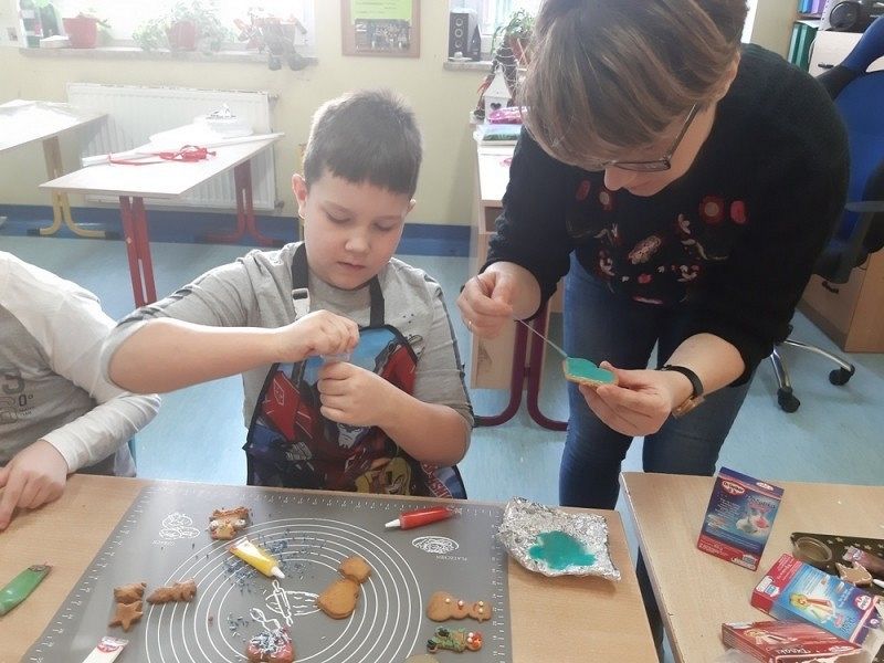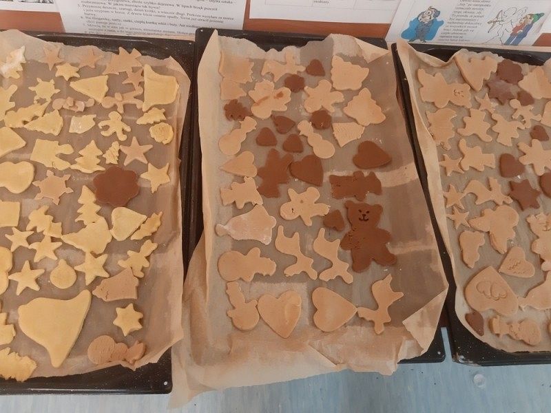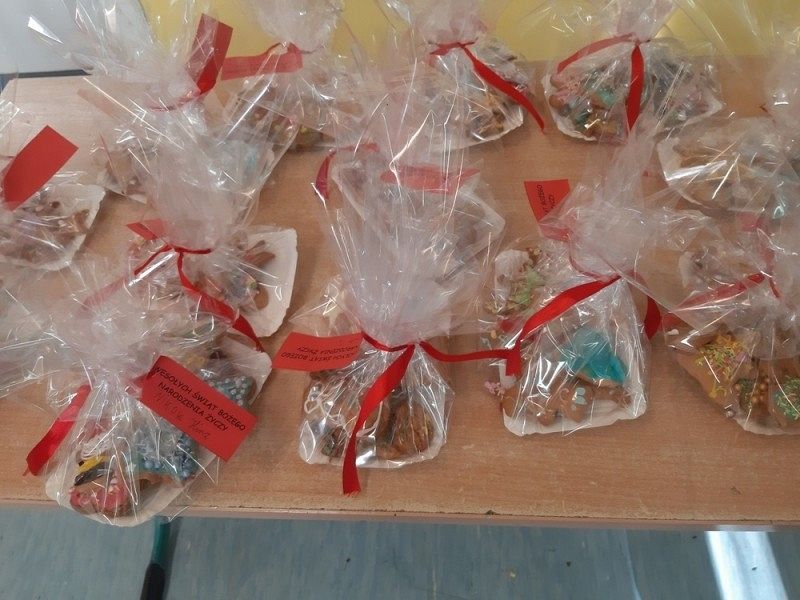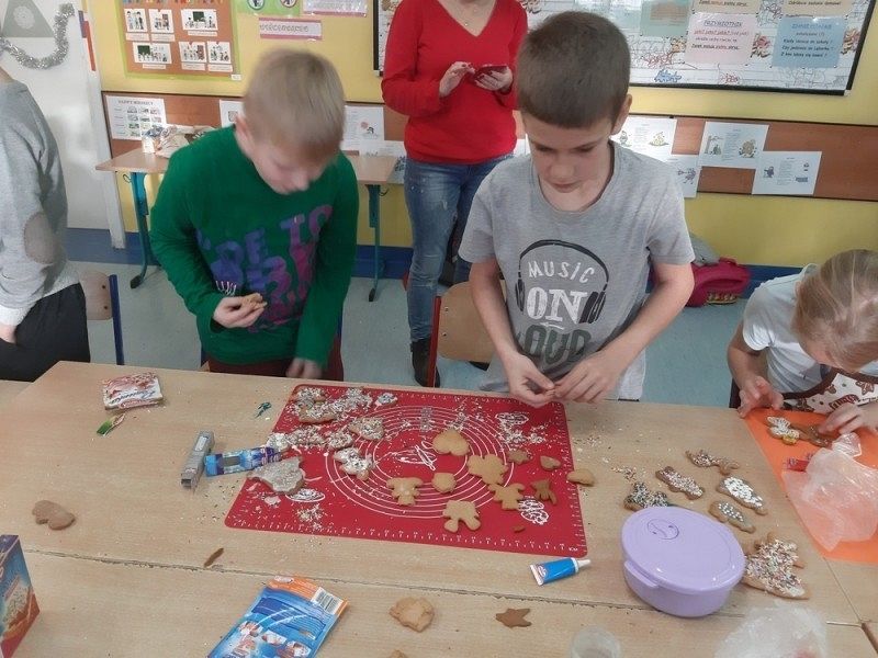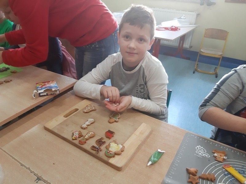 Przedświąteczny czas jest świetną okazją do rozmów o tradycjach Świąt Bożego Narodzenia. Jednym z takich przykładów jest tradycja wypiekania i dekorowania w domach pierniczków, które następnie wspólnie z rodzicami i rodzeństwem są dekorowane. I tak w środę, 18 grudnia w klasie IIIB zapanował istny świąteczny klimat, a zapach roznosił się po całej szkole. Dzieci wspólnie z rodzicami samodzielnie wykrajały różne formy ciasteczek, które po upieczeniu zostały przez nie przepięknie udekorowane. Następnie ślicznie zapakowane zostały zaniesione przez uczniów do domów z życzeniami WESOŁYCH ŚWIĄT BOŻEGO NARODZENIA.