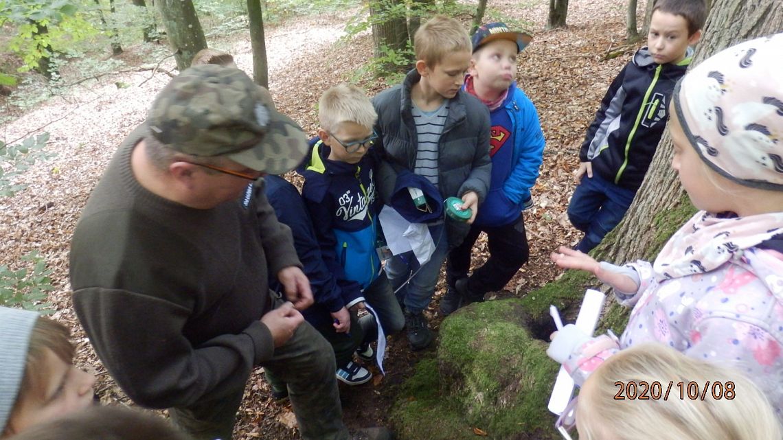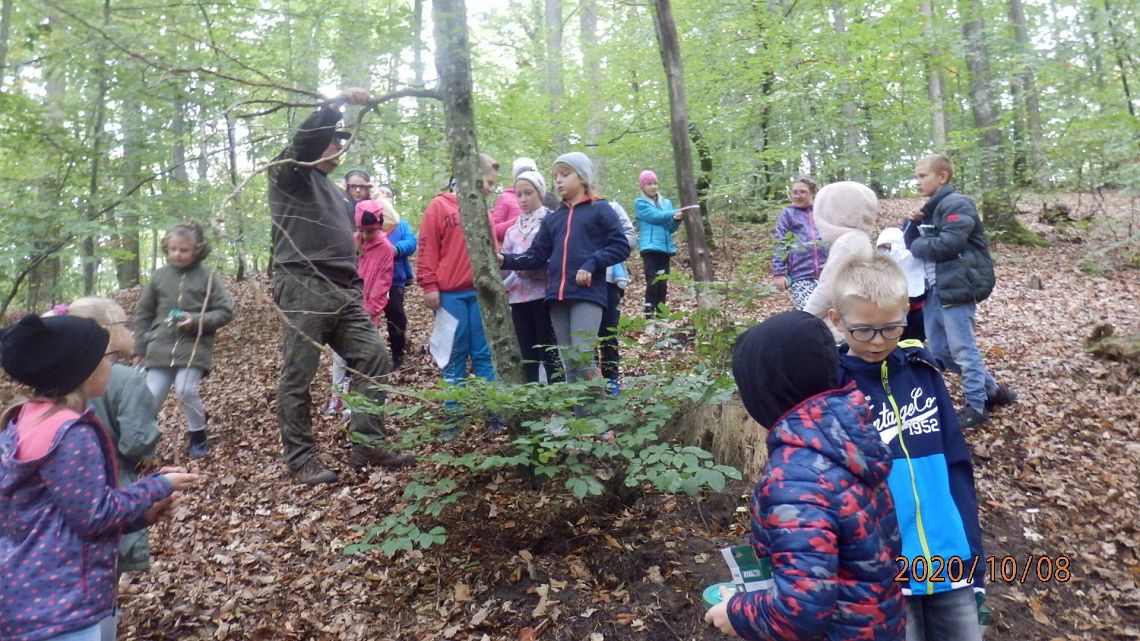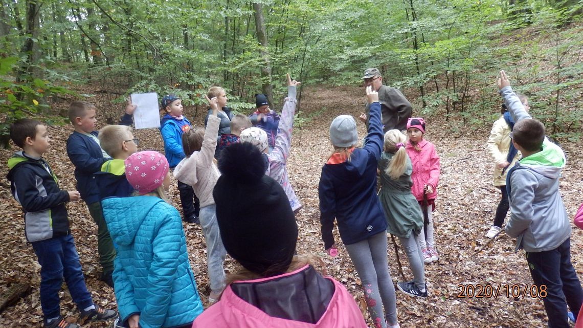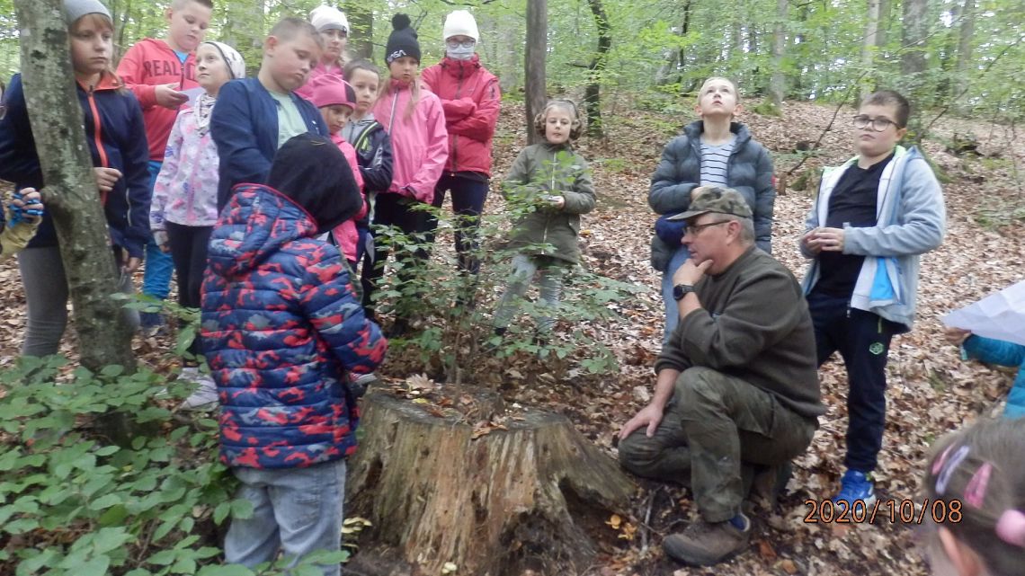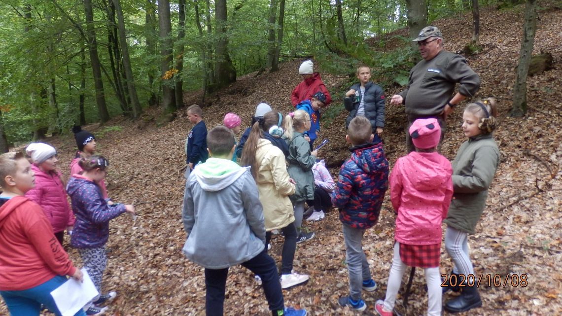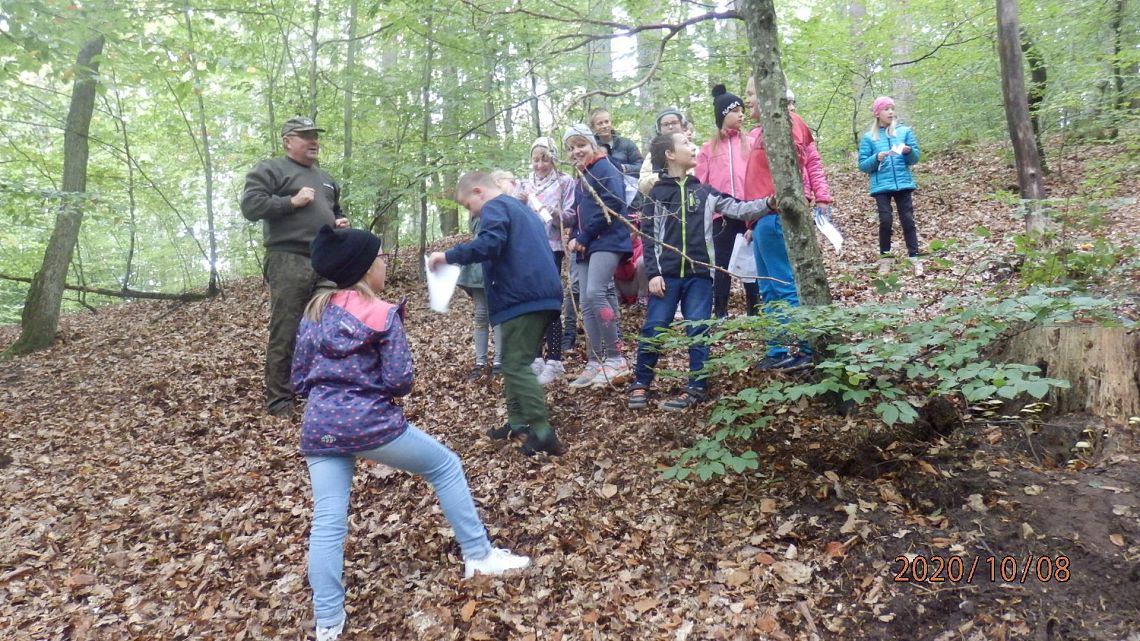 Uczniowie z Łęczyc świętowali Dzień Drzewa...między drzewami. W lesie spotkali się z Panem leśniczym, któremu zadawali mnóstwo pytań dotyczących przyrody oraz wykonywanego zawodu. Następnie młodzi przyrodnicy przystąpili, pod czujnym okiem Leśniczego, do mierzenia obwodów pni oraz szukania skarbów lasu. Natrafili na norki borsuka i lisa, między gałęziami spostrzegli wiewiórkę, a w liściach nawet muchomora sromotnikowego. Wszystkie spostrzeżenia notowali na karcie pracy, którą dokończyli uzupełniać już w klasie.