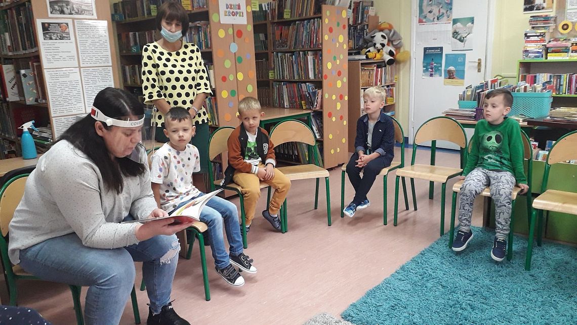 15 września obchodziliśmy Międzynarodowy Dzień Kropki – święto kreatywności i odwagi. Z tej okazji do biblioteki zaprosiliśmy przedszkolaki oraz grupę 0A „Biedroneczki” wraz z wychowawczyniami. Uczniowie poznali historię małej biedroneczki Fionki, bohaterki książki „Zawsze wesoło z biedronką Fionką”, ciekawie przeczytanej i omówionej przez Panią Agnieszkę. Maluchom opowiadanie bardzo się spodobało. Uważnie słuchały i odpowiadały na pytania związane z przeczytaną treścią. Kolejnym punktem spotkania była kreatywna zabawa w ozdabianie biedronkowych skrzydełek. Z zadaniem poradziły sobie również doskonale! Na koniec dzieci poszukiwały kropek w książkach ze zwierzętami, otoczeniu oraz na swoich ubraniach. Panie bibliotekarki dziękują gościom za odwiedziny i zapraszają ponownie.