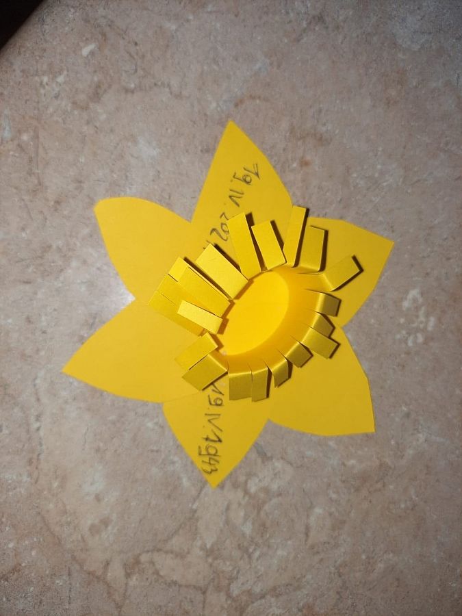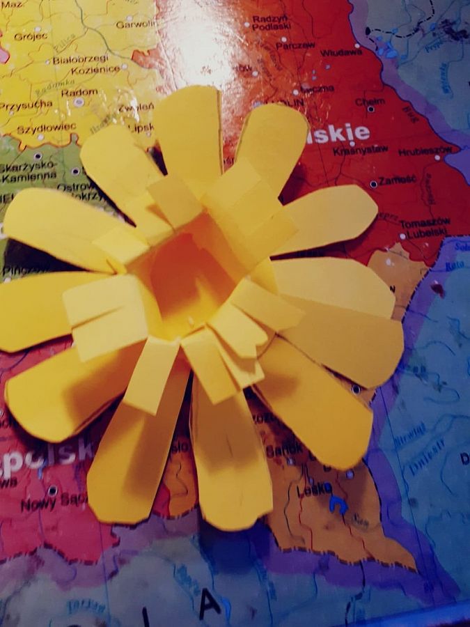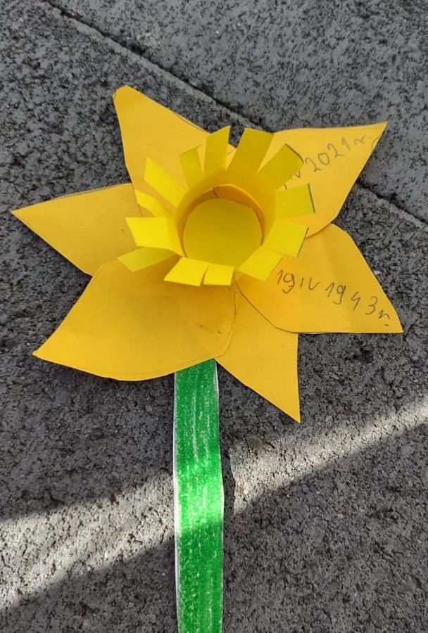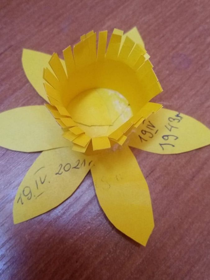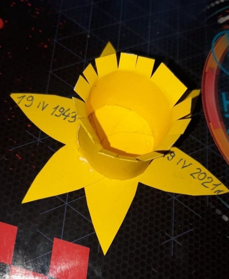 Uczniowie wykonali również symboliczne papierowe żonkile, symbol pamięci w getcie warszawskim.