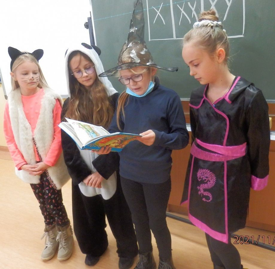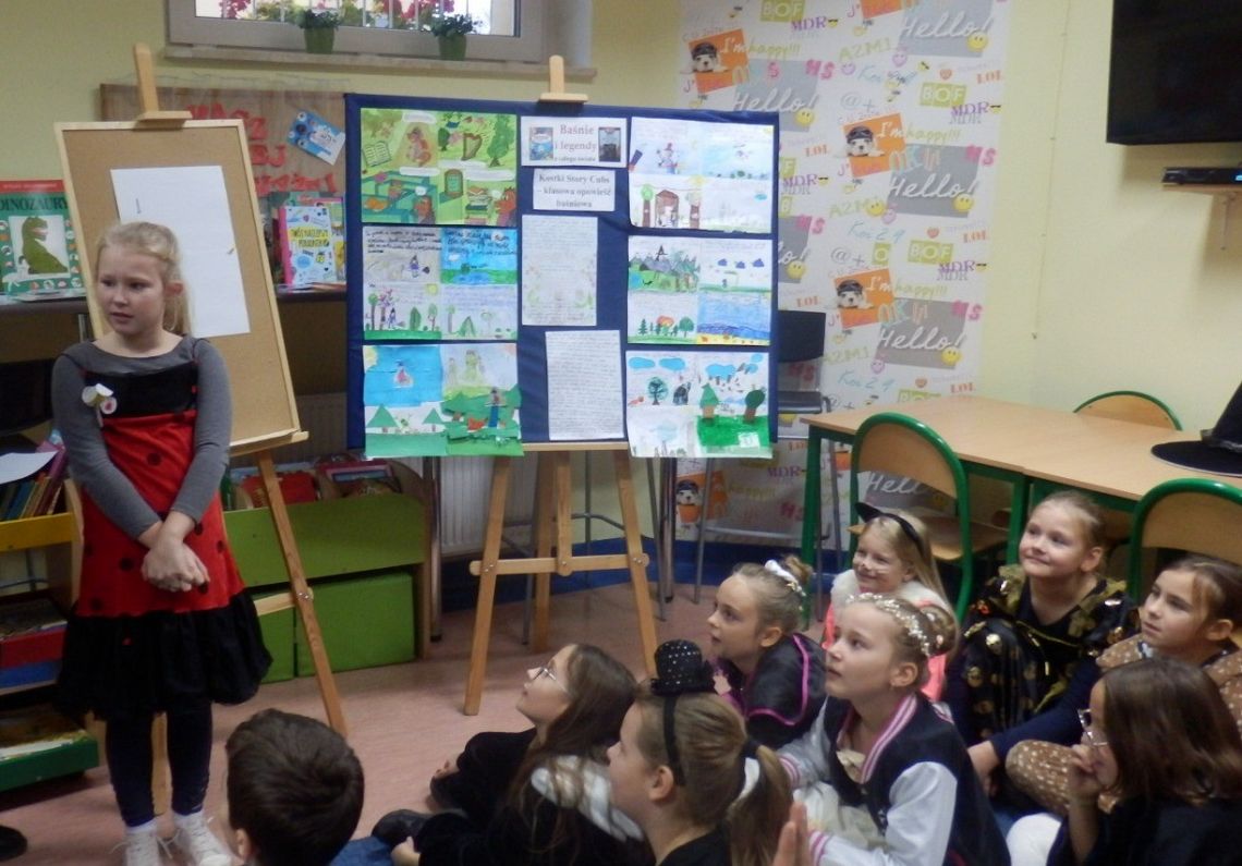 5 listopada obchodziliśmy Międzynarodowy Dzień Postaci z Bajek. Ten dzień był doskonałą okazją do świetnej zabawy i rozwijania zainteresowań czytelniczych. Sprawił dzieciom wiele radości, zwłaszcza uczniom klasy 3 b, uczestniczącym w spotkaniu bibliotecznym oraz księżniczkom, wróżkom, batmanom i innym baśniowym postaciom robiącym sobie zdjęcie w bajkowej scenerii.W tym dniu również dziewczynki z Małego Kółka Bibliotecznego odwiedziły klasę 8 a, aby przeczytać im bajkę „Książe żaba”. Po czytaniu …były również zabawy wymagające wykazania się znajomością treści bajki i odgadywania zagadek. Klasa 8 zdała przepytywanie na 5!