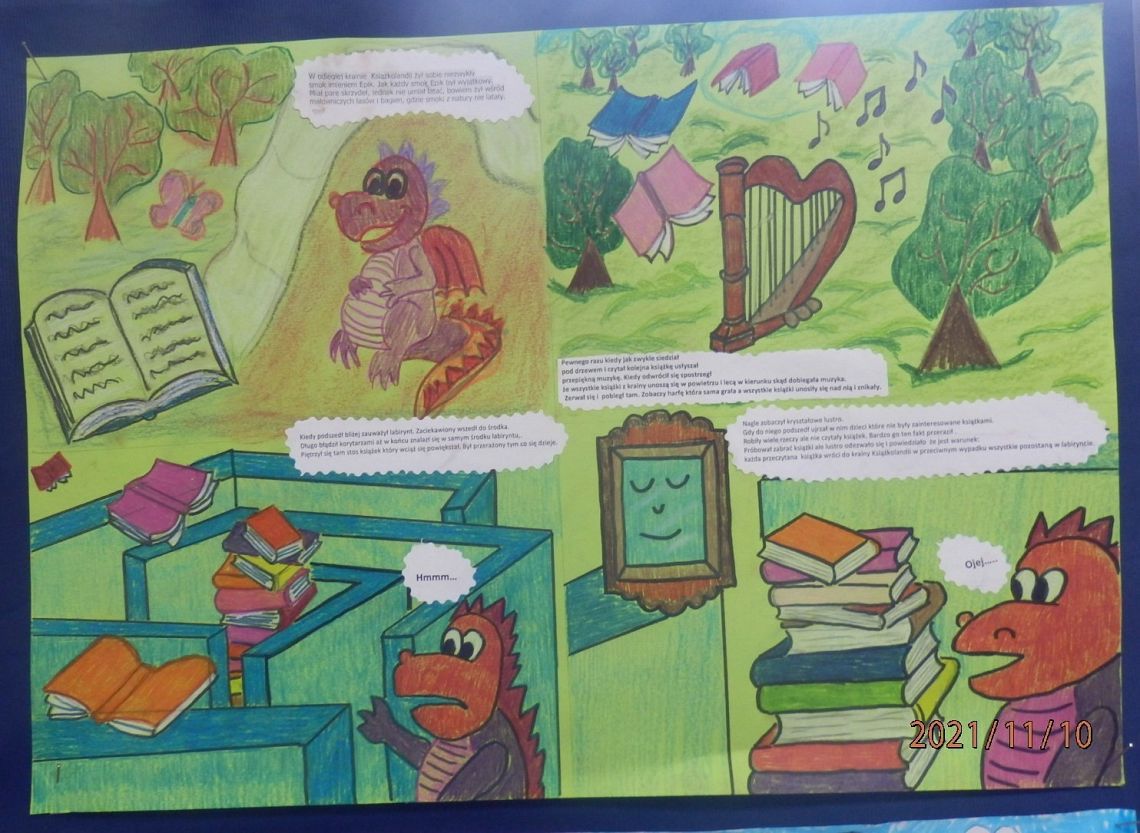 W tym dniu roztrzygnęliśmy klasowy konkurs "Kostki Story Cubes - klasowa opowieść baśniowa". Wszystkie prace wykonane były z ogromnym zaangażowaniem i pomysłowością. Tytuł laureata przypadł klasie: I c,2 b, 3 b, 4 b, 6 a. Brawo. Gratulujemy!.