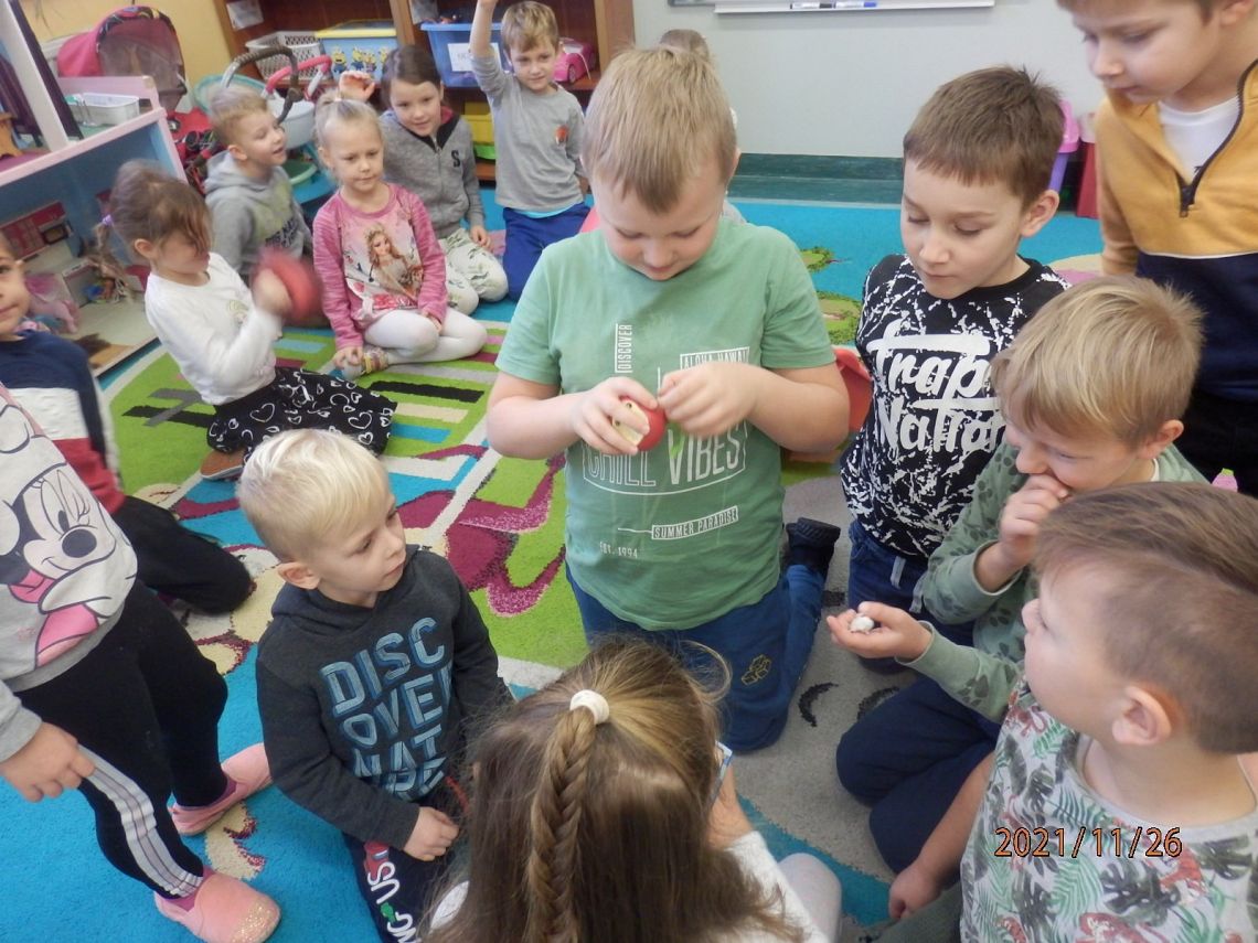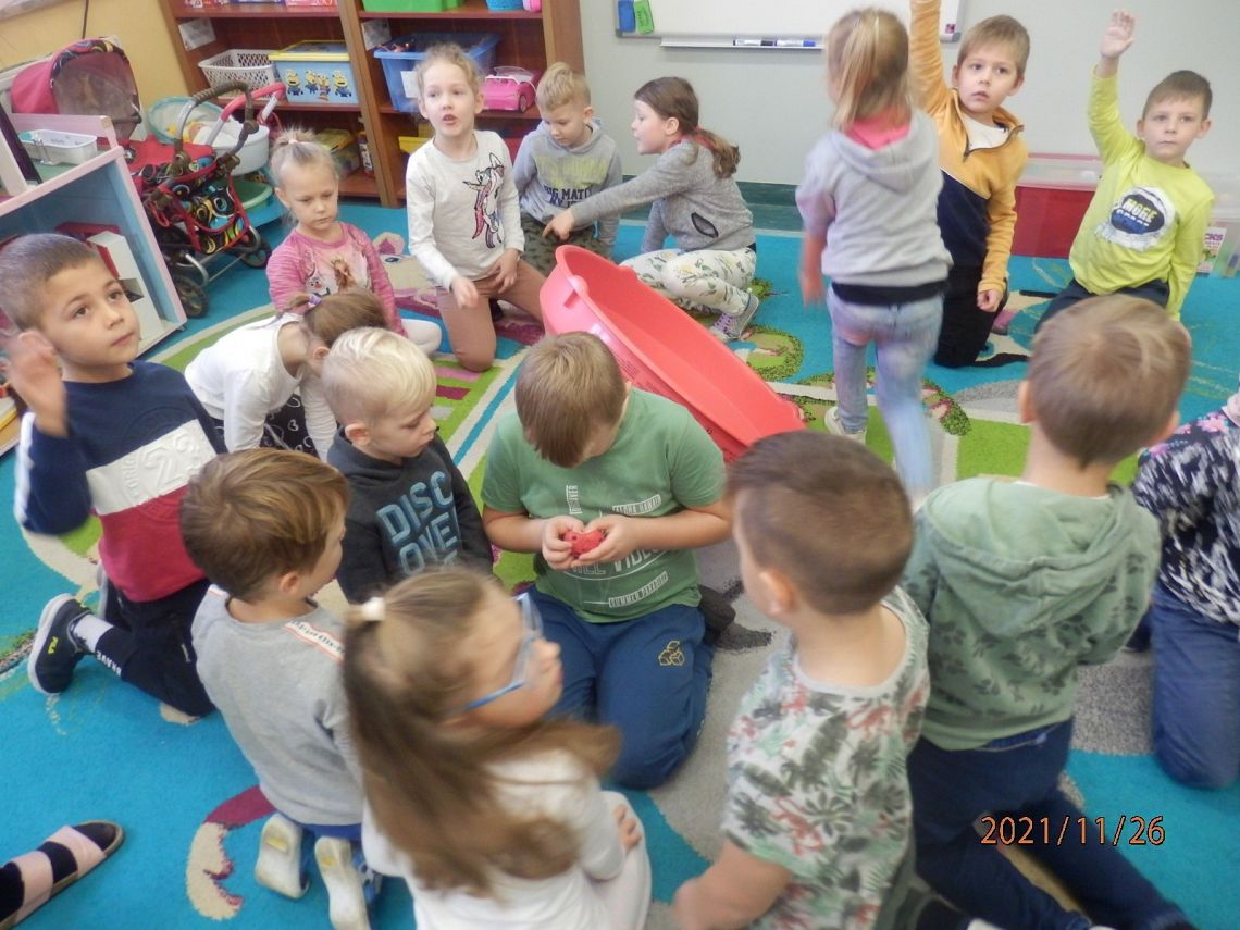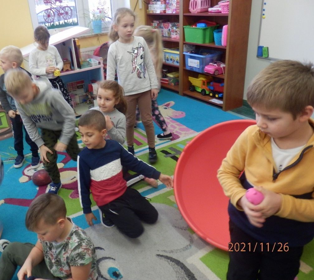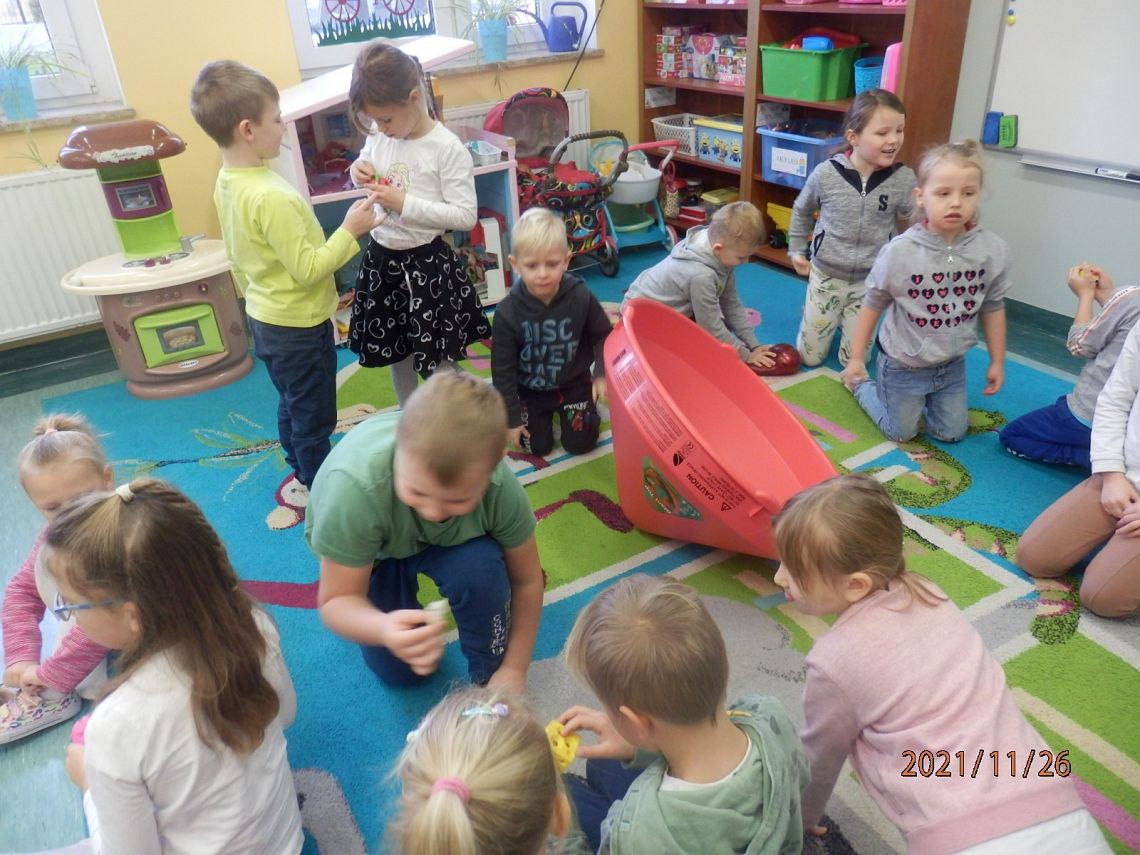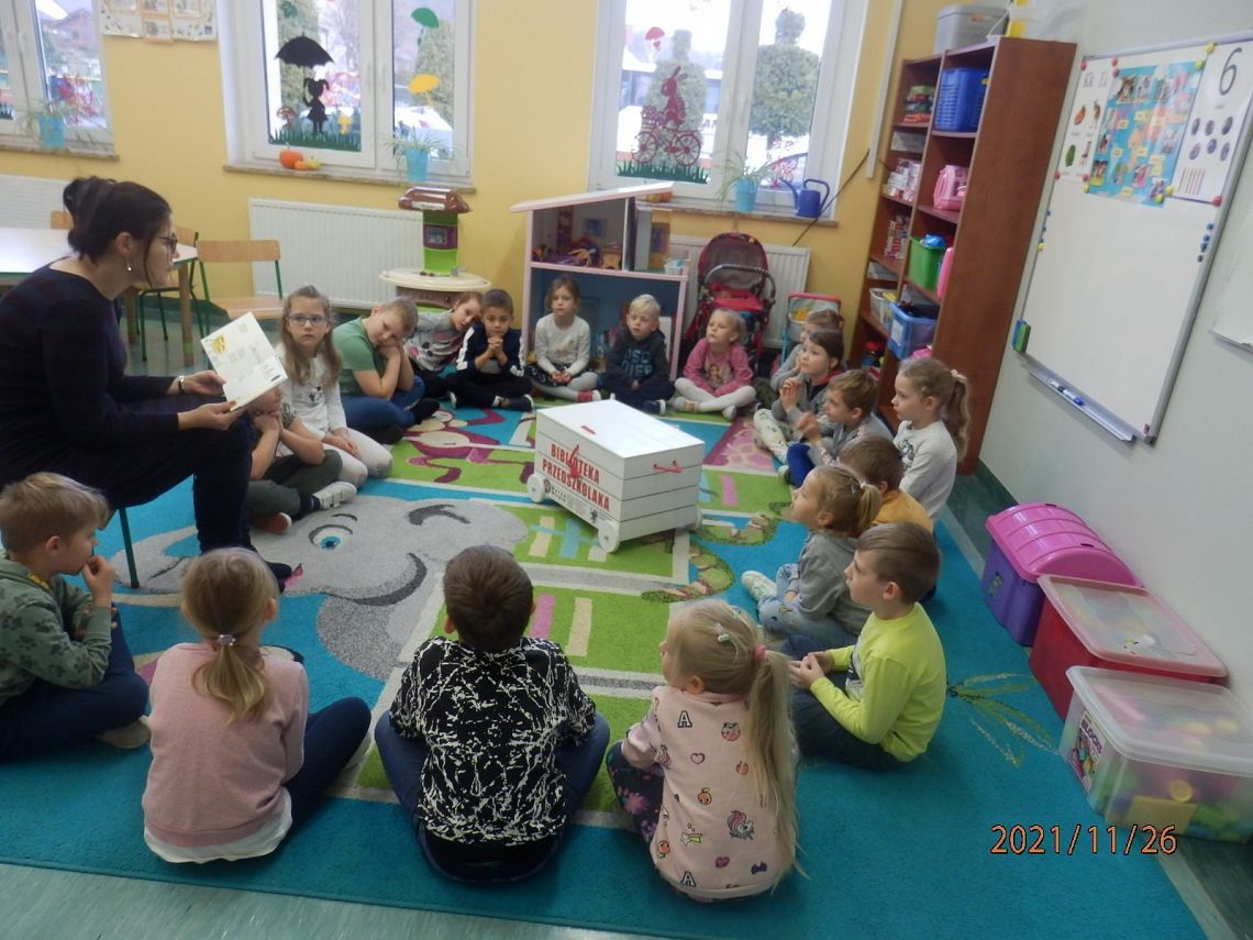 "Pan Maluśkiewicz i wieloryb" to kolejna z książek "Biblioteki Przedszkolaka". Pełną wdzięku i humoru opowieść o niezwykłej morskiej wyprawie najmniejszego człowieka na świecie, przeczytała dzieciom Pani Anna - właścicielka Gabinetu Terapeutycznego "Sensoryk " w Łęczycach. Pani Ania, w swoim gabinecie prowadzi terapię integracji sensorycznej, terapię ręki oraz terapię logopedyczną. Sprawiła dzieciom wielką niespodziankę, przynosząc na zajęcia zabawki do integracji sensorycznej. Przedmioty o różnej fakturze, kształtach, kolorach i wzorach, stymulowały rączki i nóżki oraz pobudzały wyobraźnię dzieci. Największe zainteresowanie wzbudził wirujący stożek, w którym, wbrew pozorom, wcale nie było łatwo się kołysać. Serdecznie dziękujemy Pani Ani za czytelniczo-terapeutyczne spotkanie. Życzymy zadowolenia z wykonywanej pracy oraz wielu pozytywnych efektów terapeutycznych.
