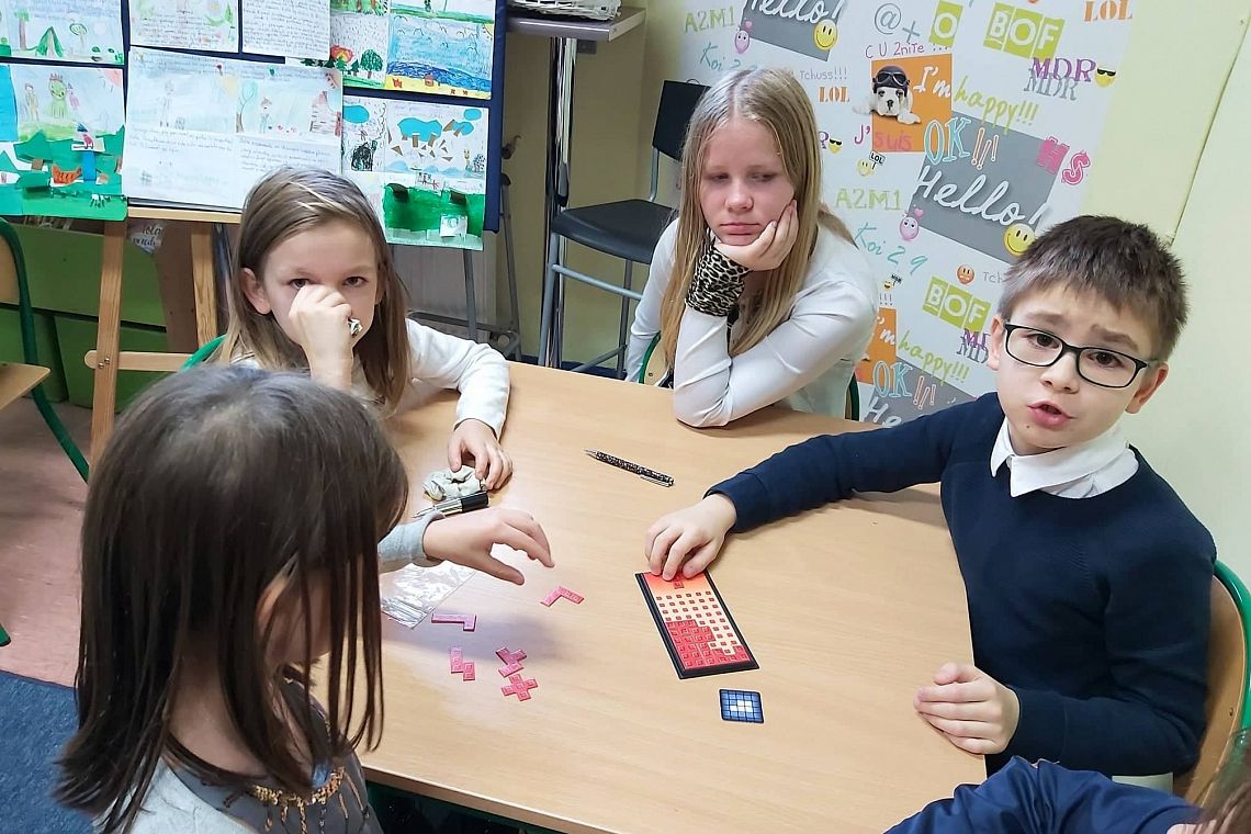 Podczas wspólnej zabawy uczniowie klasy IVa musieli wykazać się umiejętnością efektywnej współpracy w grupie. Pomogło im w tym "kreatywne bingo" - gra ułatwiająca lepsze poznanie się a także sprawdzenie, jak dobrze grupa się zna. Kolejnym z zadań, przed jakimi stanęli uczestnicy była gra w "FITS chalenge". Pozwoliła ona uczniom poznać mocne i słabe strony zarówno zespołu, jak i samych siebie.