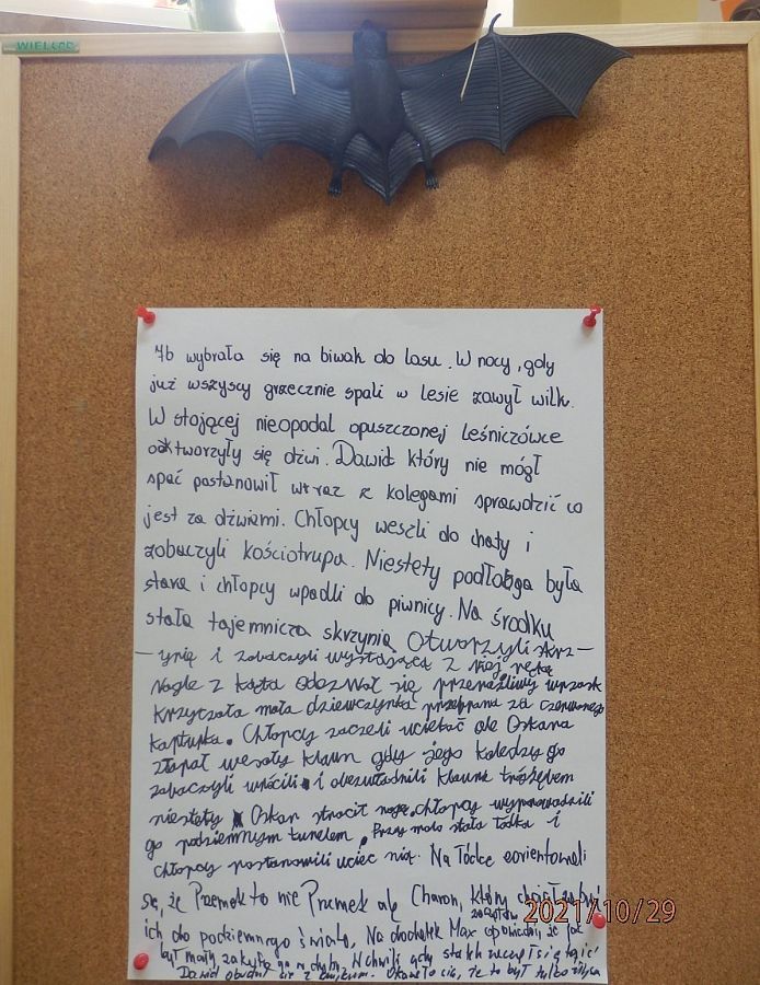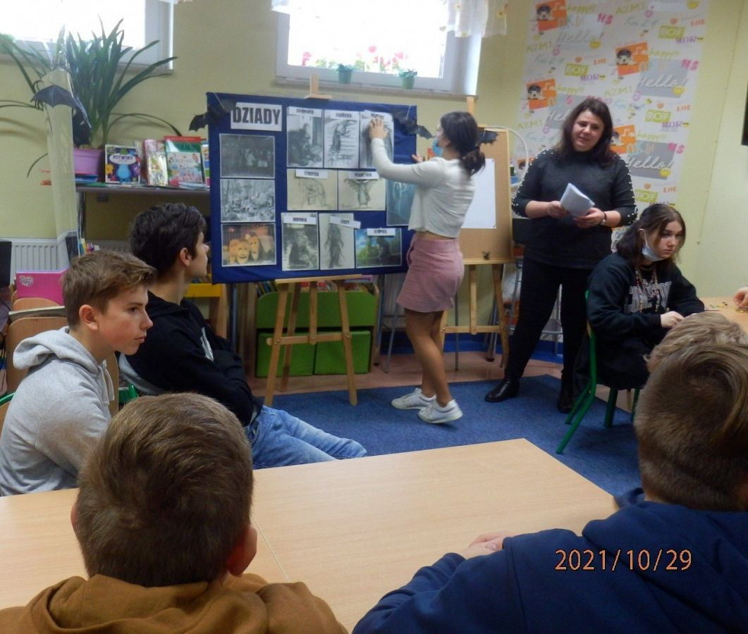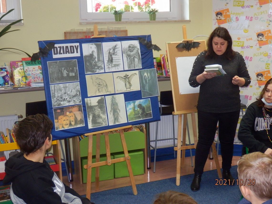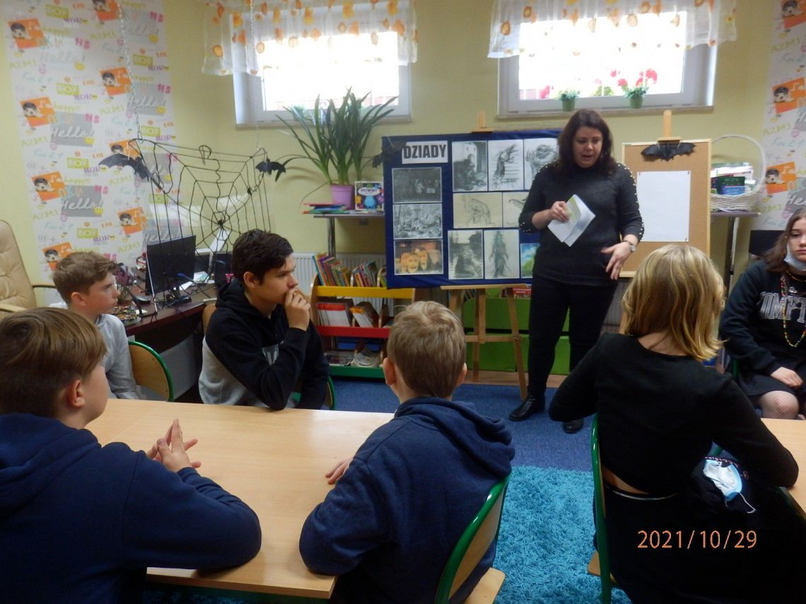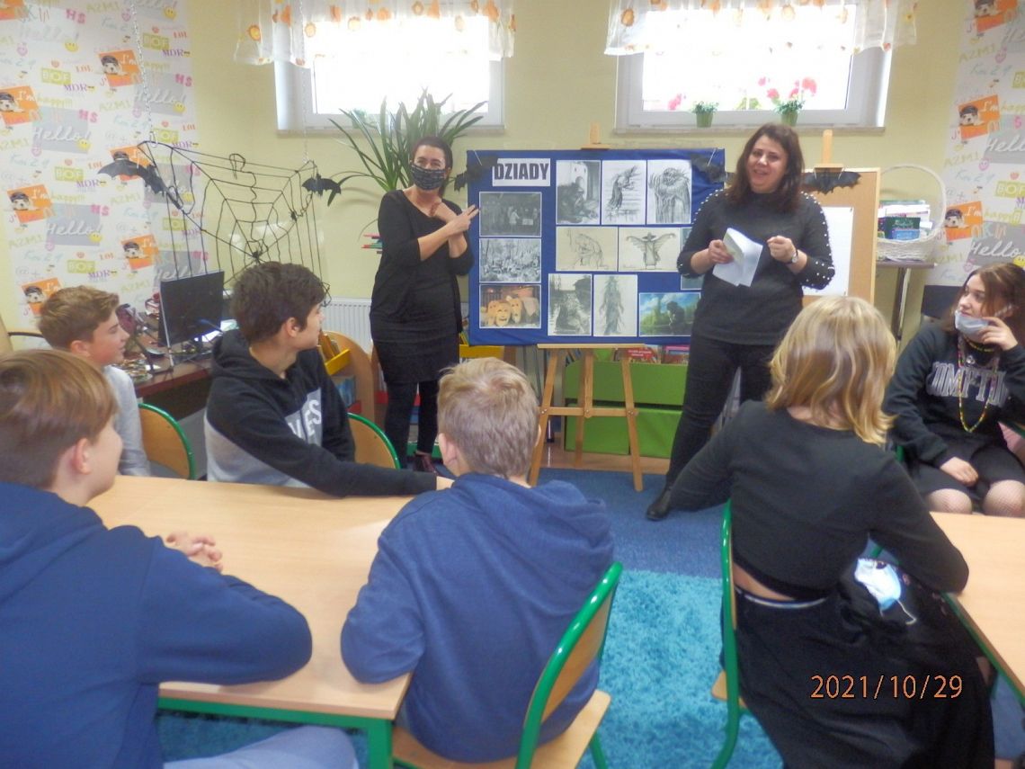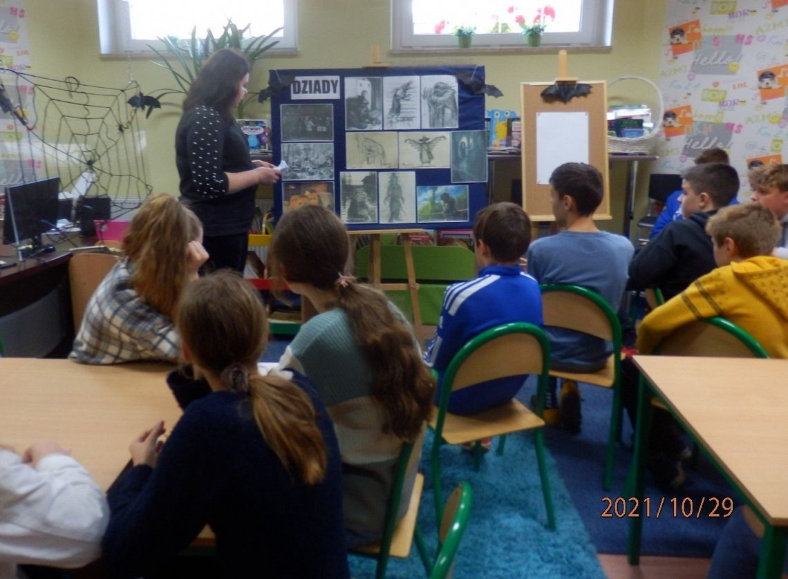 Na to pytanie, w piątek, starali się znaleźć odpowiedź uczniowie klasy 7 b i 8 b, uczestnicząc w spotkaniu bibliotecznym poświęconym słowiańskim wierzeniom pogańskim. W mitologii słowiańskiej, zwłaszcza polskiej i białoruskiej, słowo dziady oprócz samego święta oznaczało duchy przodków, zstępujące wtedy na ziemi.O pogańskich wierzeniach słowiańskich, zmorach i innych strrrasznych!!!! demonach, w przygotowanym na tę okazję nieco mrocznym klimacie, opowiedziała młodzieży Pani Agnieszka z Biblioteki Publicznej. Uczniowie słuchali z wielkim zaciekawieniem, a na zakończenie (po wcześniejszym rzucie kostkami Story Cubes) napisali swoją własną historię z dreszczykiem. Można ją oczywiście przeczytać w bibliotece. Zapraszamy.
