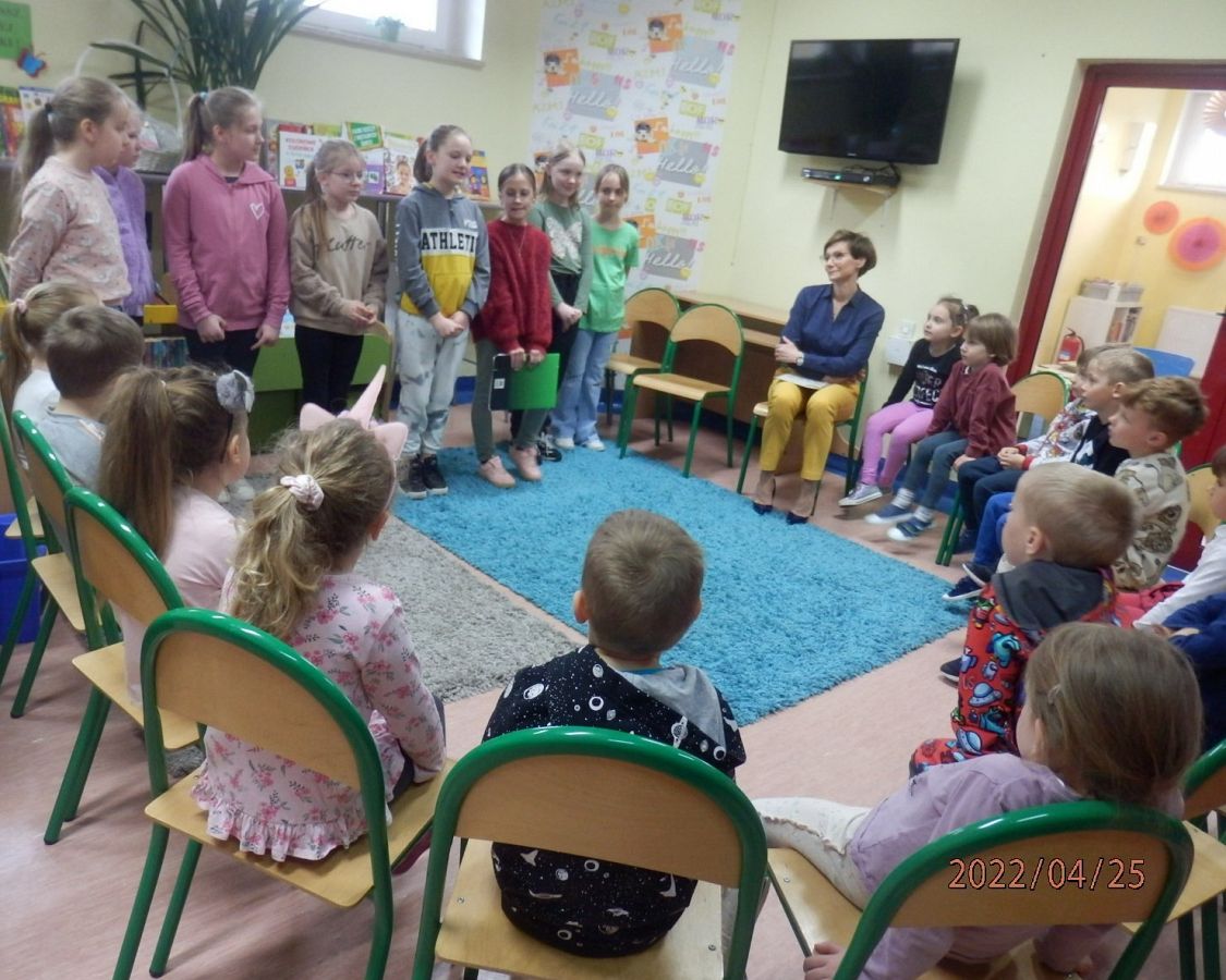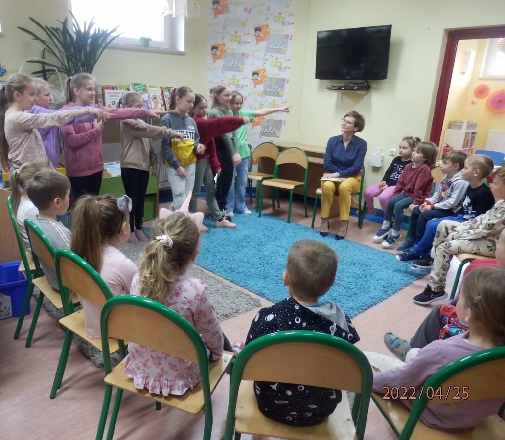 Za nami kolejne zajęcia w ramach projektu „Magiczna moc bajek”. Dzisiejsze spotkanie pt. „Piękno i ochrona przyrody” nawiązywało do Dnia Ziemi, obchodzonego 22 kwietnia, oraz kolejnych ważnych wartości, omawianych w kwietniowym module programu. Z tej okazji w bibliotece gościliśmy Panią Gabrielę Szmidtke - Kierownika Referatu Ochrony Środowiska i Klimatu w naszym Urzędzie Gminy oraz przedszkolaki z grupy 0C. Uczestnicy obejrzeli scenkę w wykonaniu kółka bibliotecznego, która przypomniała im w jaki sposób dbać o przyrodę. Informacje te utrwaliła również Pani Gabriela, czytając dzieciom książkę „Przygody Fenka. Segreguję śmieci”, z serii "Dbam o środowisko". Dzieci z uwagą i zainteresowaniem uczestniczyły w zajęciach, chętnie dzieląc się swoimi spostrzeżeniami. Omawiane zagadnienia podsumowała Pani Agnieszka z Biblioteki Publicznej, która na zakończenie przygotowała dla nich test dotyczący segregacji odpadów. Maluchy zdały go celująco, dlatego w nagrodę otrzymały od Pani Gabrieli eko-upominki, za które serdecznie dziękują.