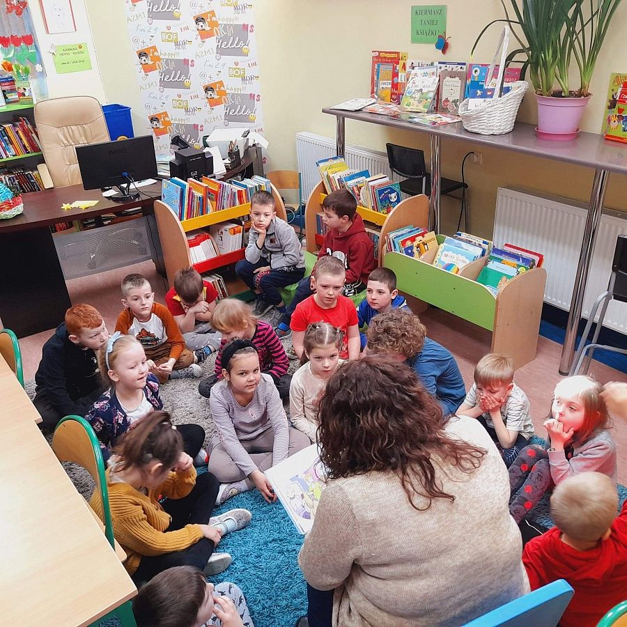 Z okazji święta, przypadającego na 23 kwietnia gościliśmy w bibliotece przedszkolaki z klasy 0B.