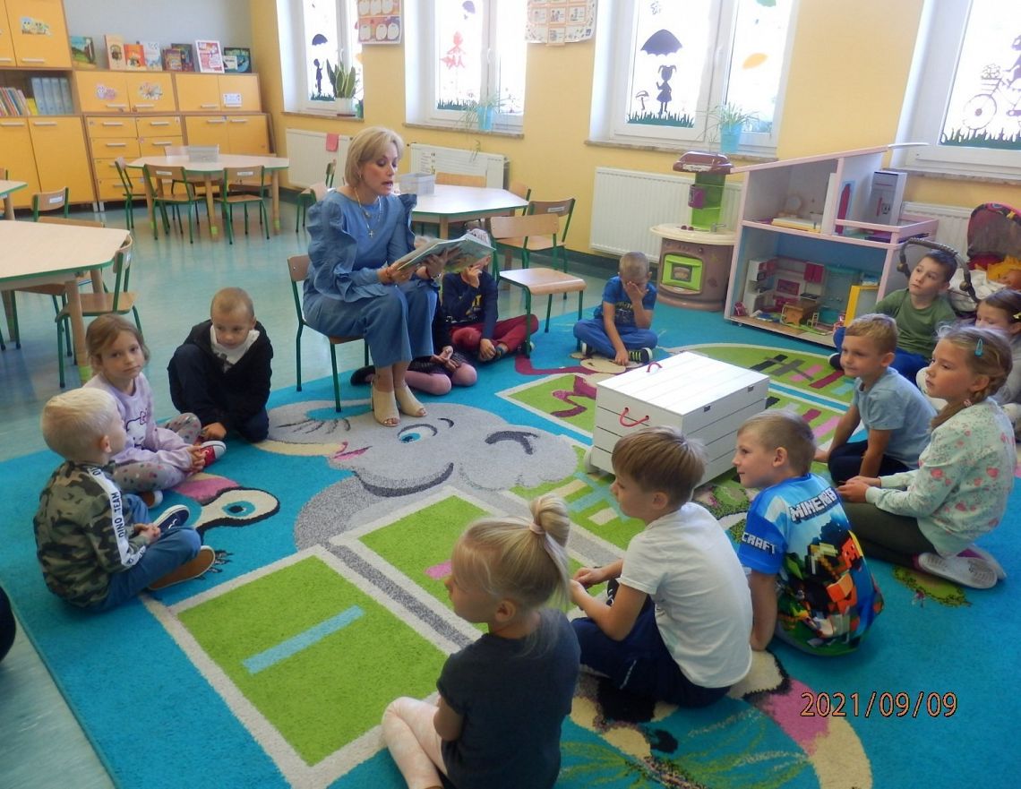 W pierwszych dniach września przedszkolaki z grupy O B rozpoczęły kolejne spotkania z literaturą, realizowane w ramach projektu „Biblioteka Przedszkolaka”. Inauguracyjne warsztaty odbyły się tuż przed wakacjami, a poprowadził je pisarz, współautor projektu, prezes fundacji „Burza Mózgów”, Pan Łukasz Dębski.