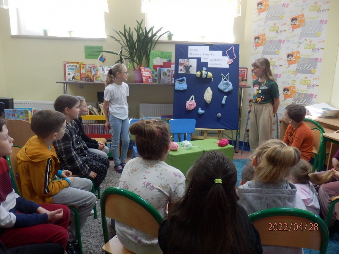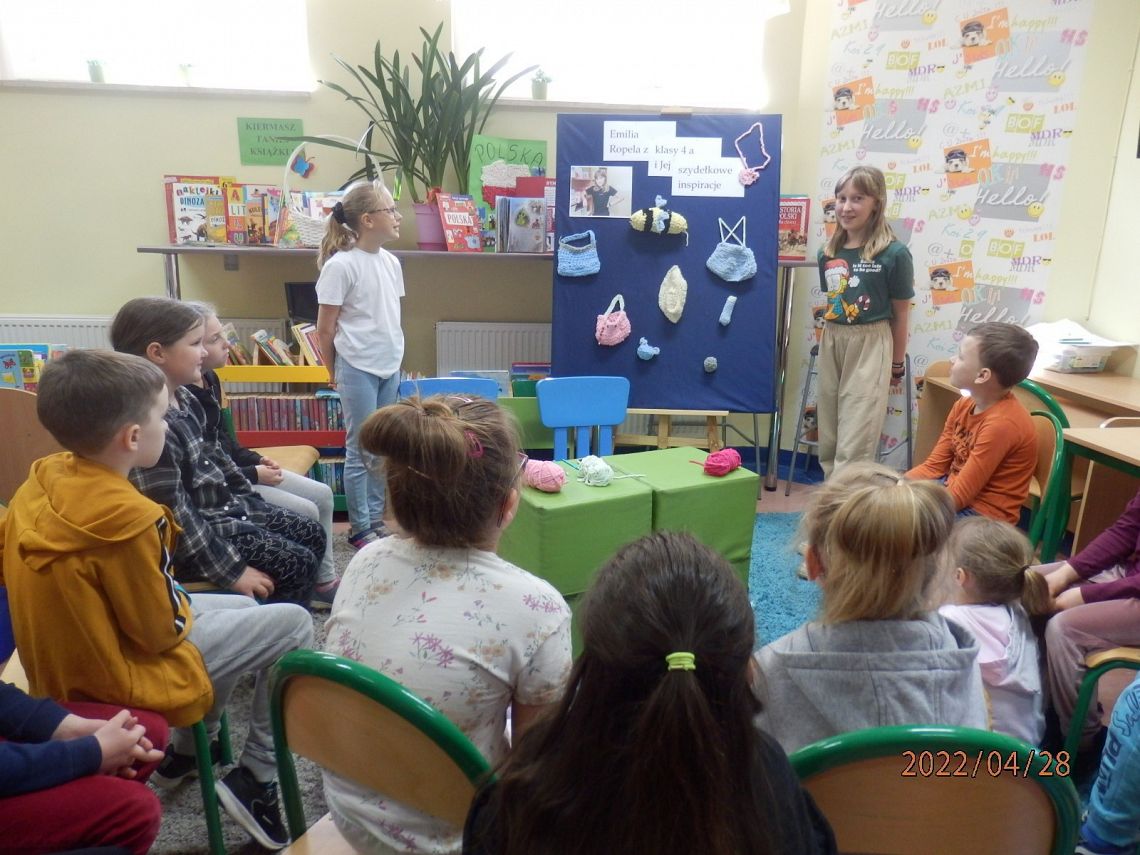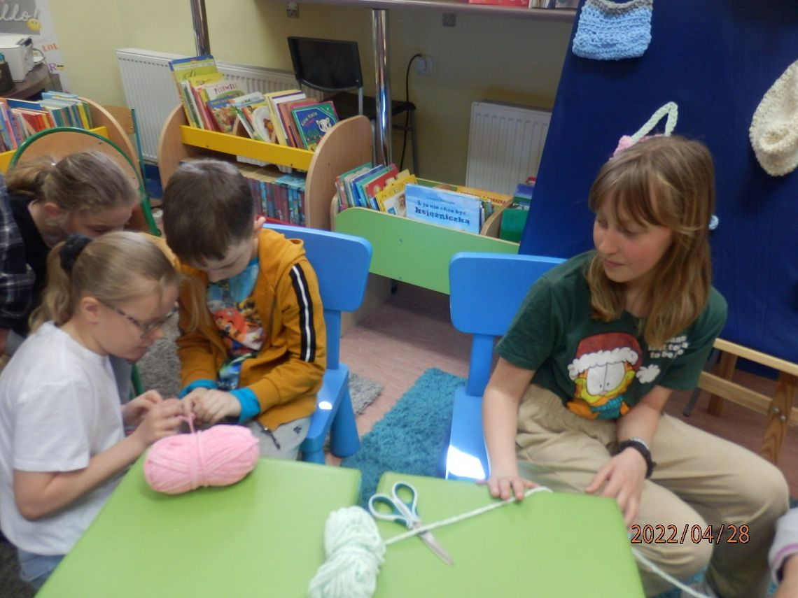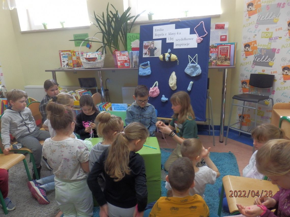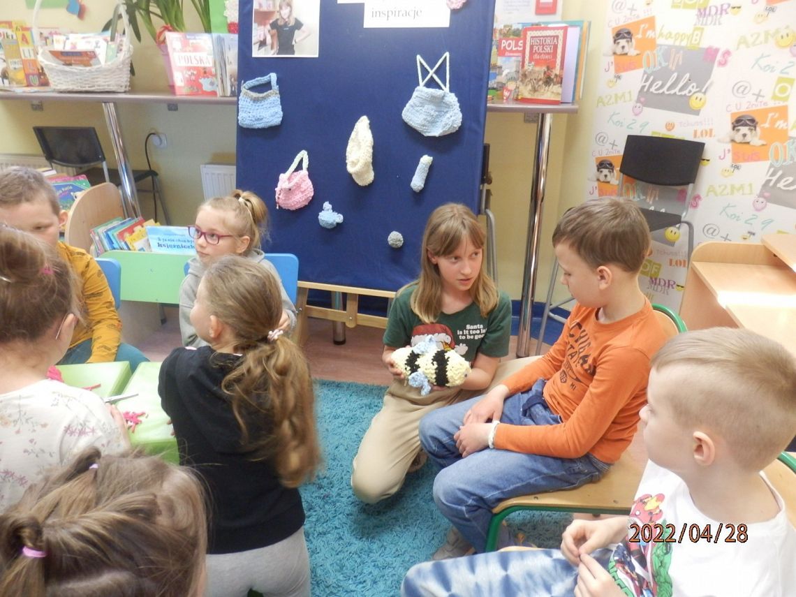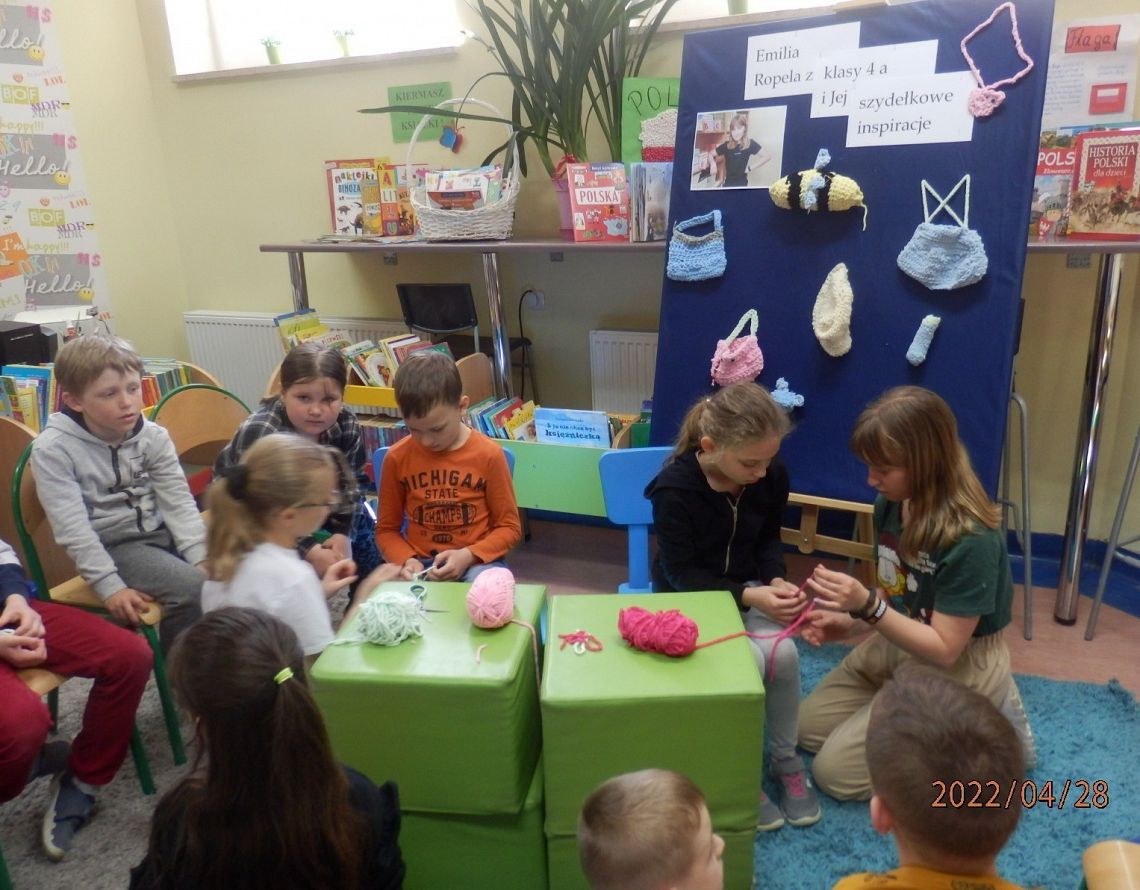 Za nami kolejne warsztaty z rękodzieła. Tym razem w bibliotece na wspólnym szydełkowaniu spotkały się uczennice z klasy 4 a - Emilia Ropela i Zuzanna Bogusz. Dziewczyny podzieliły się swoją pasją z uczniami z klasy 2 b i 8 a. Emilia zainteresowała się szydełkowaniem 2 lata temu, gdy obserwowała podczas robótek ręcznych swoje babcie. Troszkę o nim zapomniała, do pasji wróciła niedawno, po namowie młodszego brata, który uczestniczył już w podobnych warsztatach w bibliotece. Zuzia natomiast podpatrzyła tę sztukę od Emilii i tak to obie dziewczynki postanowiły podzielić się zainteresowaniami z młodszymi i starszymi koleżankami i kolegami !