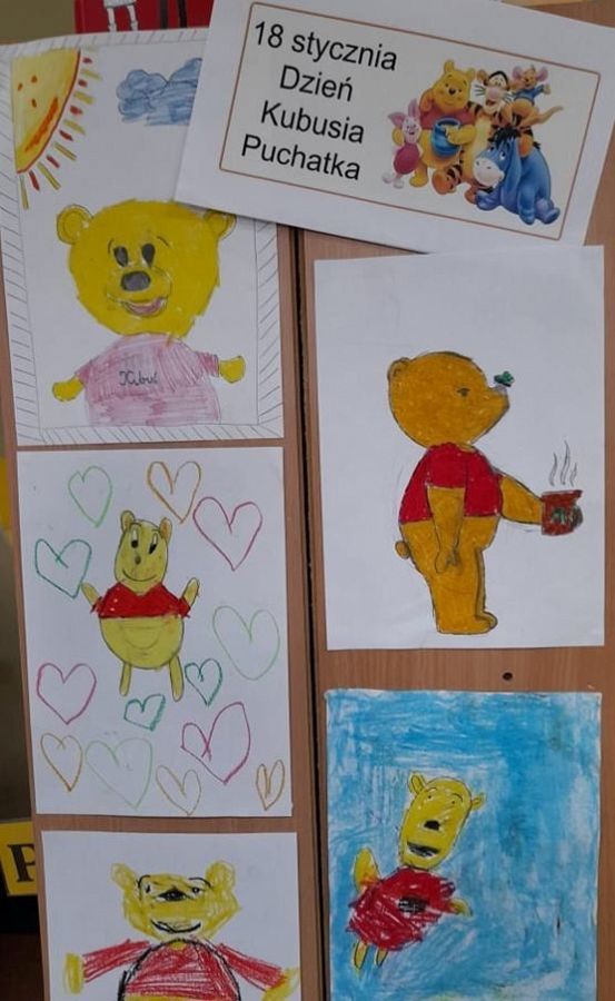 Dnia 18 stycznia obchodzimy Międzynarodowy Dzień Kubusia Puchatka. Najsłynniejszego wielbiciela miodku kochają wszyscy – mali, więksi i całkiem dorośli. Kubusia uwielbiają również nasi uczniowie, którzy z radością świętowali na przerwach lekcyjnych ten szczególny Dzień. Czytali i przeglądali Kubusiowe książki, malowali portrety oraz układali puzzle. Po dzisiejszym dniu już wiedzą, skąd czerpać wiedzę o przyjaźni i pysznym miodziku? Wiadomo ! Od Kubusia Puchatka!