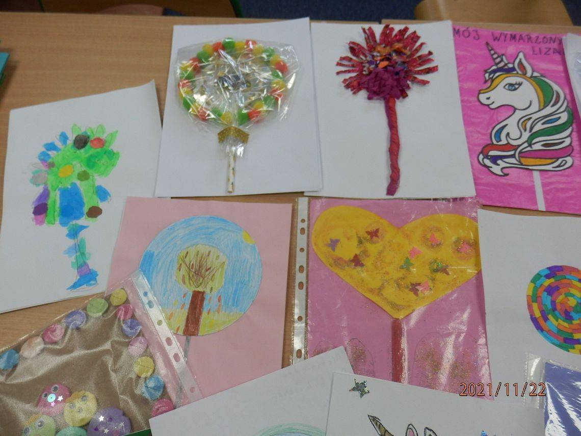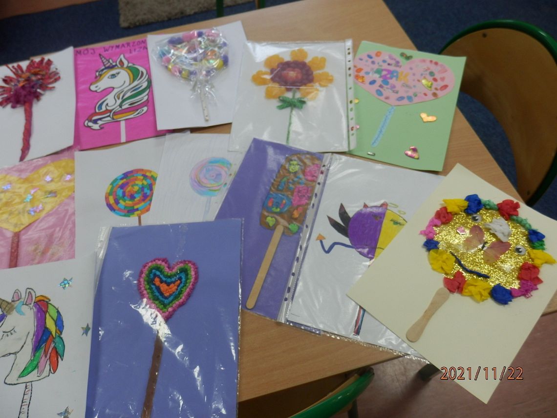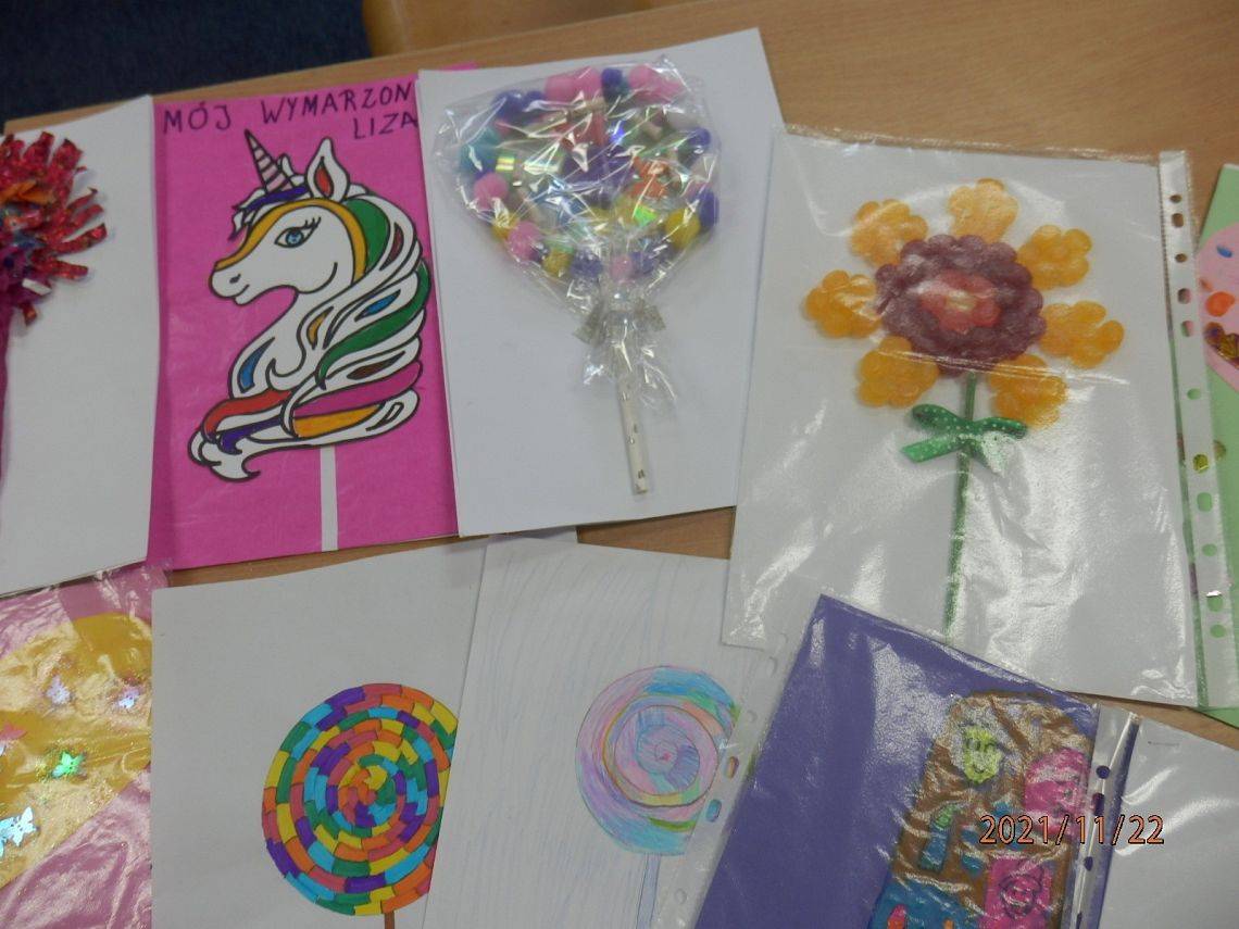 Ależ słodko zrobiło się w bibliotece:) A to za sprawą prac dzieci biorących udział w ogólnopolskim konkursie plastycznym "Mój wymarzony lizak", ogłoszonym przez MUZEUM LIZAKA w Jaśle.Interesujące słodkie projekty, czekają jeszcze na spóźnialskich i prawie zapakowane, szykują się do wysyłki. A my czekamy niecierpliwie na wyniki konkursu.