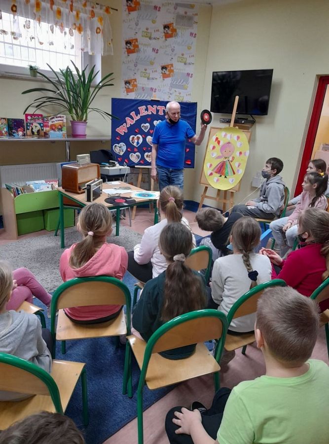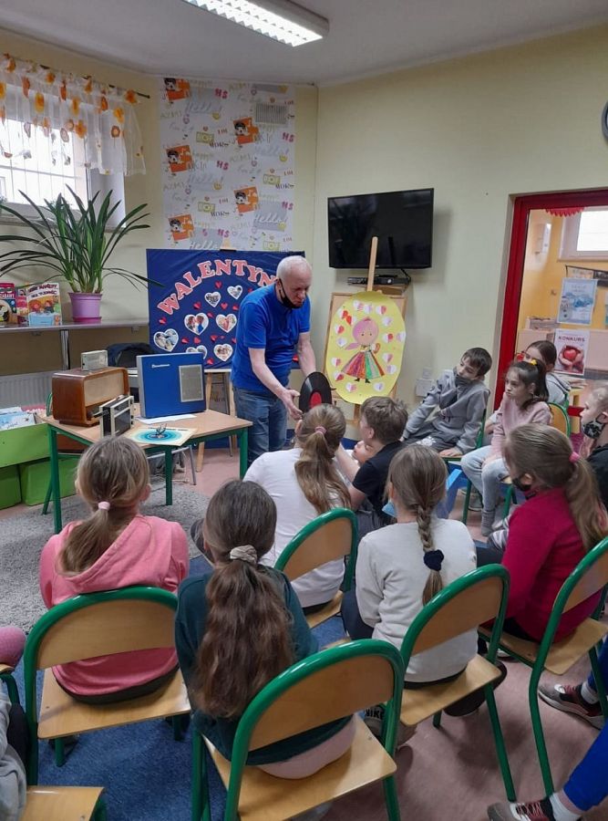 W ciągu ostatnich lat Pan Bogdan kilkakrotnie odwiedzał bibliotekę, prezentując swoją niemałą kolekcję, tym razem jednak spotkanie stało się częścią realizowanego projektu pt. „Czytamy z klasą”. Pan Bogdan zaprezentował przyniesione ze sobą radia , gramofony i płyty, z których uczniowie wysłuchali nawet pięknych starych utworów! Po prezentacji Pan Bogdan, w nawiązaniu do omawianej w projekcie książki pt. „Rany Julek! O tym jak Julian Tuwim został poetą”, zachęcał dzieci do rozwijania swoich pasji. W rozmowie trzecioklasiści zdradzili, że zbierają min. aniołki, muszelki, magnesy...Życzymy im wytrwałości w poszukiwaniach, a Panu Bogdanowi dziękujemy za interesujące spotkanie i gratulujemy pokaźnych zbiorów, które ratuje od zapomnienia.