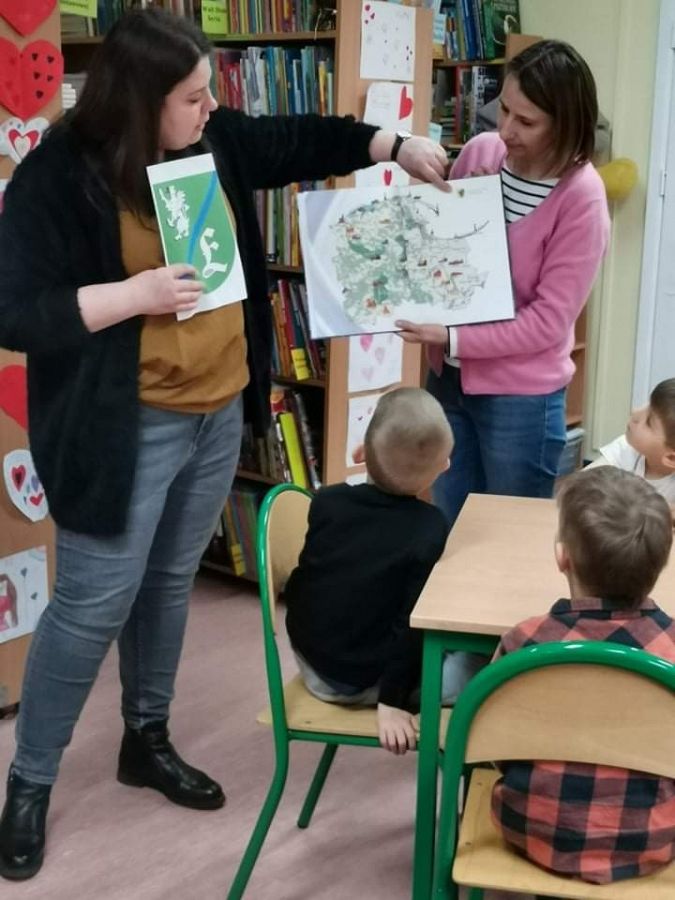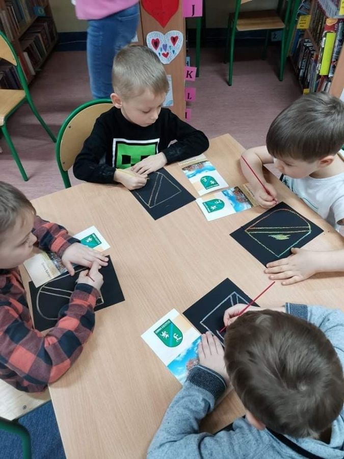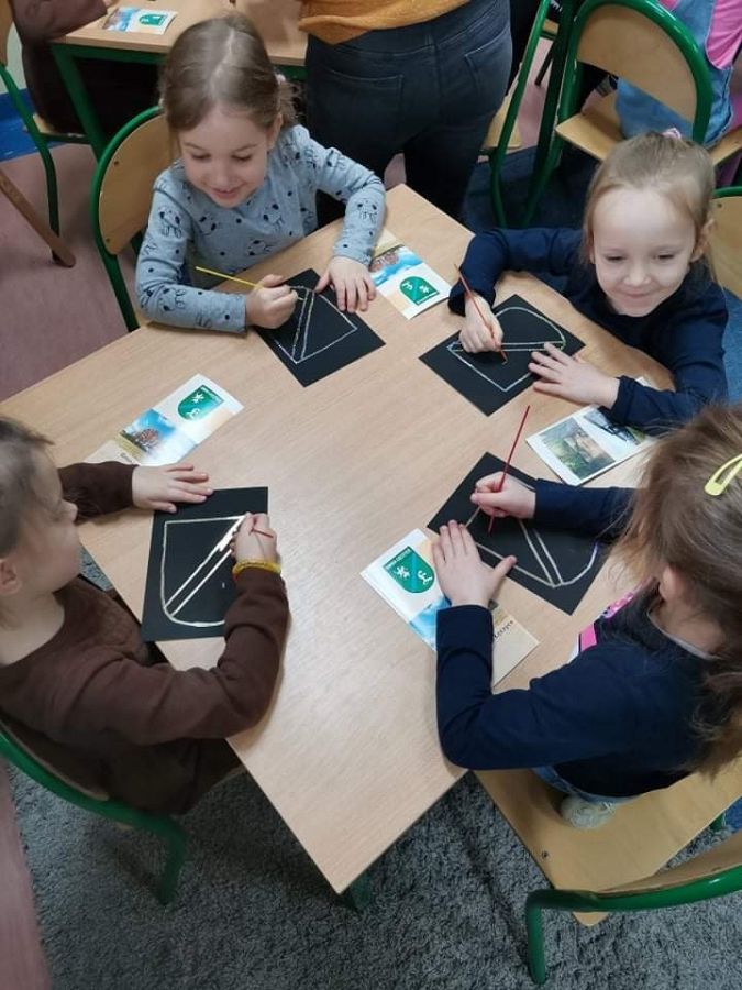 Kontynuując realizację lutowego modułu projektu "Magiczna moc bajek", przedszkolaki z grupy 0 c odwiedziły po raz kolejny bibliotekę. Dzisiaj poznały historię Łęczyc, symbolikę herbu gminy Łęczyce, dowiedziały się, jakie zabytki znajdują się w najbliższej okolicy. Swoją wiedzę przelały na papier, szkicując herb oraz poznane zabytki. Po zakończonym spotkaniu, korzystając z ładnej pogody, przedszkolaki zwiedziły najbliższą okolicę, docierając nawet do zabytkowego młyna!