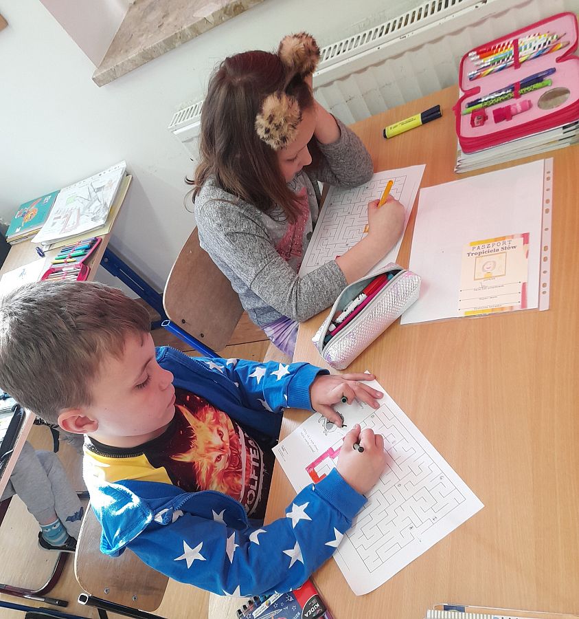 W marcowym module projektu „Czytanie ma moc” uczniowie klasy 1 b wytropili i wpisali do czytelniczych paszportów kolejne ważna słowa:, min. kynologia, psi superbohaterowie.