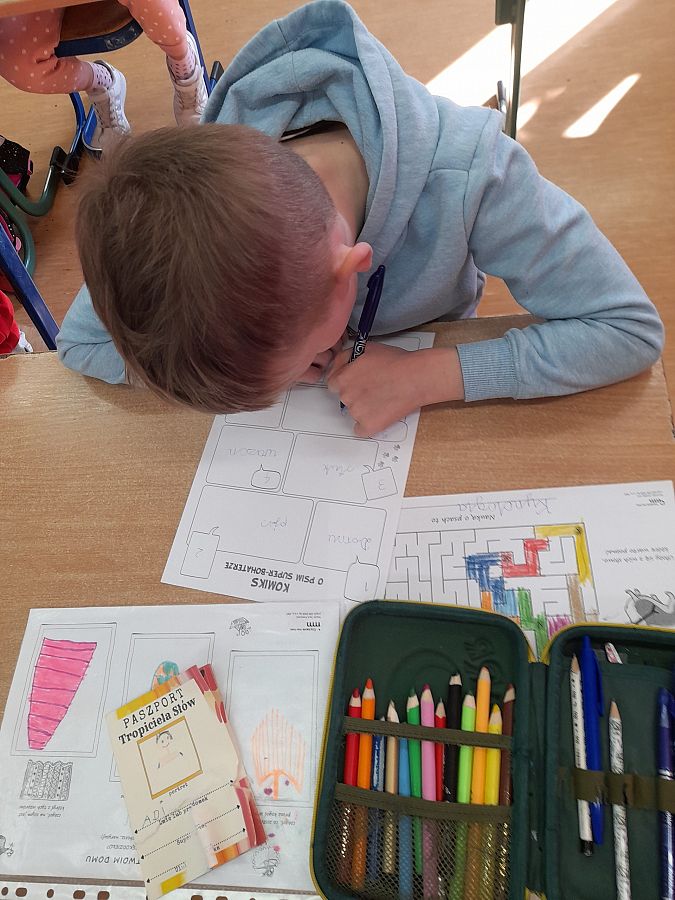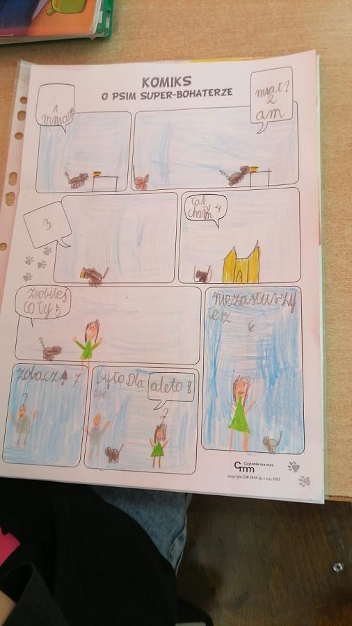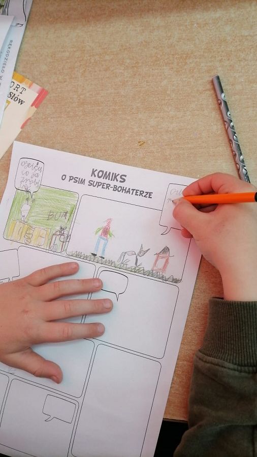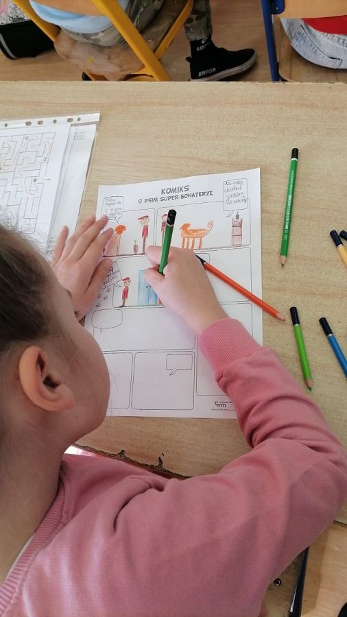 Poznając „Opowieści o psach, które ratowały świat. 31 wiernych zwierzaków, które odcisnęły ślady swoich łap w historii”, dzieci uczestniczyły w wielu ciekawych literackich przygodach. Tworzyły komiksy, poznały, a nawet pisały alfabet Braille"a, naśladowały rasy psów, a na koniec ułożyły HYMN NA CZEŚĆ PSÓW BOHATERÓW. BRAWO DZIECIAKI !.
