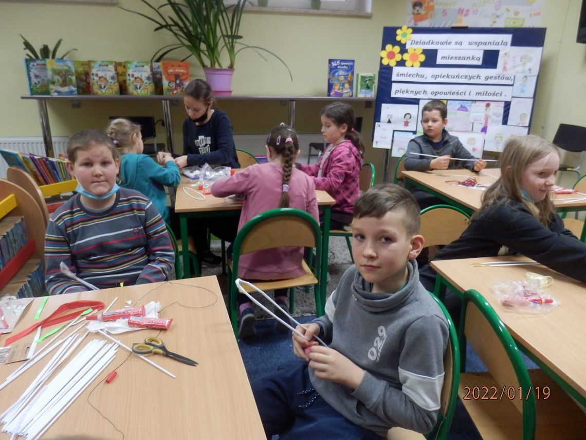 Już niedługo Dzień Babci i Dziadka! Najlepszym prezentem z tej okazji będzie taki, który jest własnoręcznie wykonany. Takie właśnie prezenty, w dniu dzisiejszym wykonali dla swoich Dziadków uczniowie klasy 3 a. W bibliotece, pod fachowym kierunkiem pani Alicji, upletli z papierowej wikliny serduszka. Rękodzieła, starannie wykonane i pięknie ozdobione, z pewnością będą miłym podarunkiem dla Dziadków.