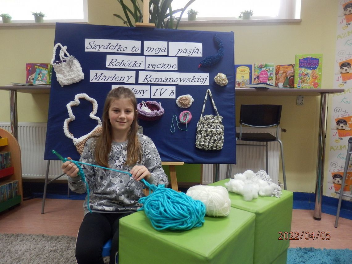 „Szydełko to moja pasja”. Warsztaty szydełkowania przeprowadzone przez Marlenę z klasy IV b