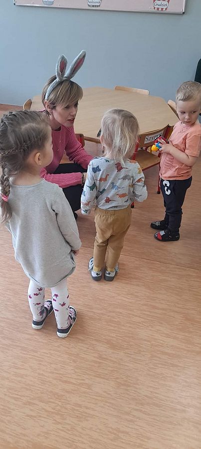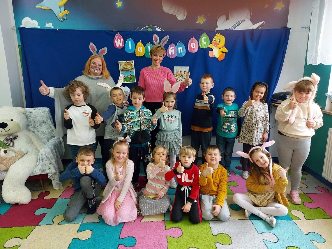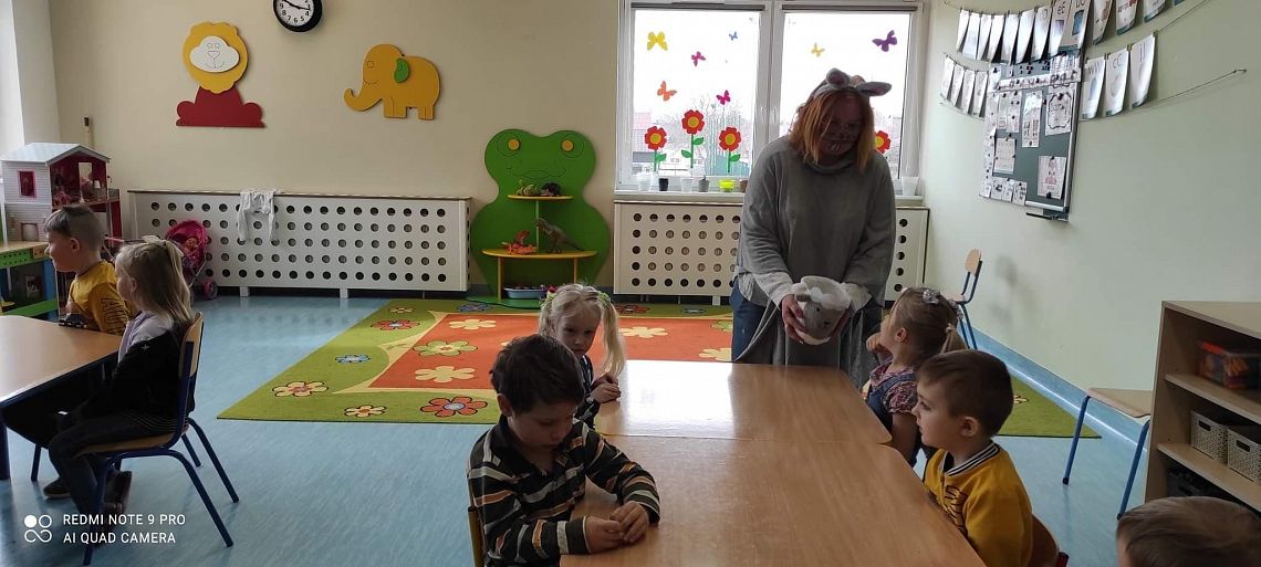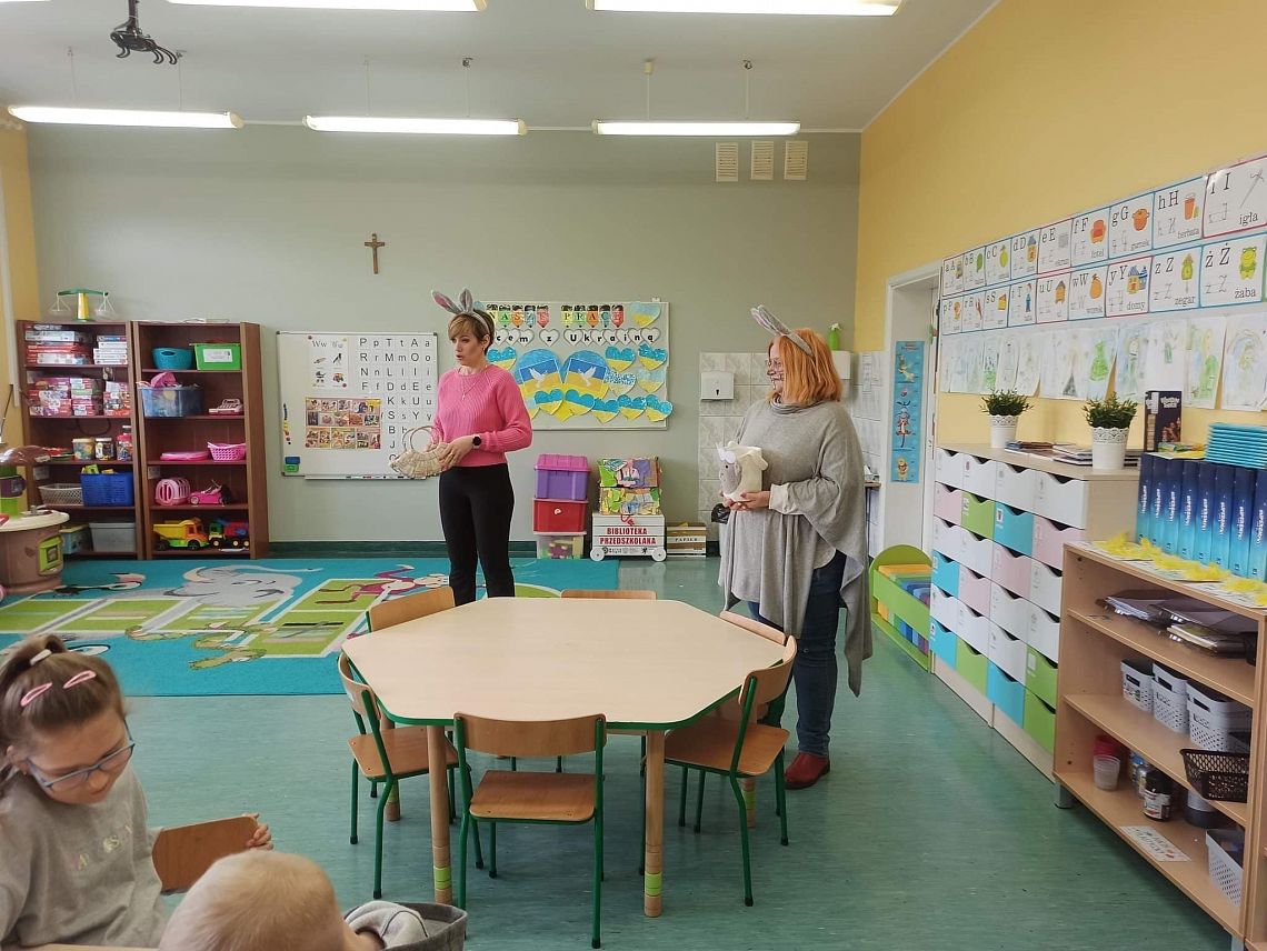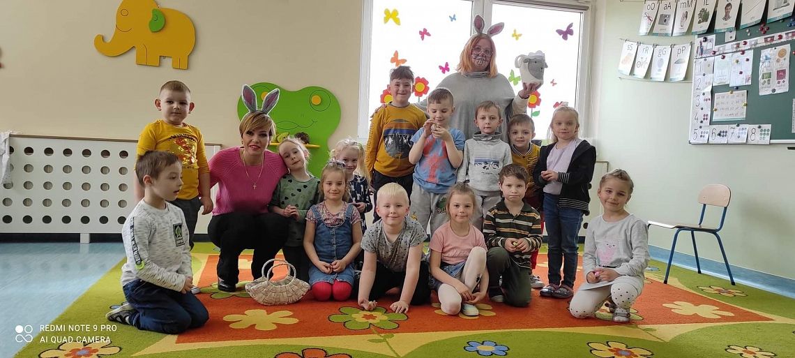Dziś na holu naszej szkoły, a przede wszystkim w przedszkolu można było spotkać wielkanocne zajączki. To taka wielkanocna niespodzianka dla maluchów. Dzieci były zaskoczone wizytą i zadowolone ... zające obdarowywały wszystkich czekoladowymi jajkami życząc WESOŁYCH ŚWIĄT