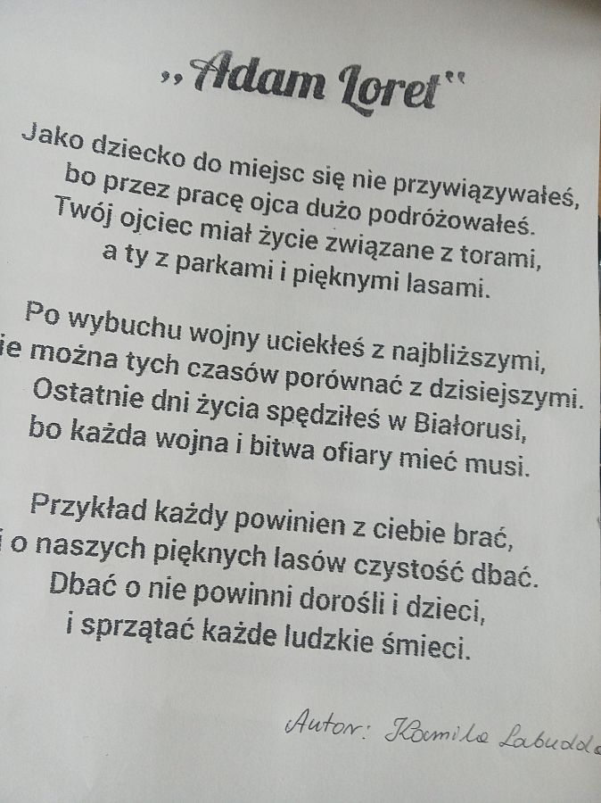 Dnia 3 czerwca obchodziliśmy w naszej szkole Dzień Patrona szkoły. Aby uczcić ten dzień i upamiętnić postać Adama Loreta Samorząd Uczniowski zorganizował konkurs prac plastycznych dla klas 1-3 pt.: „Adam Loret malowany oczami dzieci”. Z prac utworzono galerię, która zdobiła hol dolny szkoły w dniu święta patrona. Samorząd Uczniowski przeprowadził również „Konkurs wiedzy o Adamie Lorecie” dla starszych uczniów naszej szkoły oraz konkurs „Adam Loret wierszem malowany”. Ponadto Samorząd Uczniowski przygotował uroczysty apel w Dniu Patrona.