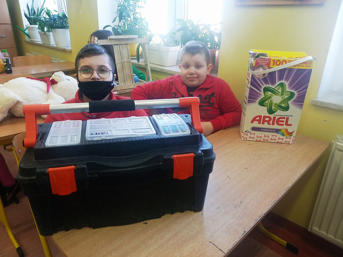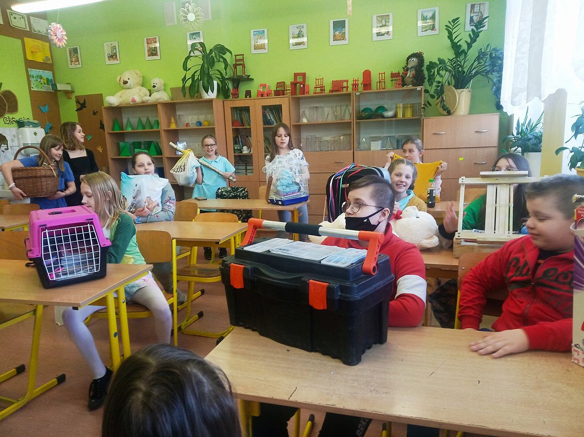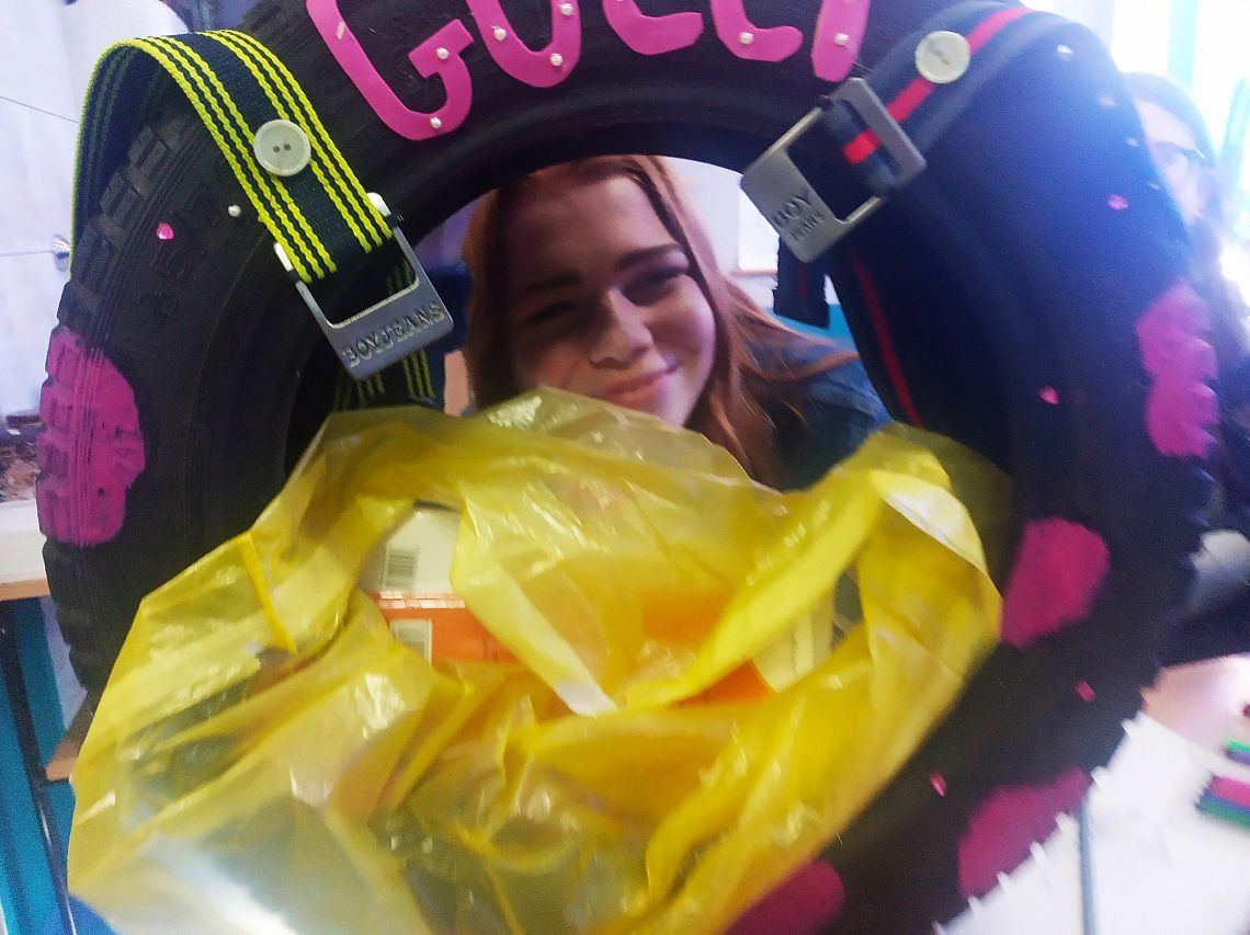 Również tego dnia uczniowie mogli spakować swoje książki i przybory szkolne w ciekawy sposób. Wykazali się ogromną pomysłowością pakując zeszyty i książki w koszyki, torby turystyczne, klatki dla zwierząt. Niektórzy spakowali swoje rzeczy w kosiarki lub przywieźli je w taczkach. Po trudach komisja wyłoniła zwyciężczynię. Została nią Alicja Warych z klasy VIIb, która kreatywnie skopiowała torebkę od Gucciego J. Wyróżnienia ufundowane przez Gminną Bibliotekę Publiczna uzyskali: Zuzanna Bogusz, Filip Szymikowski oraz Nikodem Labuda.