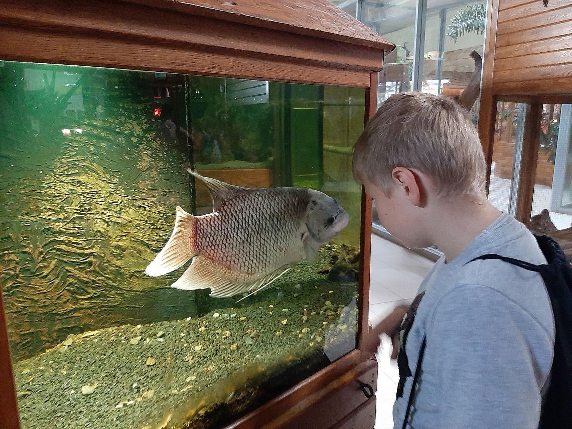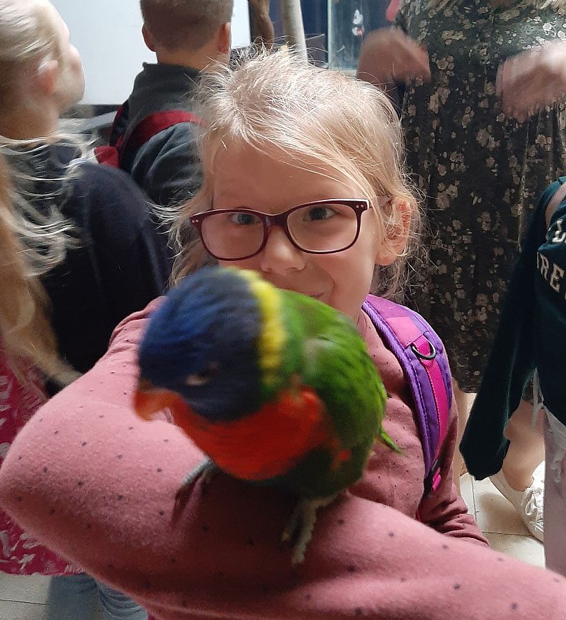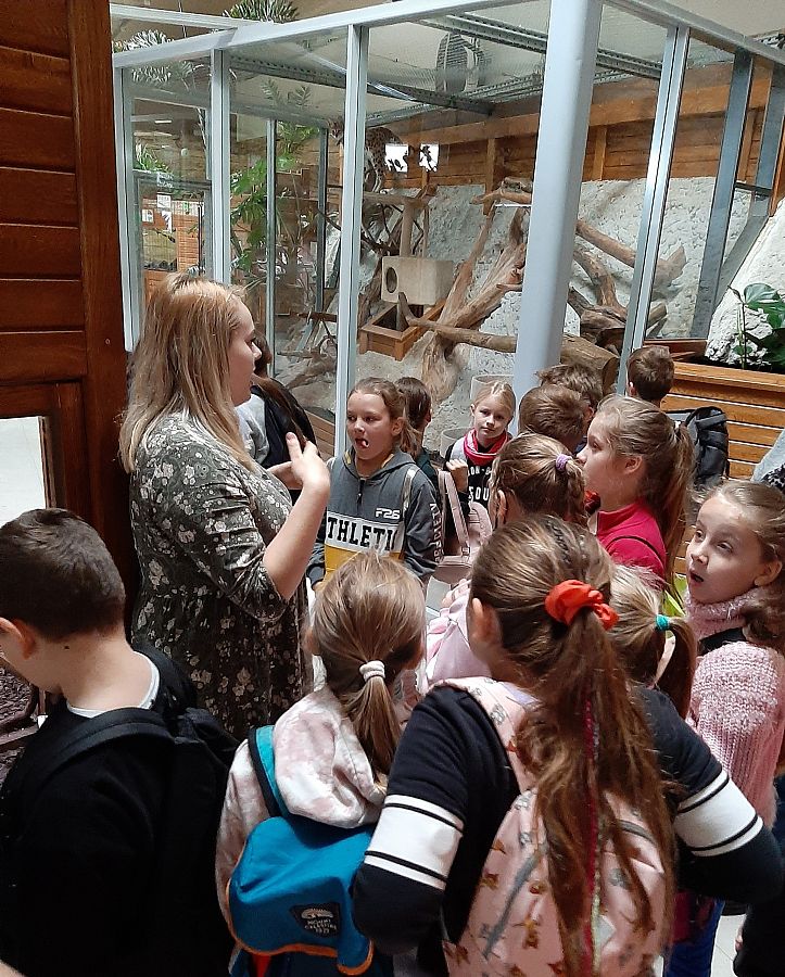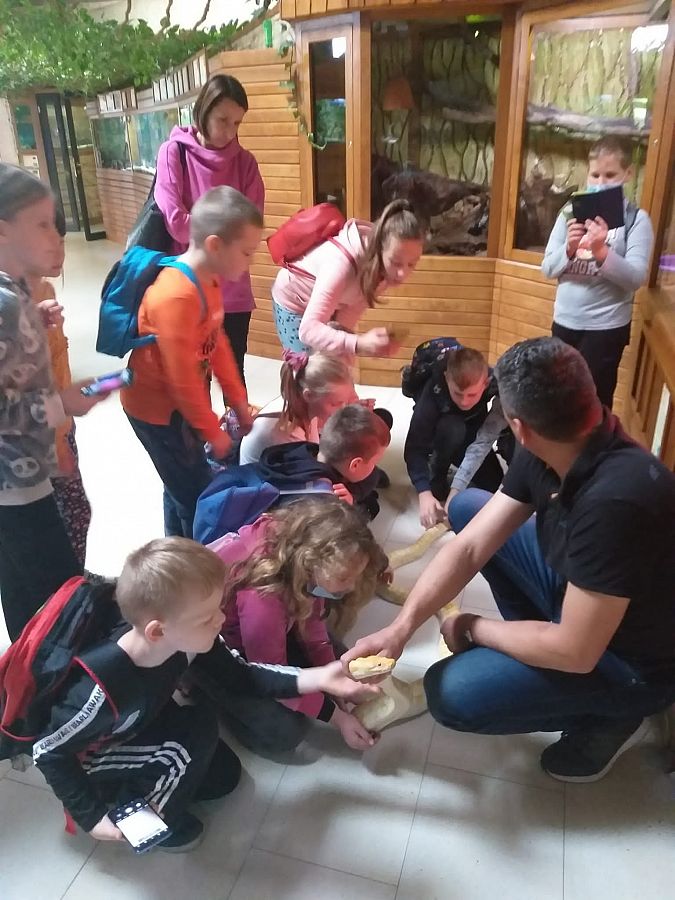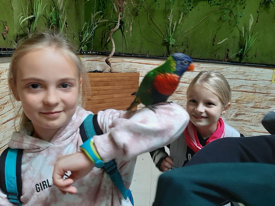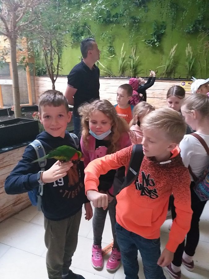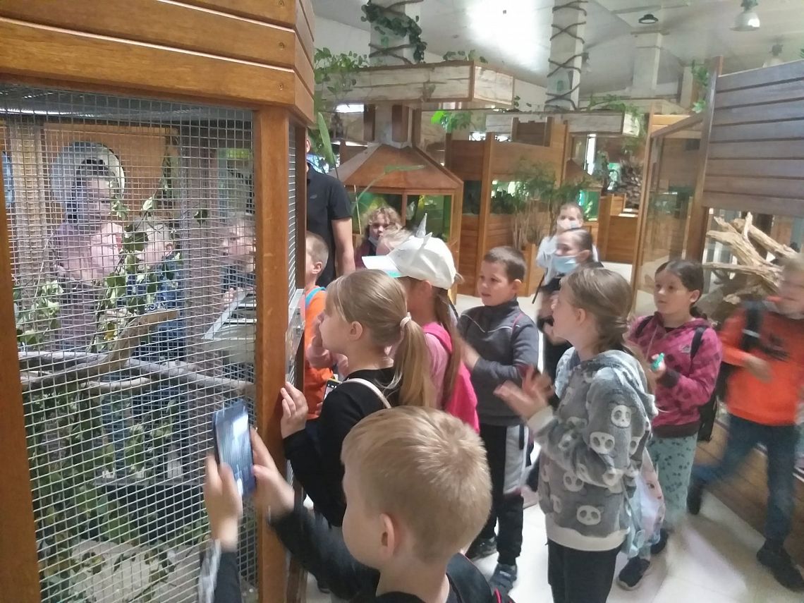 Miejsce, które odwiedziły klasy IIIA i IIIB wniosło z pewnością  odrobinę egzotyki w szkolną codzienność. Karmienie papug, głaskanie żółwi, kameleona a nawet węża to atrakcje jakich doświadczyli nasi uczniowie.  Dzięki opiece przewodnika  dzieci usłyszały wiele ciekawostek na temat oglądanych okazów. Obejrzały film o rekinach w kinie 3D. Serce jednak skradły im urocze króliki, które każdy chciał  zabrać ze sobą do domu...Na pamiątkę pozostaną setki zdjęć wykonanych przez naszych uczniów.