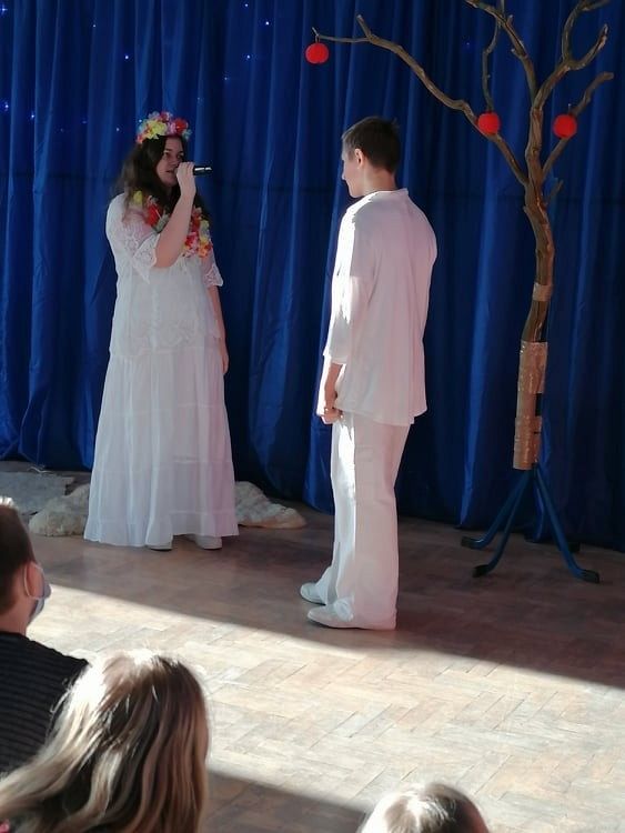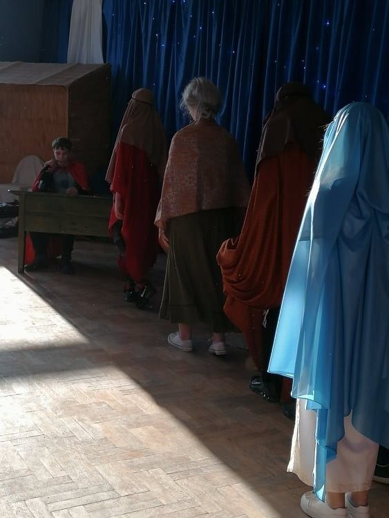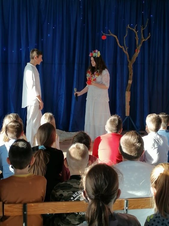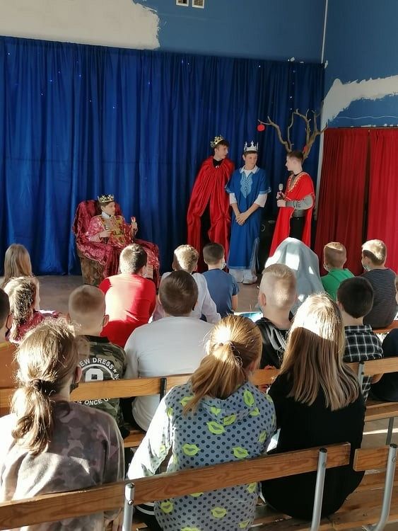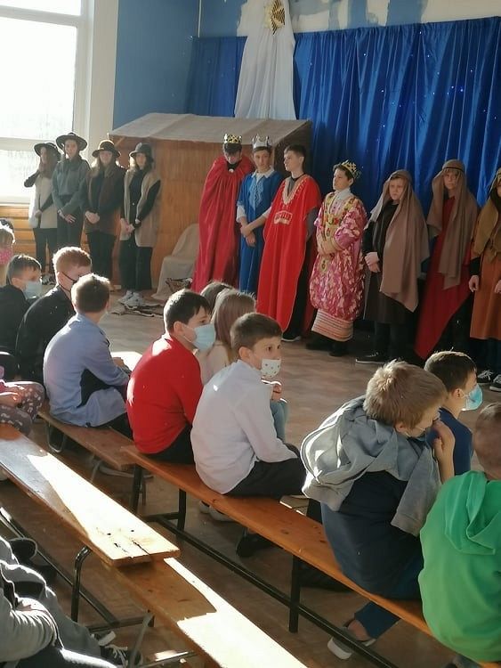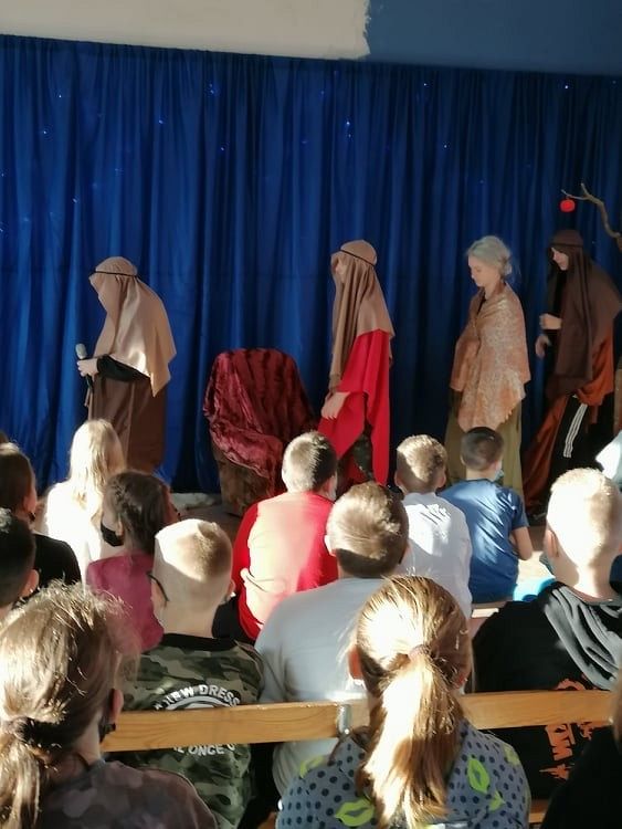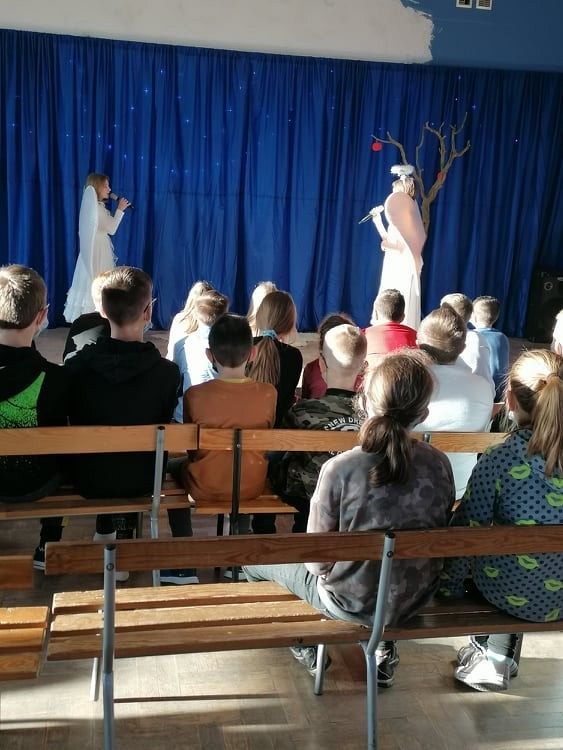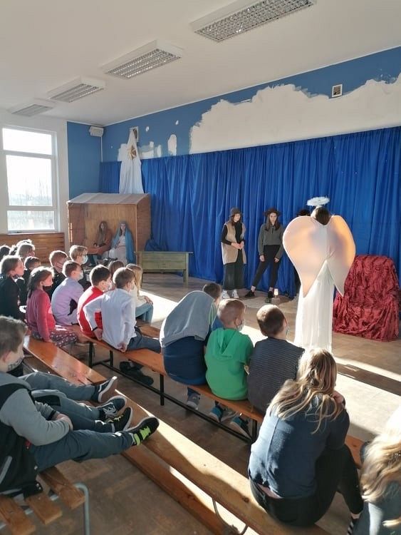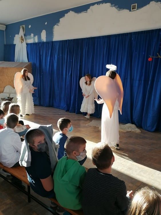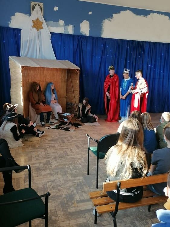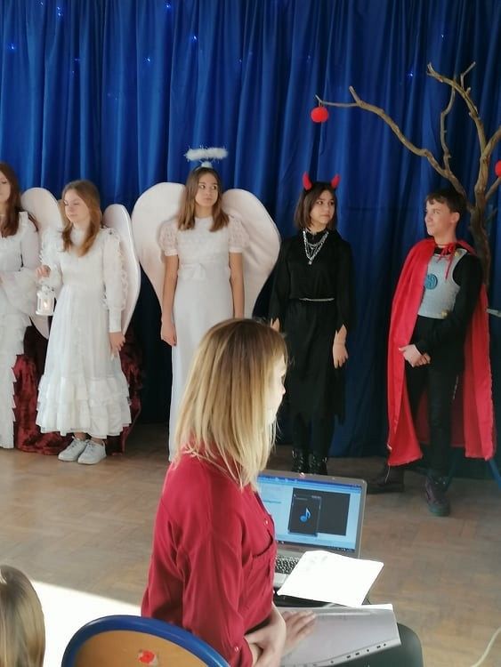 Jasełka przygotowali uczniowie klasy 8c z nauczycielem Ewą K. oraz chór szkolny pod kierunkiem p. Katarzyny H.
