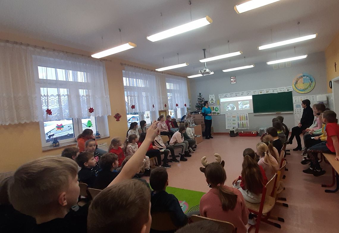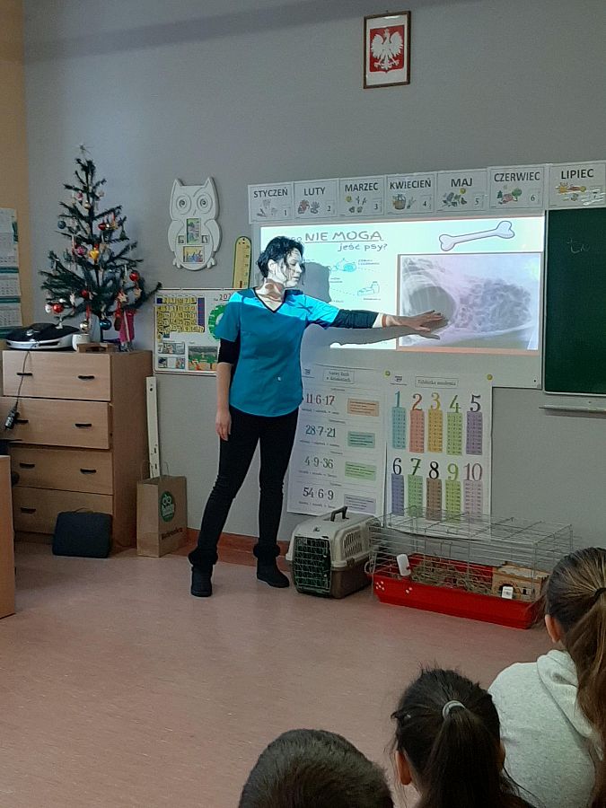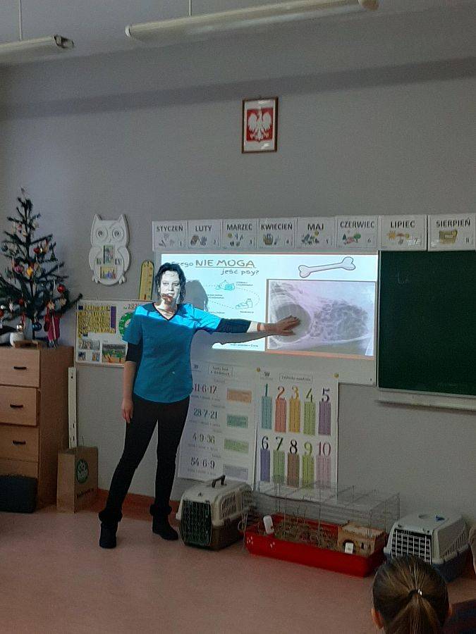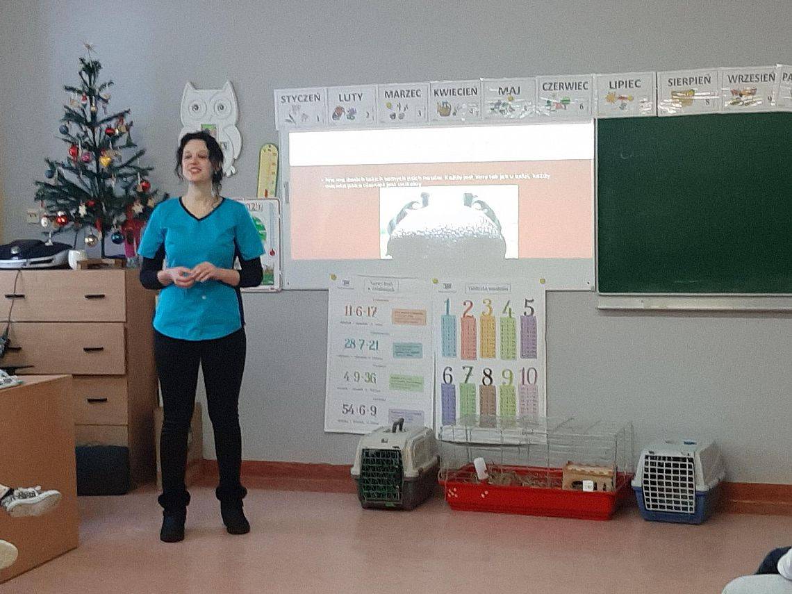 Dzieci uwielbiają zwierzęta. W minionym tygodniu klasy trzecie zajmowały się tą właśnie tematyką. Podsumowaniem nauki było spotkanie z lekarzem weterynarii. Pani Kasia przekazała uczniom wiele ważnych i ciekawych informacji na temat zwierząt domowych. Opowiedziała też o swojej pracy, wzbogacając wszystko licznymi zdjęciami. Atrakcją spotkania były zwierzaki : kot rasy brytyjskiej, królik i świnka morska. Trzecioklasiści aktywnie uczestniczyli w spotkaniu zadając wiele pytań. Dziękujemy za ciekawe i pouczające spotkanie.
