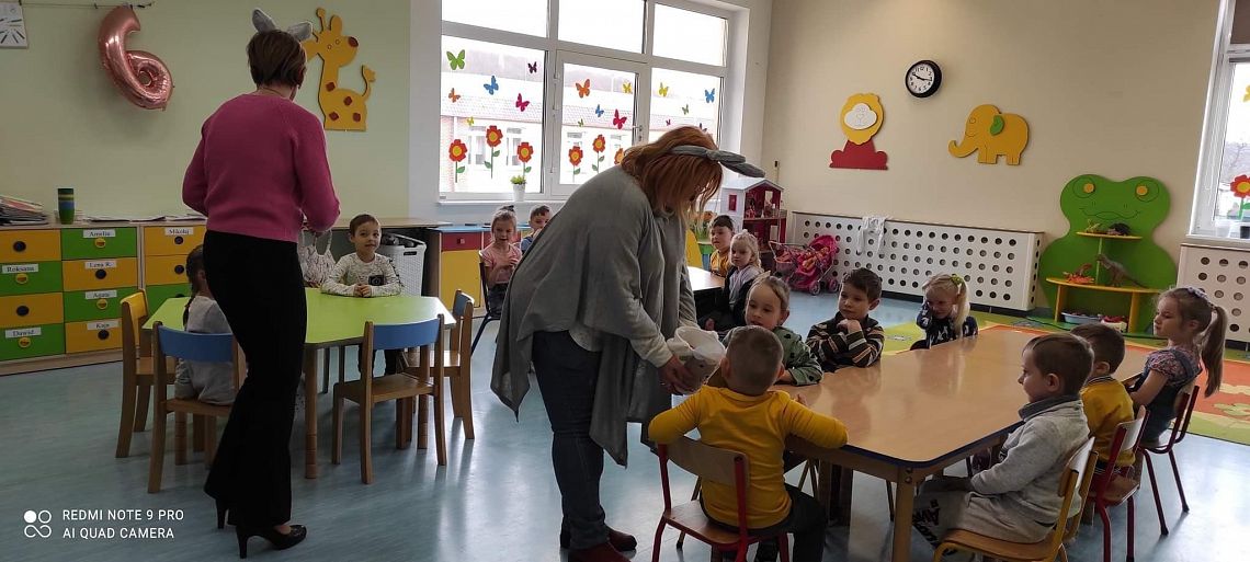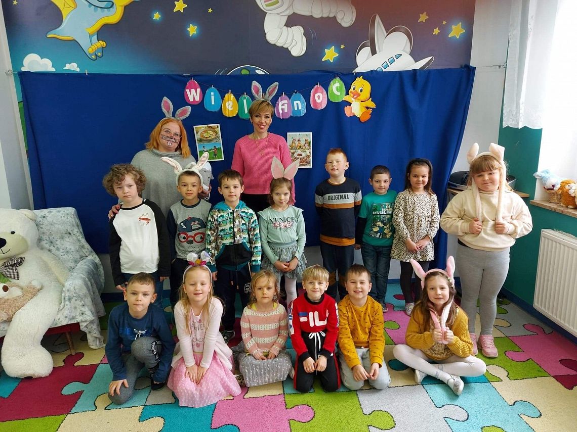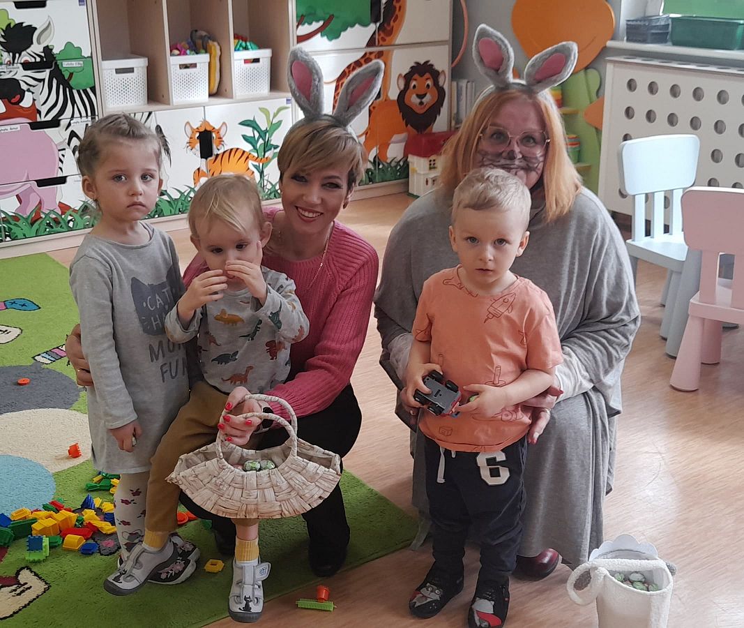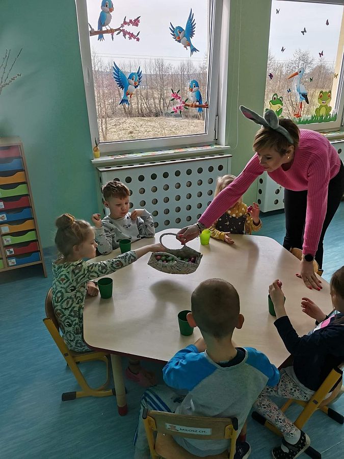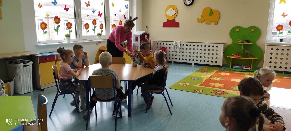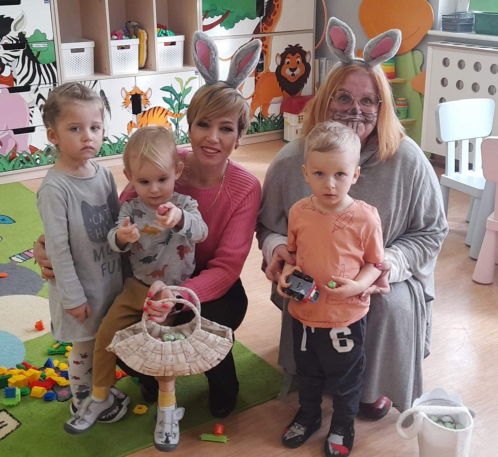 Dziś na holu naszej szkoły, a przede wszystkim w przedszkolu można było spotkać wielkanocne zajączki. To taka wielkanocna niespodzianka dla maluchów. Dzieci były zaskoczone wizytą i zadowolone ... zające obdarowywały wszystkich czekoladowymi jajkami życząc WESOŁYCH ŚWIĄT