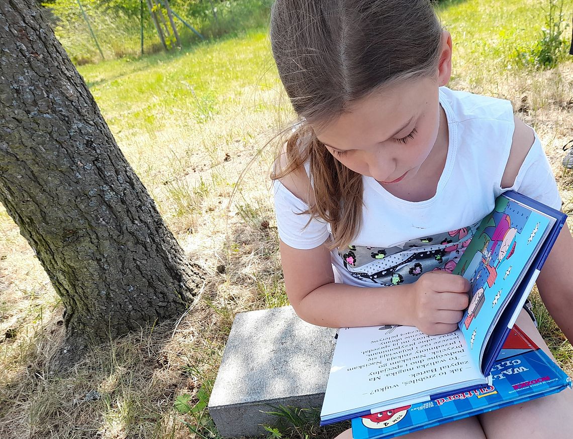 Do pobicia rekordu czytania swoją cegiełkę dołożyła również 3a, która postawiła w tym dniu na plenerowe czytanie. Zielony plac koło szkoły pozwolił im na oddanie się przyjemnej lekturze oraz integrujące zabawy kreatywno - ruchowe.