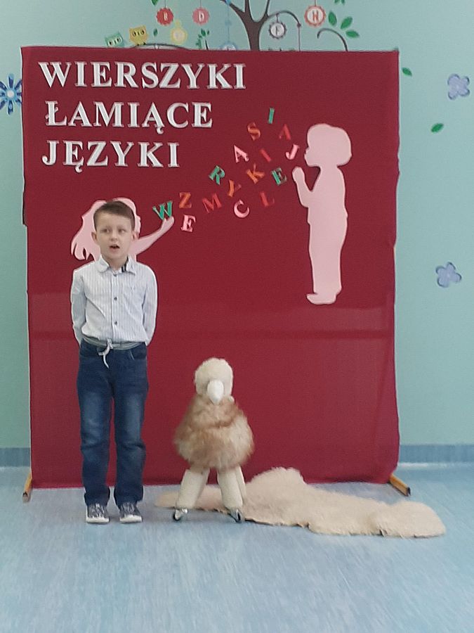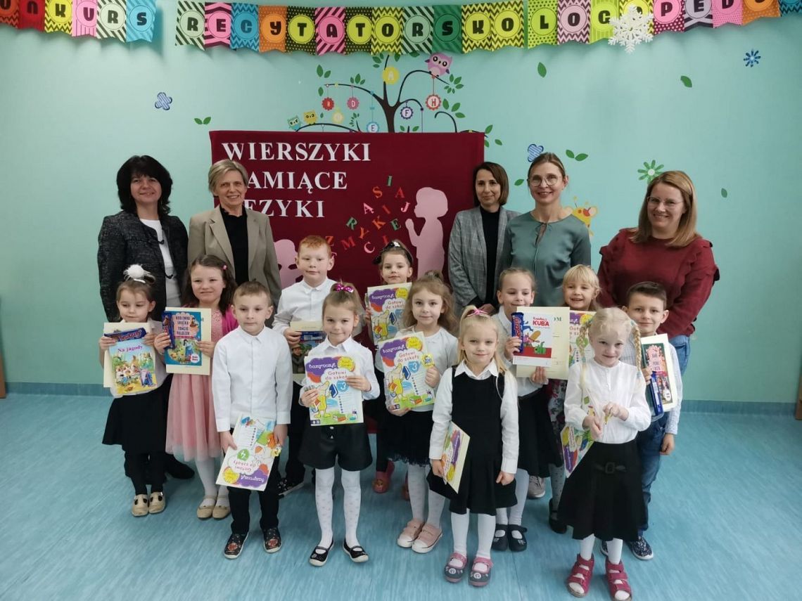 Dnia 12.01.2022 roku w Zespole Szkolno-Przedszkolnym został przeprowadzony Konkurs Recytatorsko-Logopedyczny pt: „ Wierszyki łamiące języki”. Konkurs był skierowany do grupy przedszkolaków 5-6 letnich. W konkursie uczestniczyło 12 przedszkolaków. Dzieci z dużym zaangażowaniem, starannością, doskonałym wyrazem artystycznym zaprezentowały wierszyki.