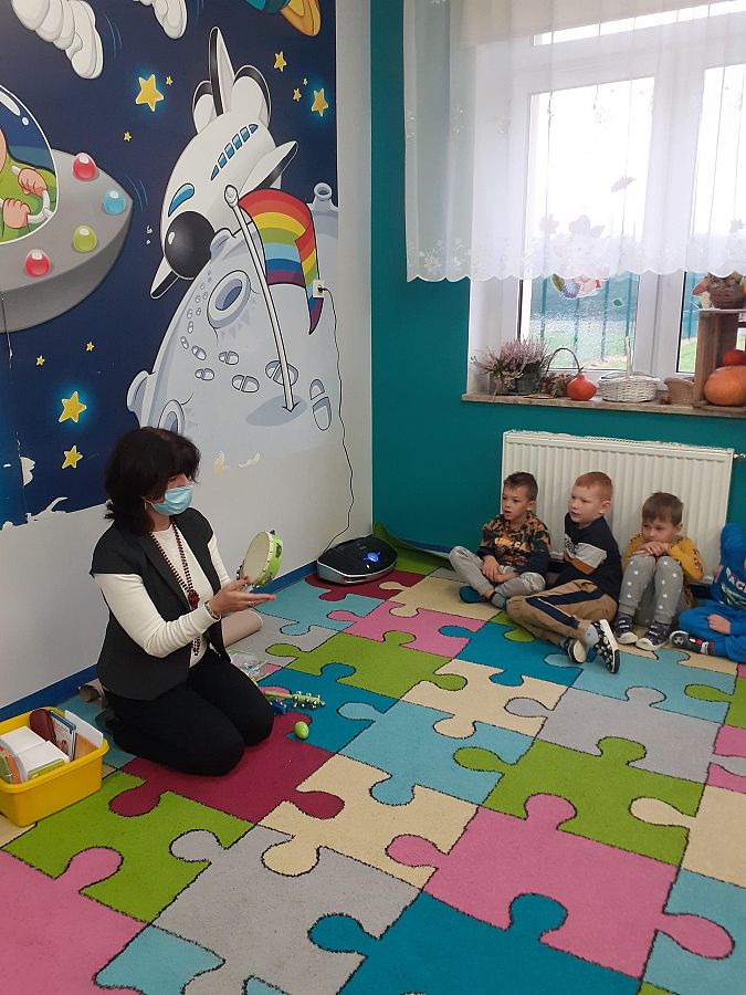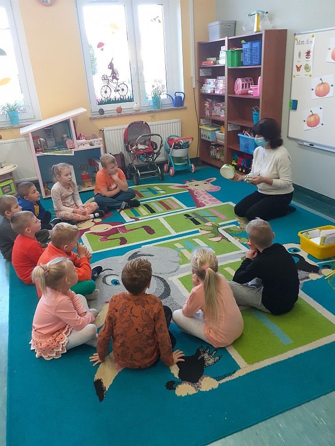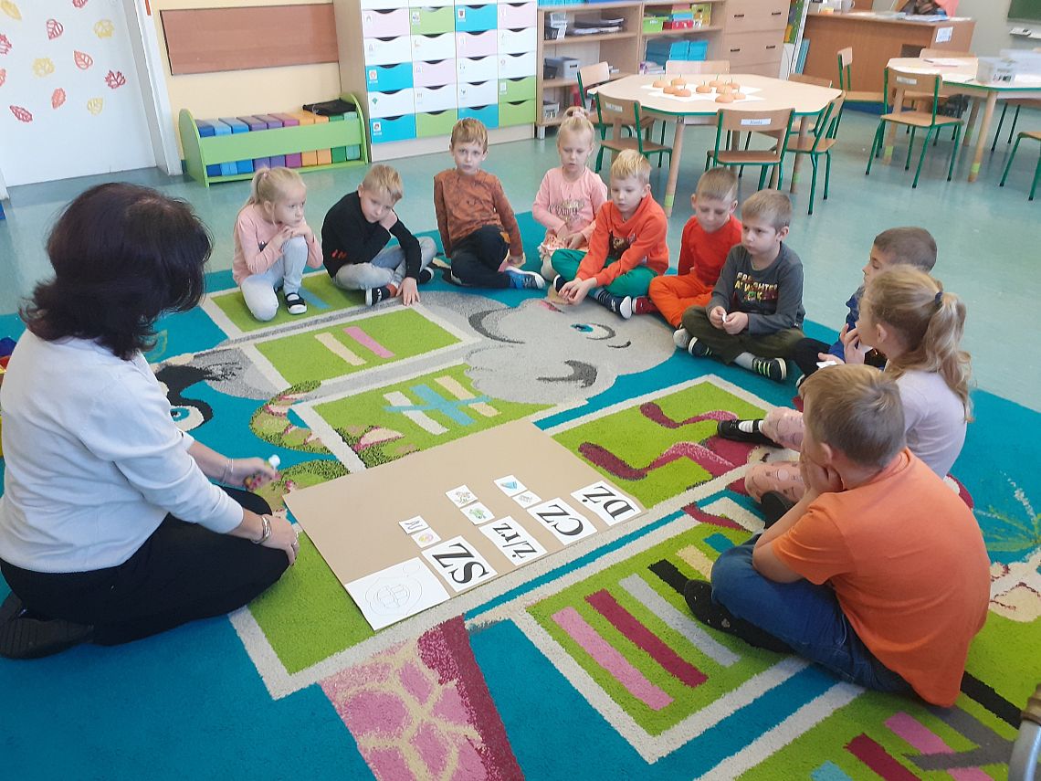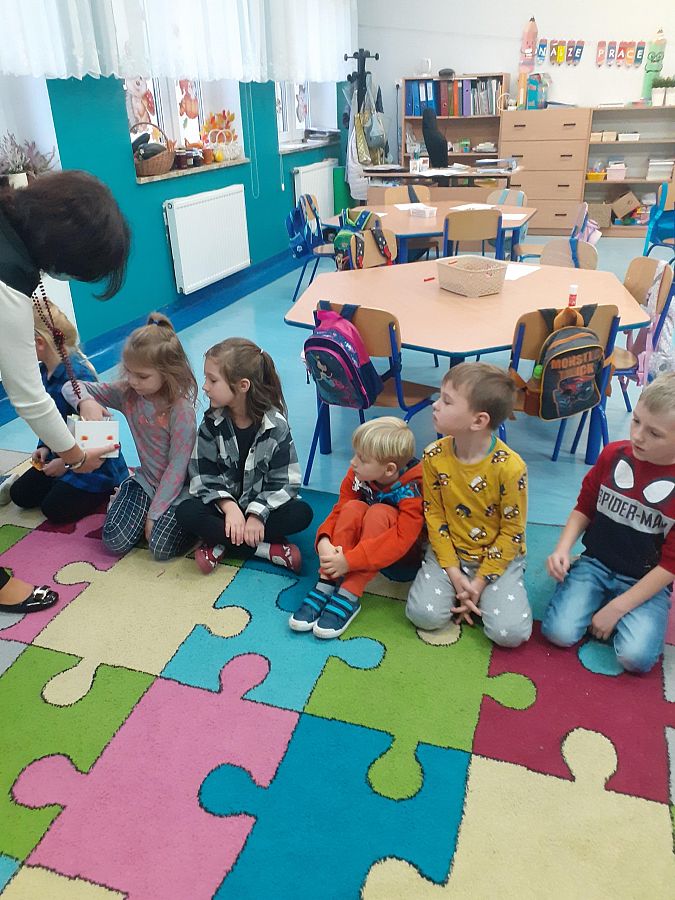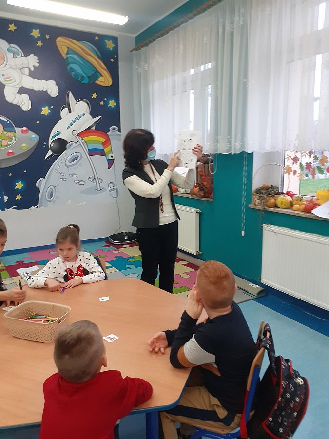 Dnia 27.10.2021 roku w grupie O „b” i dnia 29.10.2021 roku w grupie O „a” zostały przeprowadzone zajęcia logopedyczne, których celem było usprawnienie analizatora słuchowego . Na zajęciach dzieci z chęcią wykonywały liczne ćwiczenia słuchowe i ćwiczenia usprawniające narządy artykulacyjne np: ćwiczenia oddechowe, ćwiczenia: „ Buźki logopedyczne”, rozpoznawanie dźwięków instrumentów muzycznych, zabawa ruchowa przy dźwiękach muzyki, określanie na materiale obrazkowym występowania głosek szeregu szumiącego i głosek szeregu syczącego itp. Przedszkolaki na zakończenie naszego spotkania otrzymały słodki upominek.