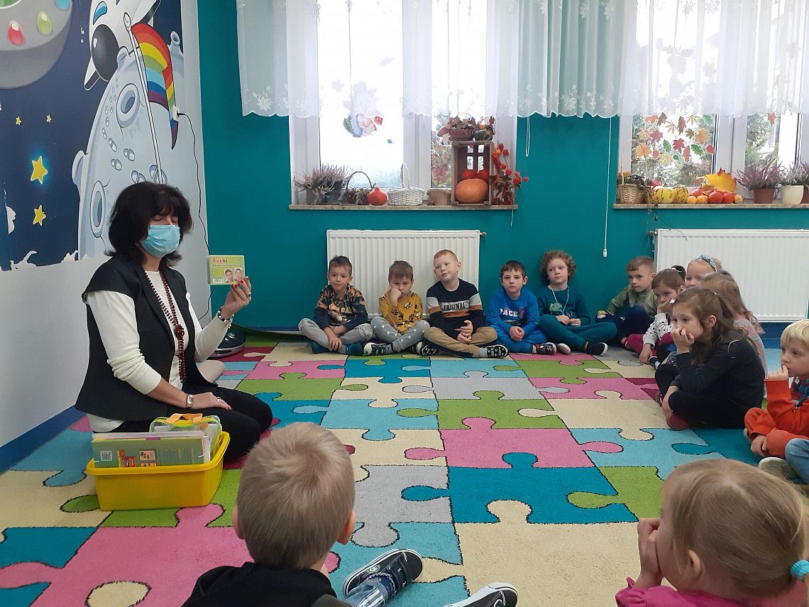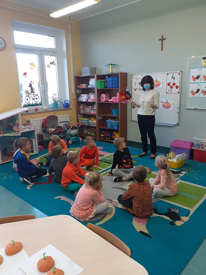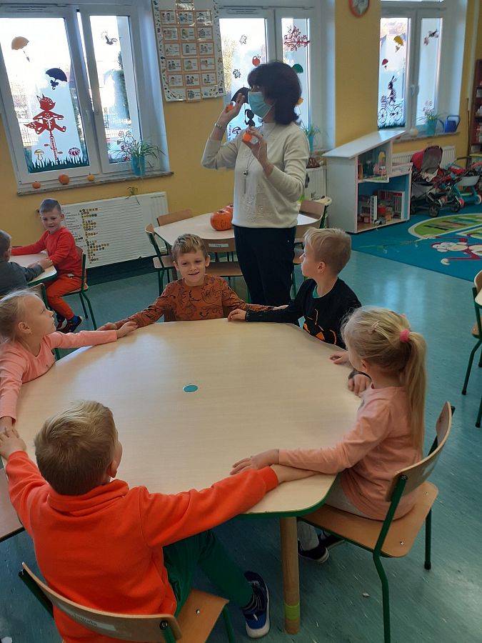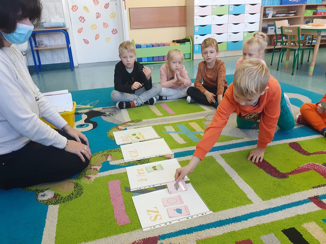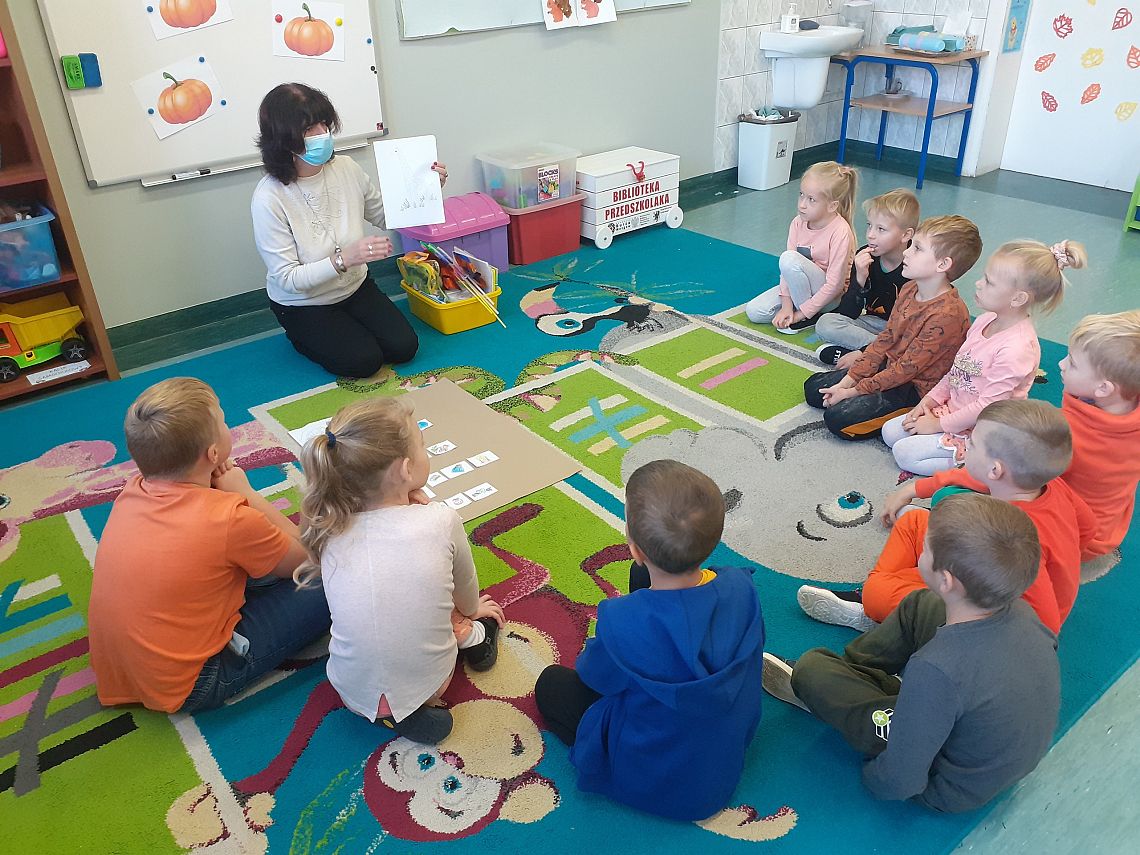 Dnia 27.10.2021 roku w grupie O „b” i dnia 29.10.2021 roku w grupie O „a” zostały przeprowadzone zajęcia logopedyczne, których celem było usprawnienie analizatora słuchowego . Na zajęciach dzieci z chęcią wykonywały liczne ćwiczenia słuchowe i ćwiczenia usprawniające narządy artykulacyjne np: ćwiczenia oddechowe, ćwiczenia: „ Buźki logopedyczne”, rozpoznawanie dźwięków instrumentów muzycznych, zabawa ruchowa przy dźwiękach muzyki, określanie na materiale obrazkowym występowania głosek szeregu szumiącego i głosek szeregu syczącego itp. Przedszkolaki na zakończenie naszego spotkania otrzymały słodki upominek.