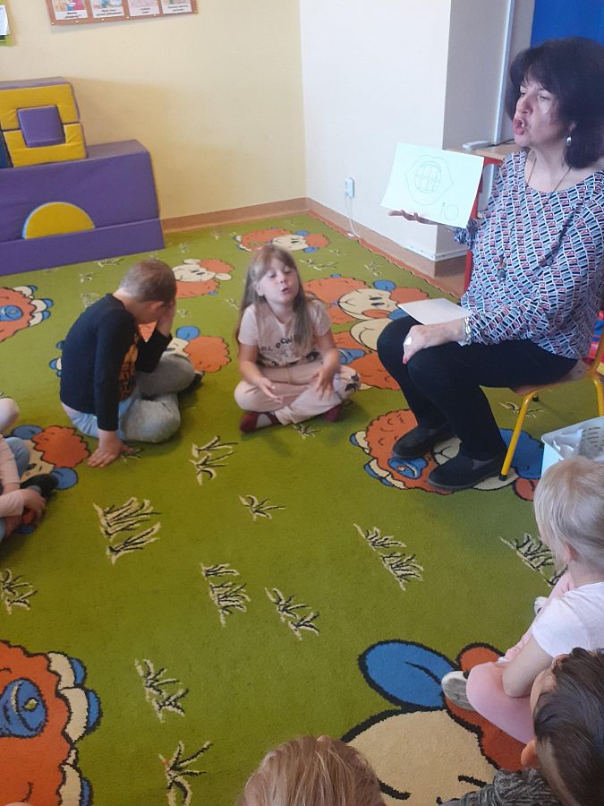 W Zespole Szkolno – Przedszkolnym – Filia Brzeźno Lęborskie dnia 19.05.2022 z przedszkolakami grupy O „a” zostało przeprowadzone zajęcie logopedyczne, na którym dzieci wykonywały zabawy, ćwiczenia usprawniające sprawność aparatu mowy oraz wysłuchały opowiadanie pt: „Żyrafa u Jubilera” rozwijające wyobraźnię i bogacące słownictwo. Na zakończenie naszego spotkania dzieci otrzymały małą słodkość.