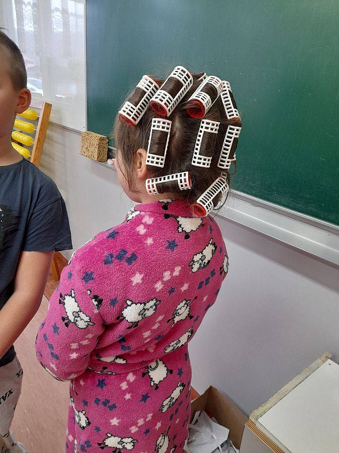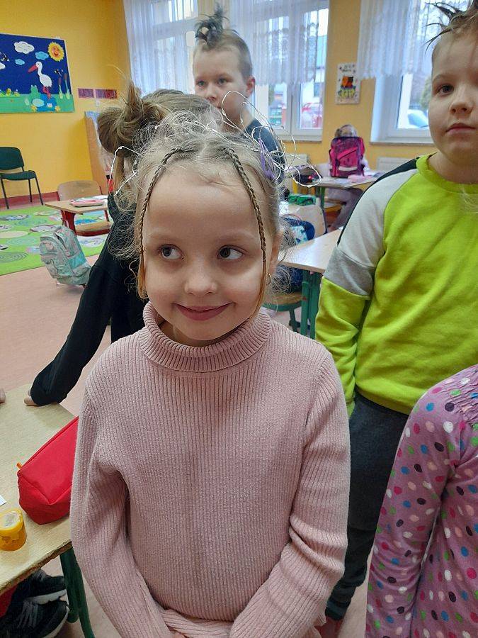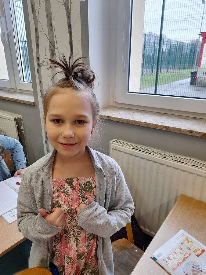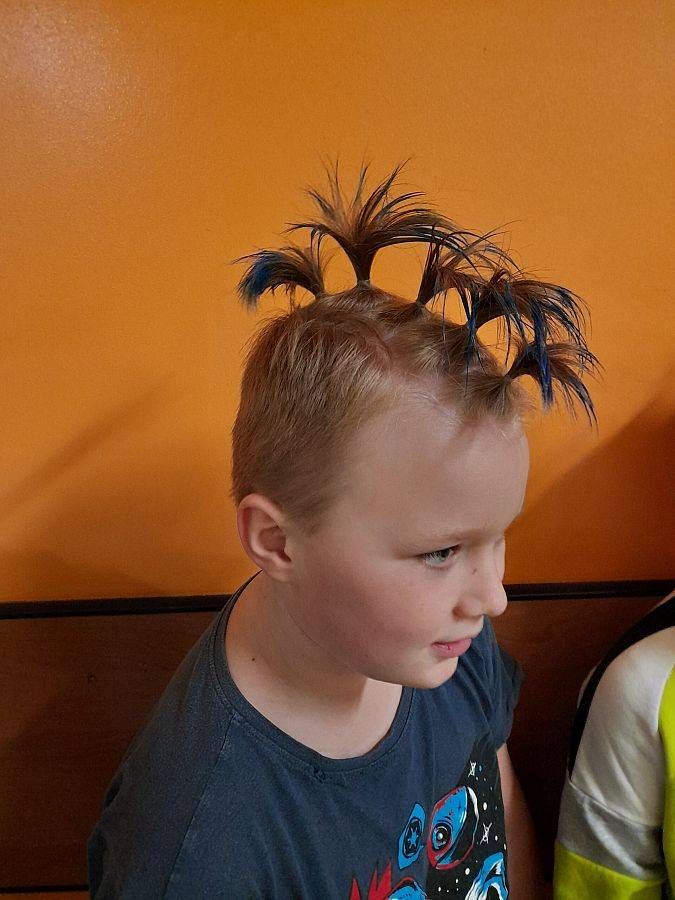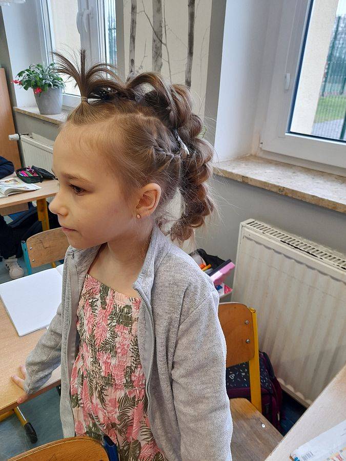 Pomysłów na zwariowaną fryzurę nie brakowało. Wśród chłopców królowały irokezy i kolorowe pasemka, u dziewczynek można było zauważyć loki, koki, a nawet peruki. Niejedna młoda dama poświęciła dzisiejszy ranek na modelowanie włosów, nawijanie na wałki oraz upięcia z użyciem różnych fryzjerskich akcesoriów.