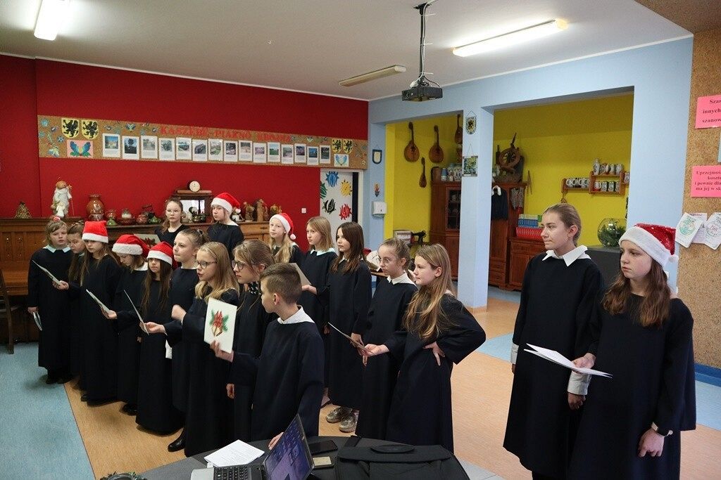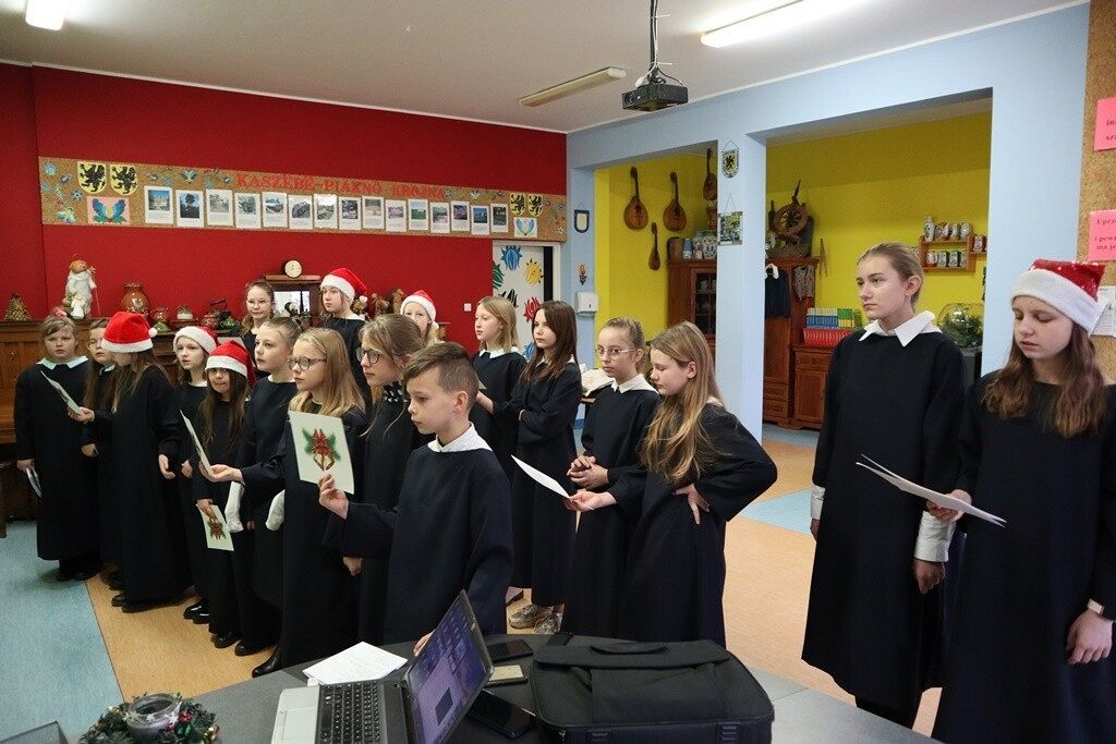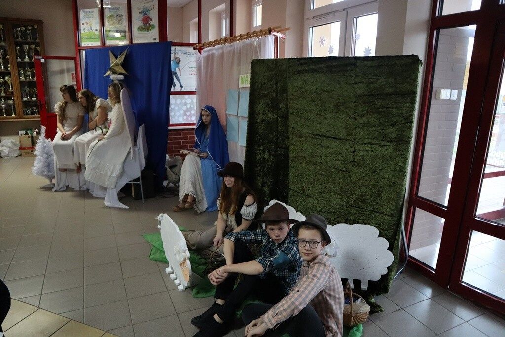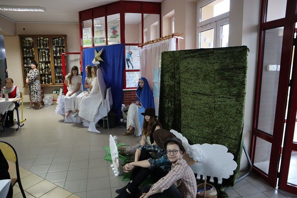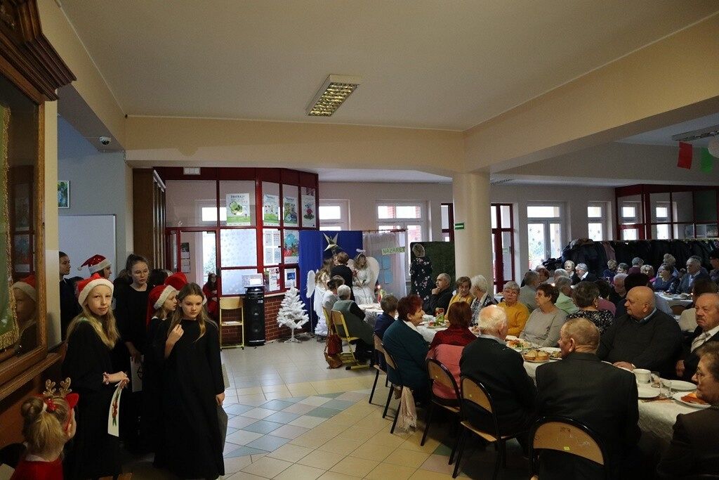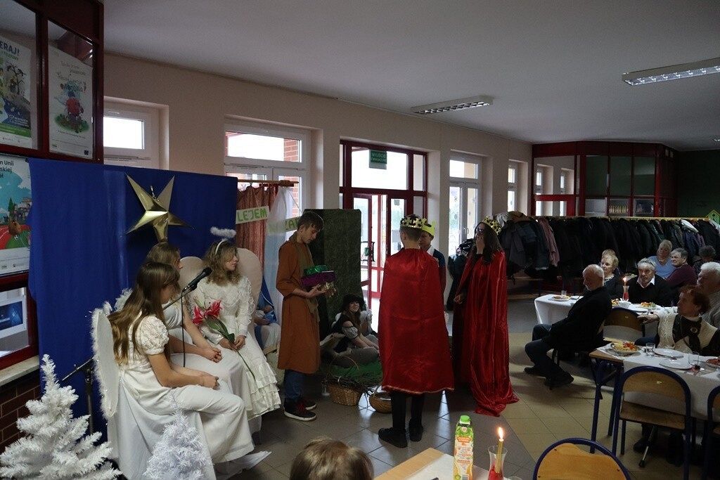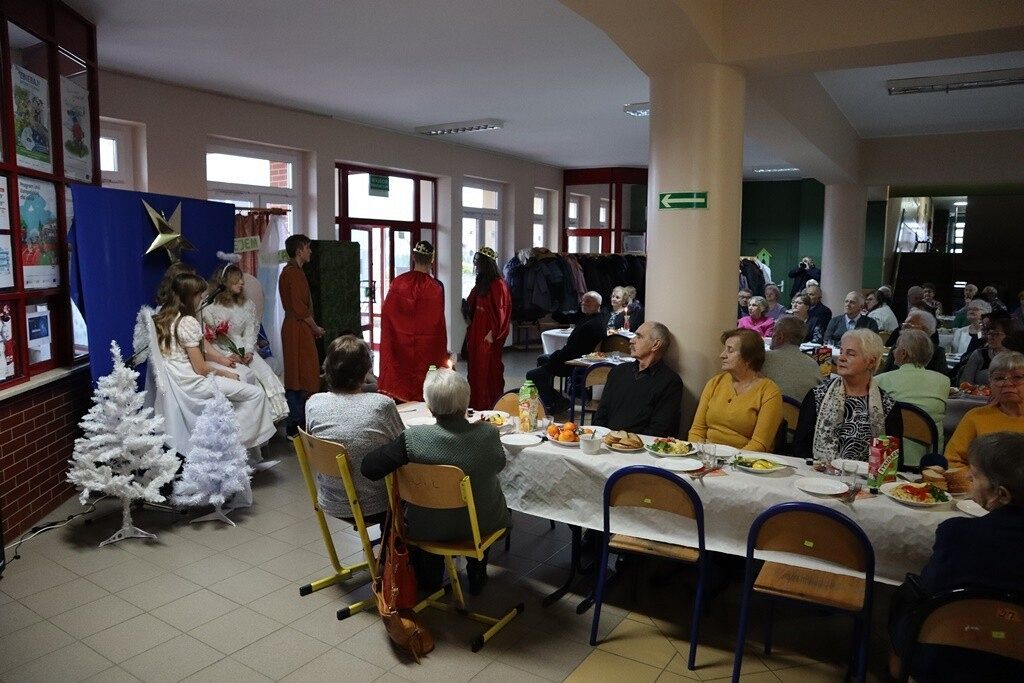 W sobotę, 3 grudnia odbyło się w naszej szkole spotkanie opłatkowe naszych drogich seniorów z gminy Łęczyce. Po krótkim powitaniu goście mieli okazję obejrzeć premierowy występ uczniów klas ósmych, którzy przekrojowo przedstawili historię narodzin Jezusa począwszy od zwiastowania Maryi a skończywszy na hołdzie oddanym przez trzech mędrców ze Wschodu. Uczniowie zostali przygotowani przez Panią Marię Dawidowską, nauczycielkę katechezy, która wykonała również dekoracje. Towarzyszyła jej Pani Joanna Magnor- Kozłowska, która z kolei zadbała o przedstawienie ze strony akustyczno- technicznej. Po jasełkach wystąpił jeszcze chór szkolny Pani Katarzyny Jarmoluk. Artyści spotkali się z dużym aplauzem ze strony widzów.