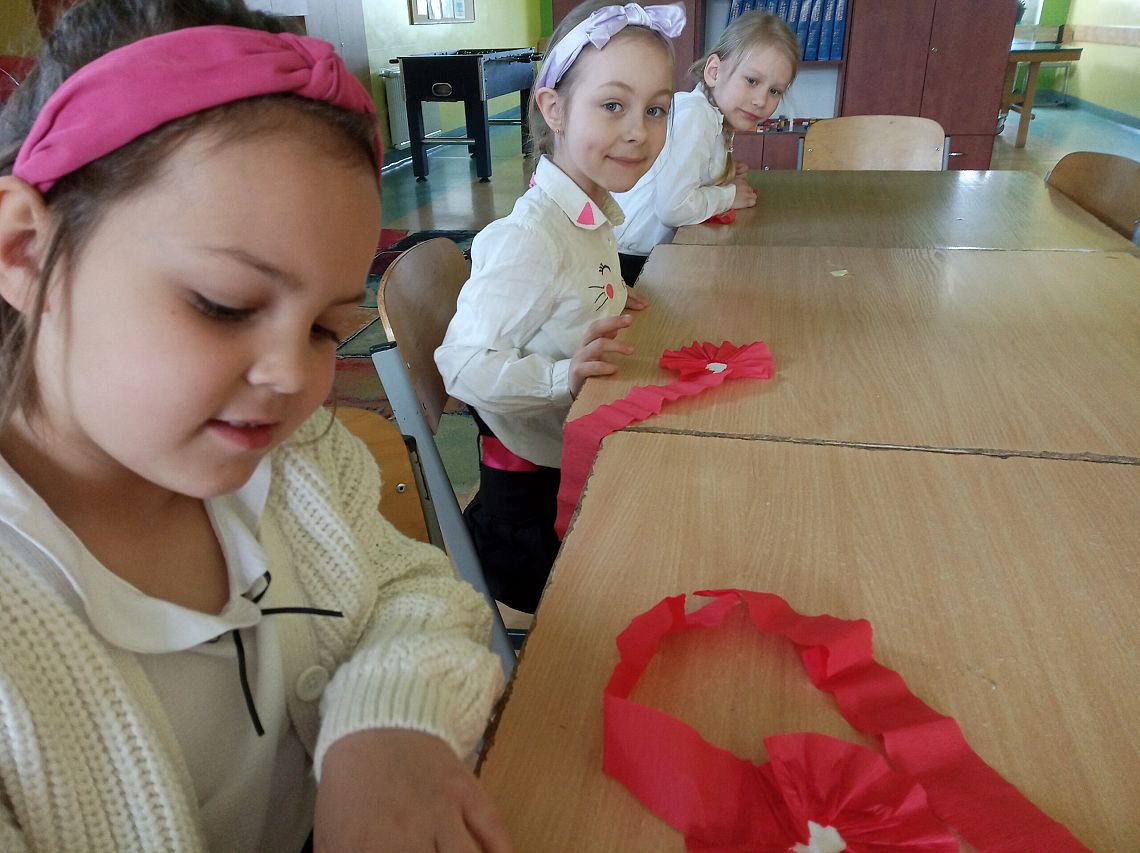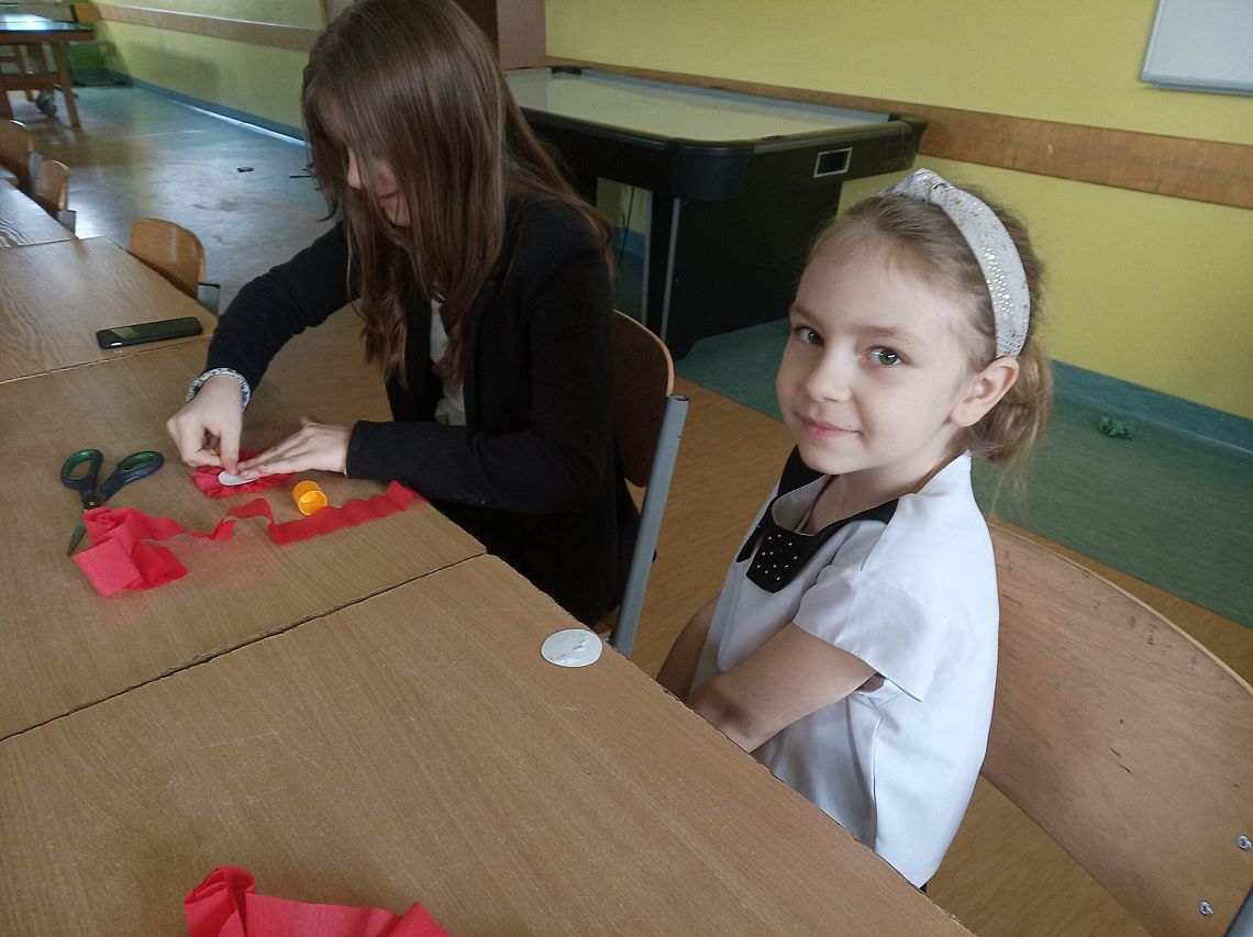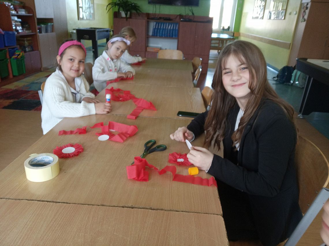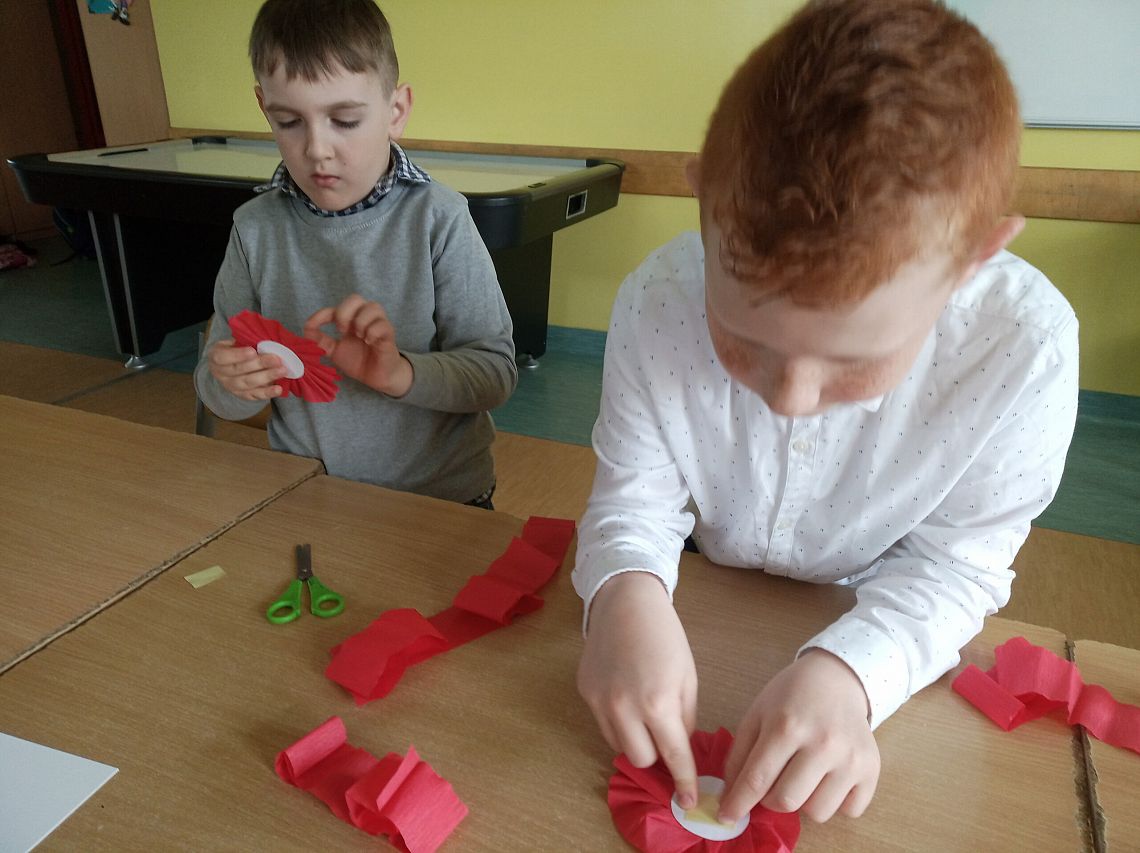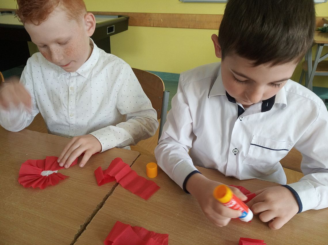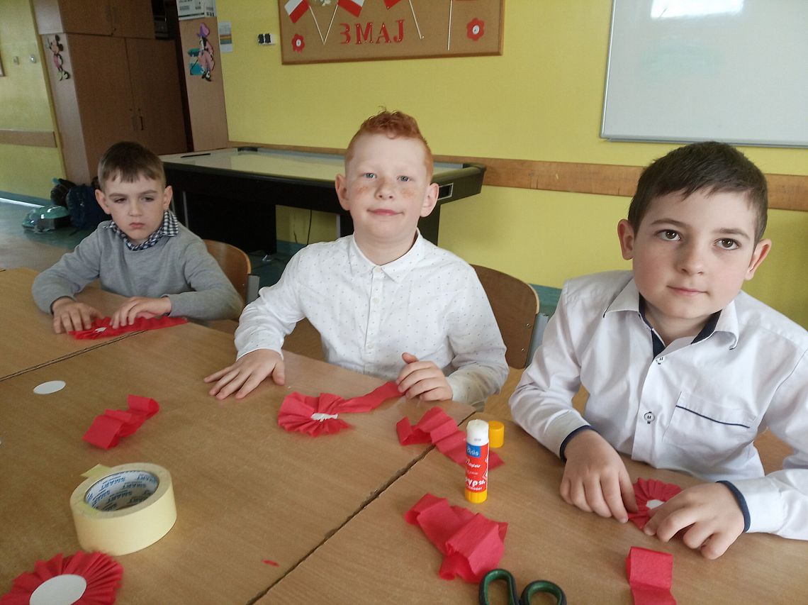 Z okazji obchodzonej niebawem rocznicy uchwalenia Konstytucji 3 maja uczniowie naszej szkoły mieli dzisiaj okazję świętować swoją polskość wykonując piękne kotyliony na świetlicy szkolnej. Dzieci miały możność uczyć się od siebie pracując w teamie. Warsztaty plastyczne w świetlicy szkolnej z okazji uchwalenia Konstytucji 3 maja były dla uczniów również piękną lekcją patriotyzmu.