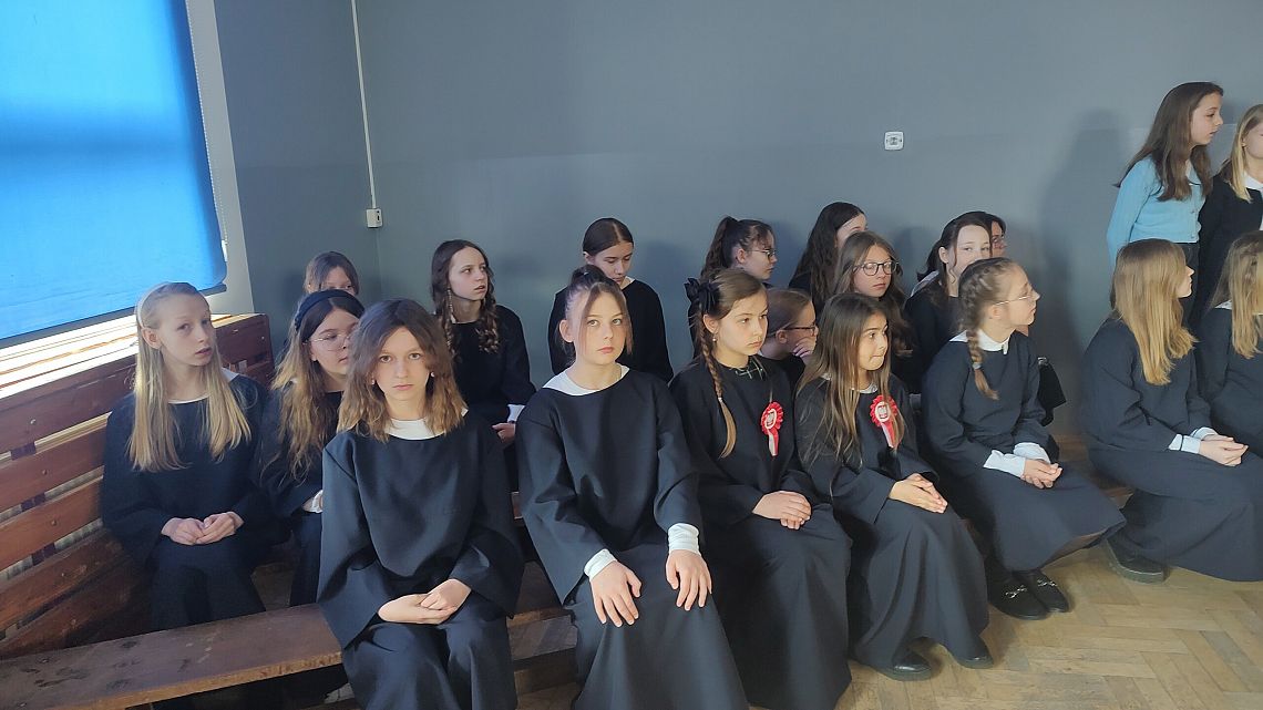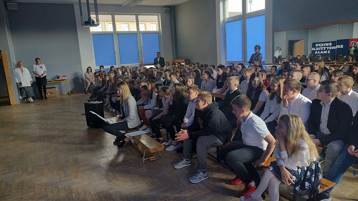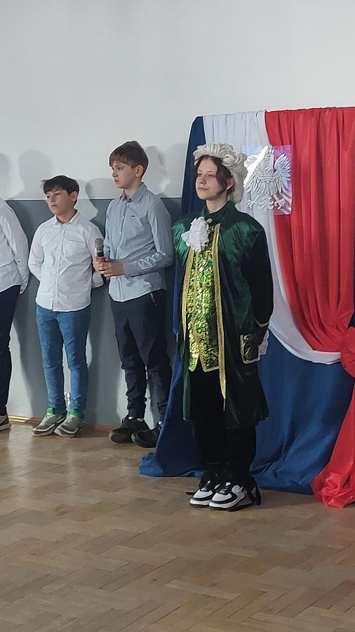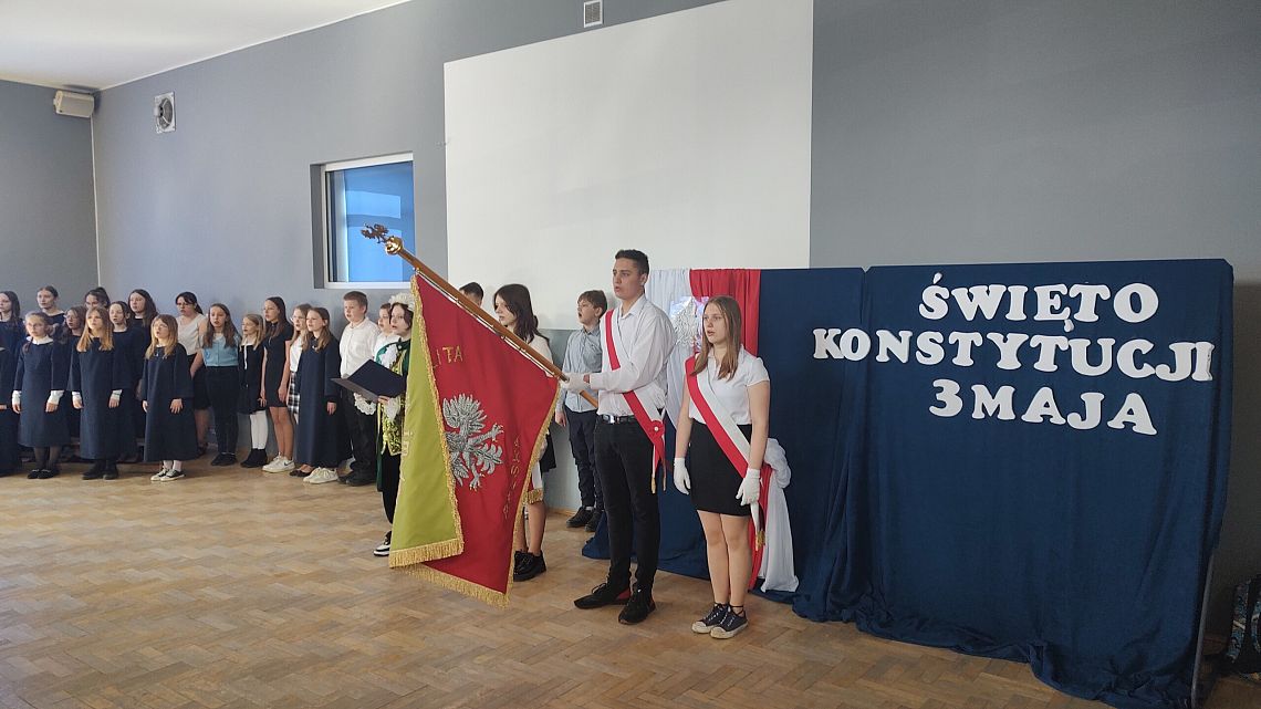 W czwartek w naszej szkole odbyła się uroczysta akademia z okazji rocznicy uchwalenia Konstytucji 3 Maja. Uczniowie pod patronatem Pani Katarzyny Jarmoluk oraz Pana Krzysztofa Koniecznego wspaniale przedstawili zarówno rys historyczny tak ważnego dla Polski dokumentu, jak i zaprezentowali wiersze Norwida, Gałczyńskiego czy Skaleckiej. Wszystko odbyło się przy akompaniamencie chórzystek i wokalistek szkolnego chóru.