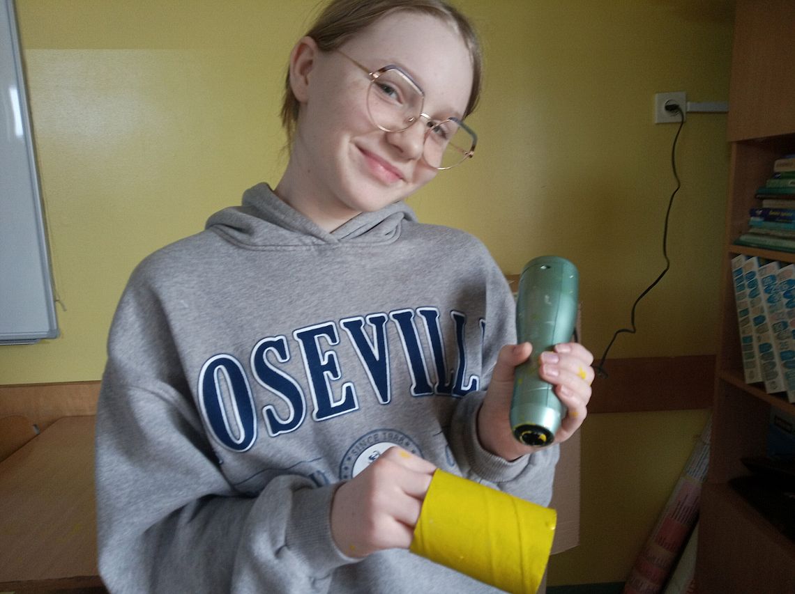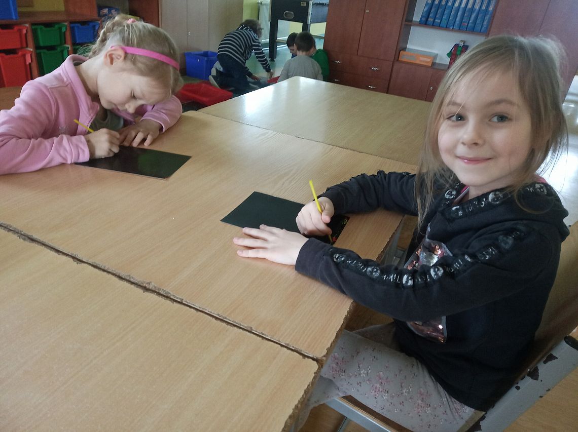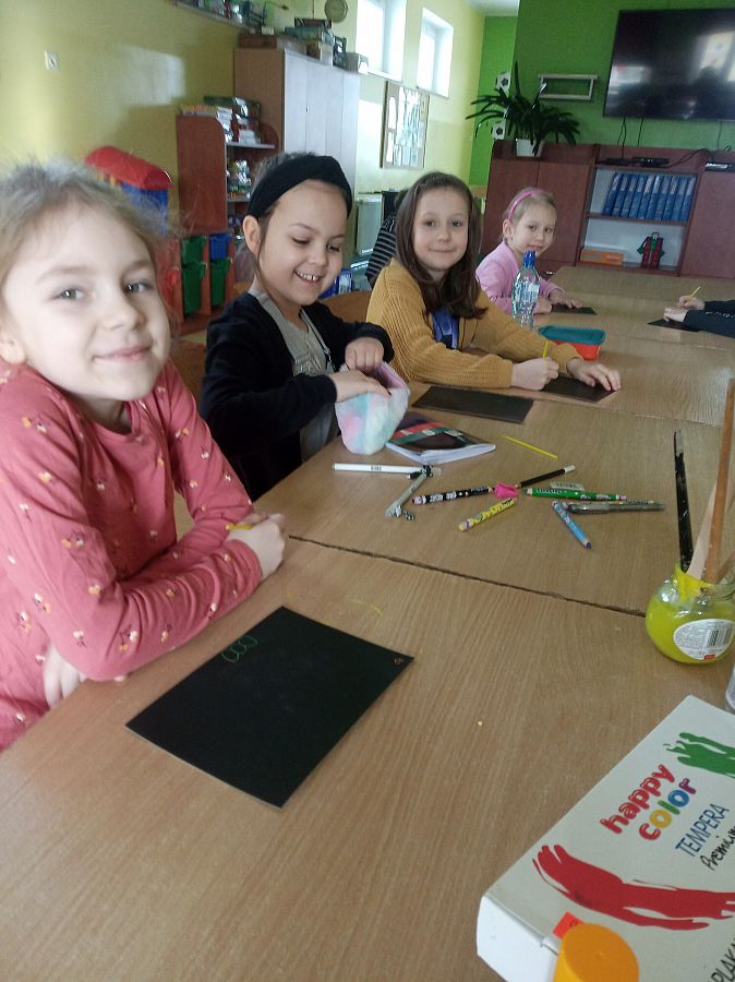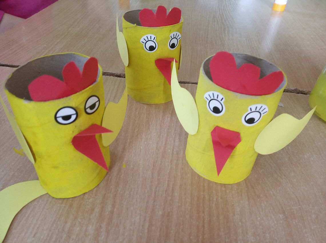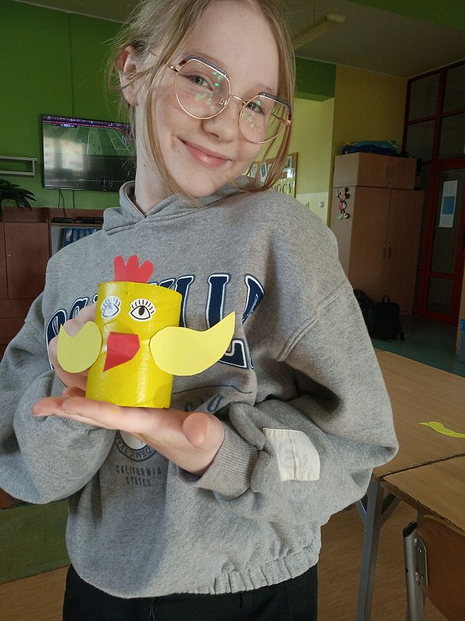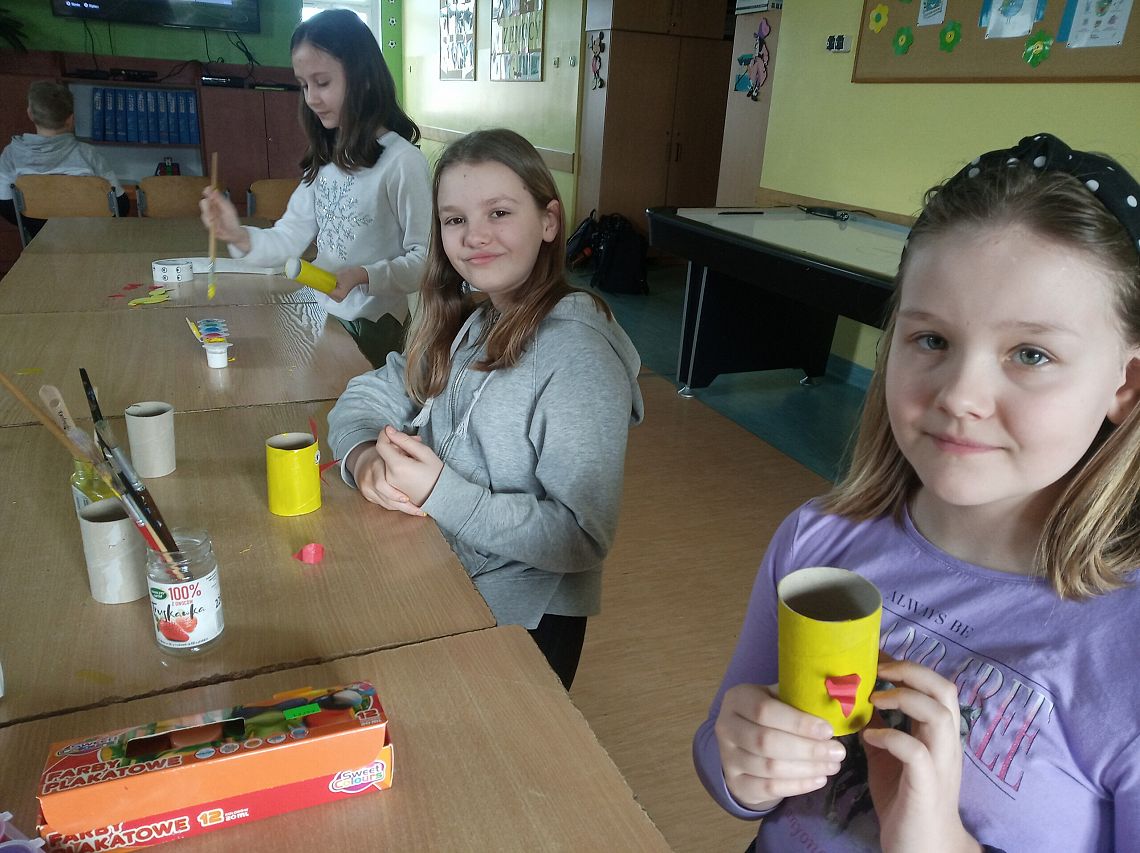 Przed Świętami Wielkanocy dzieci w świetlicy szkolnej dzielnie pracują pod opieką wychowawców wykonując dekoracje świąteczne dla swoich bliskich. Dziś dzień wykonania wielkanocnych uroczych kurczaków z rolek papieru i tektury.