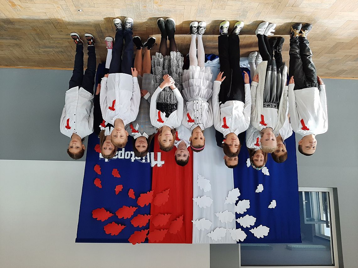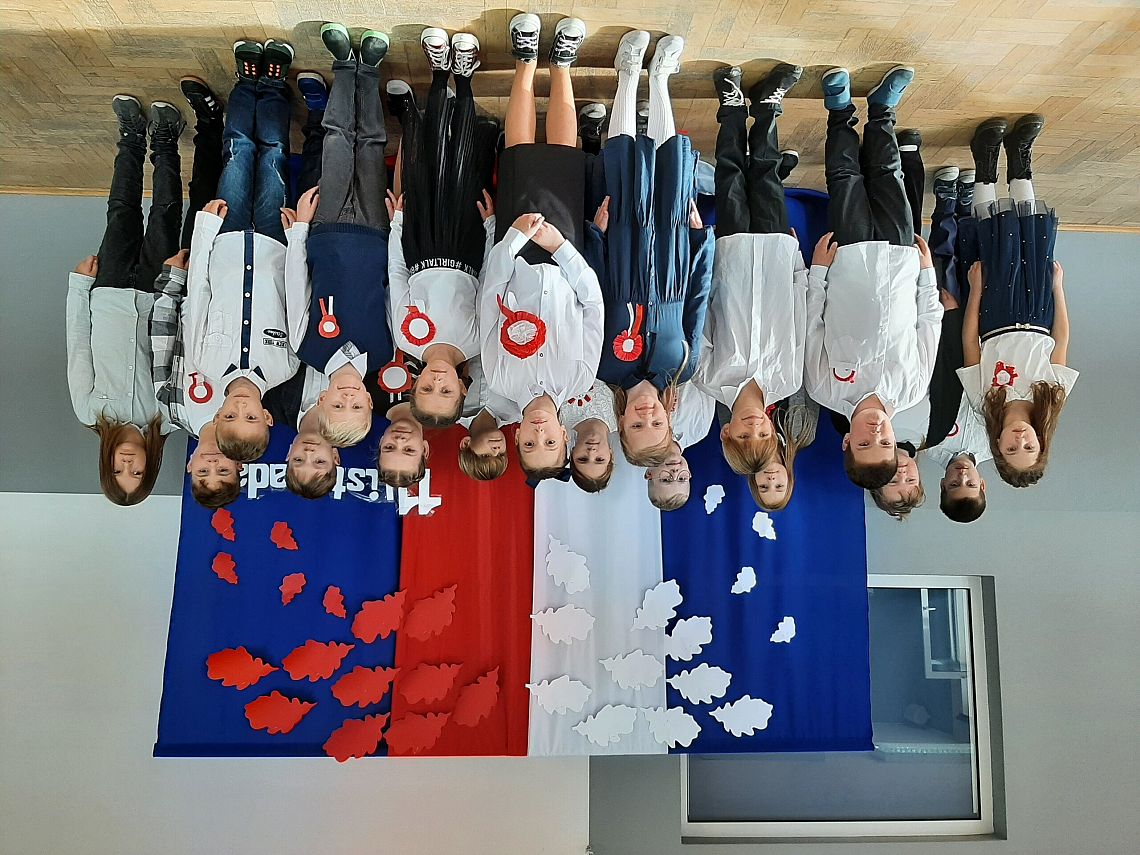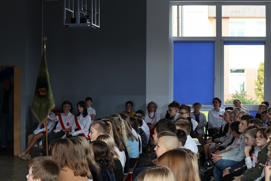 Uczniowie również odpowiedzialnie podeszli do uroczystości, byli w strojach galowych i wszyscy mieli patriotyczne kotyliony.