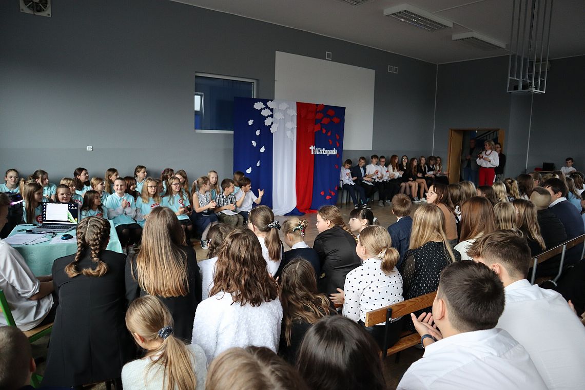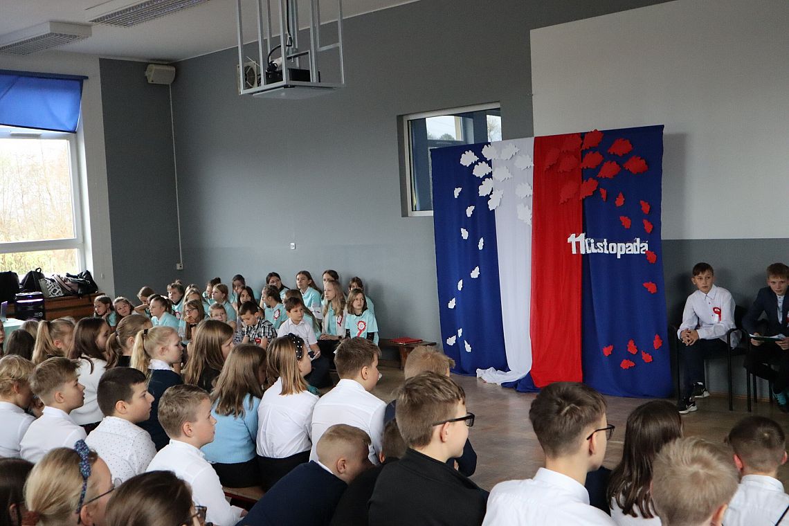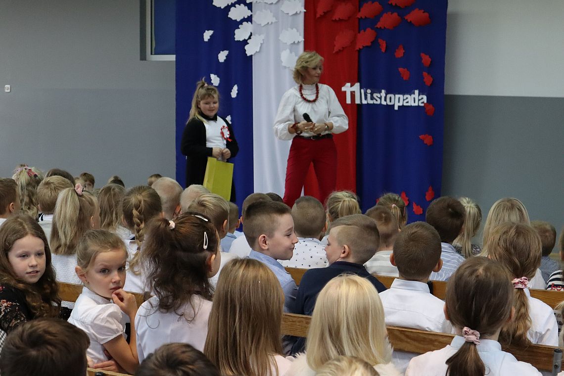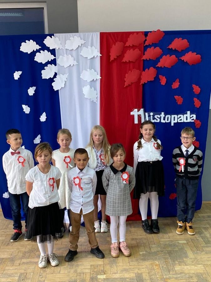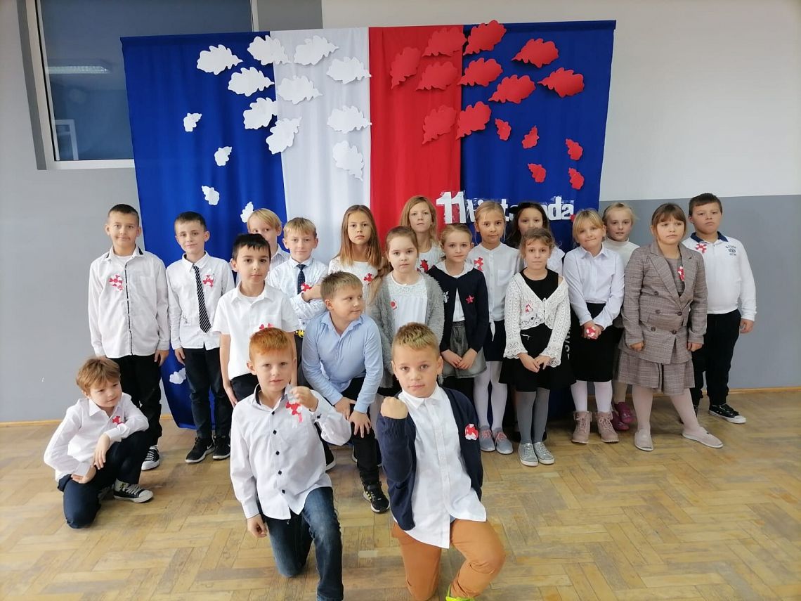 W czwartek 10 listopada, w przeddzień 104 rocznicy odzyskania niepodległości odbył się w naszej szkole uroczysty apel. Uczniowie klas ósmych wprowadzili nas w świat historii Polski od czasów zaborów aż po odzyskanie niepodległości przybliżając nam czas, kiedy Polska wróciła na mapy świata. Uroczystość wspaniale oprawił muzycznie chór szkolny śpiewając znane wszystkim Polakom pieśni patriotyczne takie jak: "Raduje się serce, raduje się dusza", "Maszerują strzelcy, maszerują..."czy "Wojenko, wojenko". Uczniów i całe przedstawienie zostało przygotowane przez Panią Danutę Wałdowską oraz Panią Ewelinę Stawską.