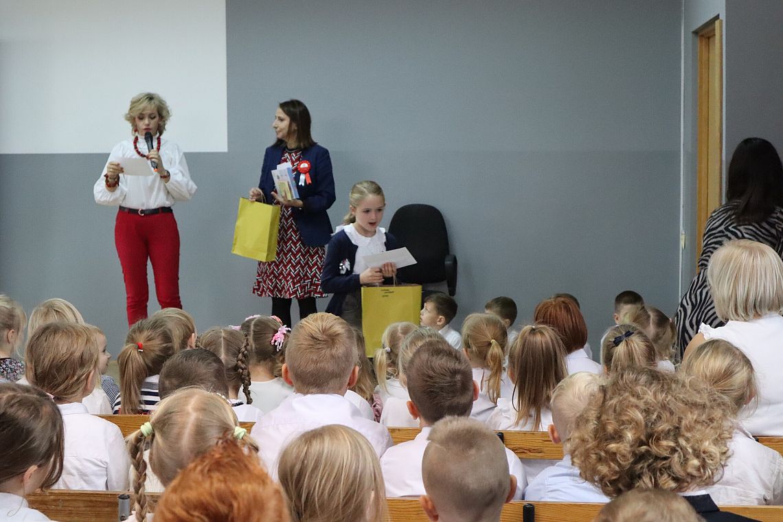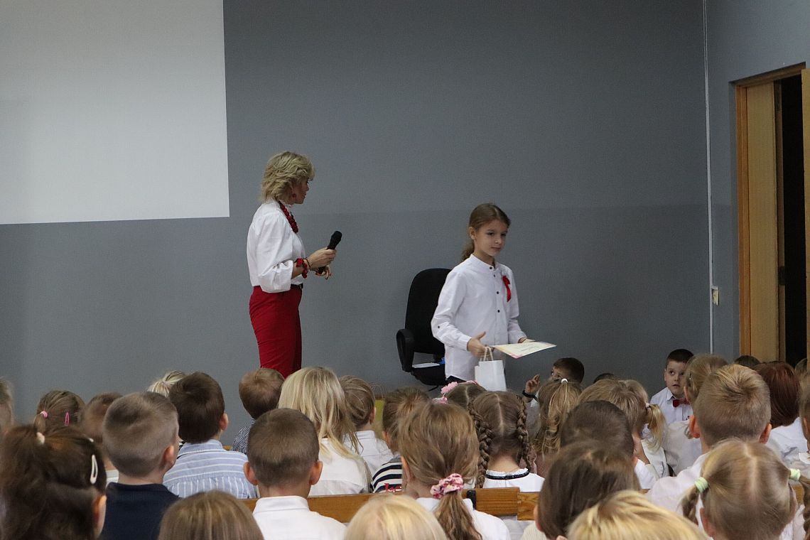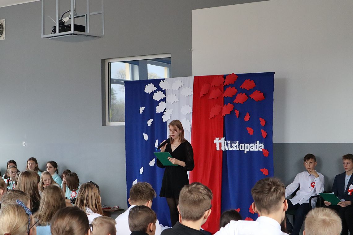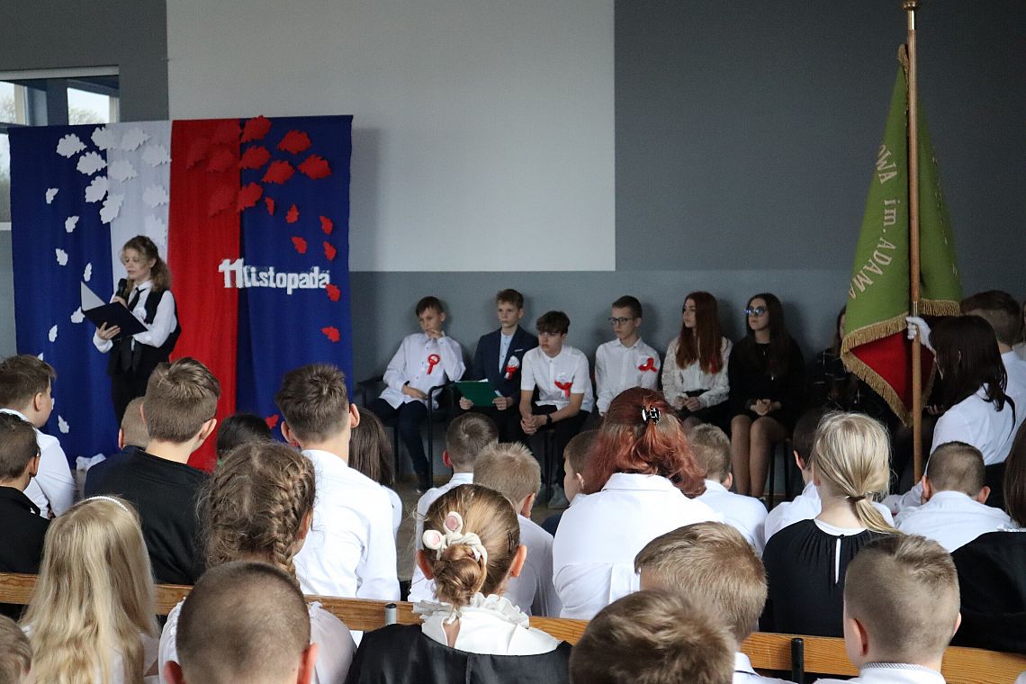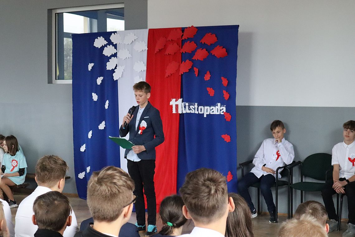 W czwartek 10 listopada, w przeddzień 104 rocznicy odzyskania niepodległości odbył się w naszej szkole uroczysty apel. Uczniowie klas ósmych wprowadzili nas w świat historii Polski od czasów zaborów aż po odzyskanie niepodległości przybliżając nam czas, kiedy Polska wróciła na mapy świata. Uroczystość wspaniale oprawił muzycznie chór szkolny śpiewając znane wszystkim Polakom pieśni patriotyczne takie jak: "Raduje się serce, raduje się dusza", "Maszerują strzelcy, maszerują..."czy "Wojenko, wojenko". Uczniów i całe przedstawienie zostało przygotowane przez Panią Danutę Wałdowską oraz Panią Ewelinę Stawską.